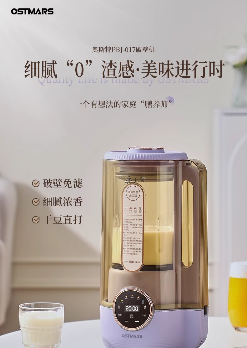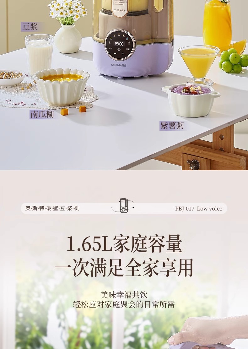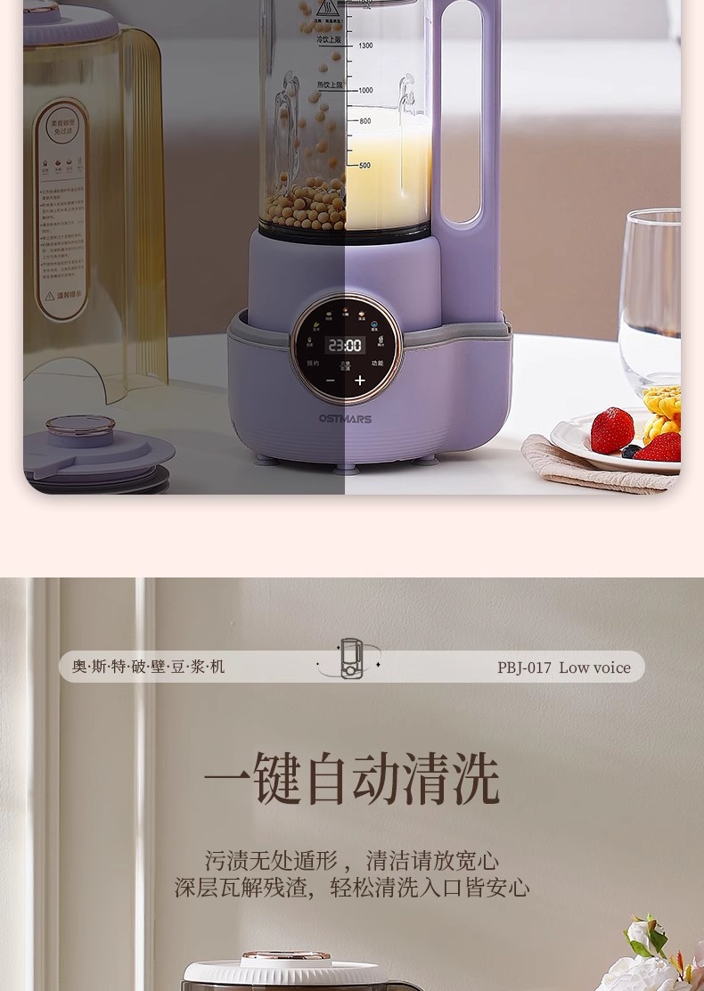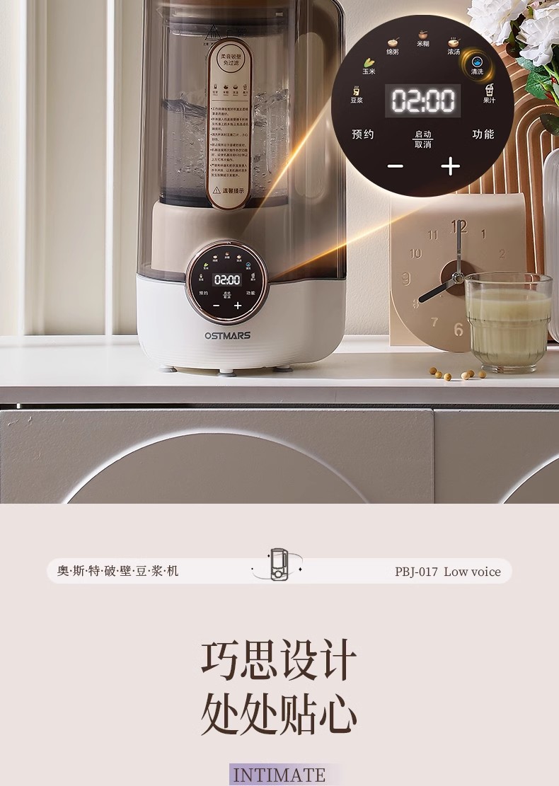 德国Ostmars破壁机3-4人家用低音大容量豆浆机多功能全自动料理机