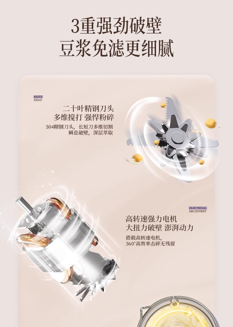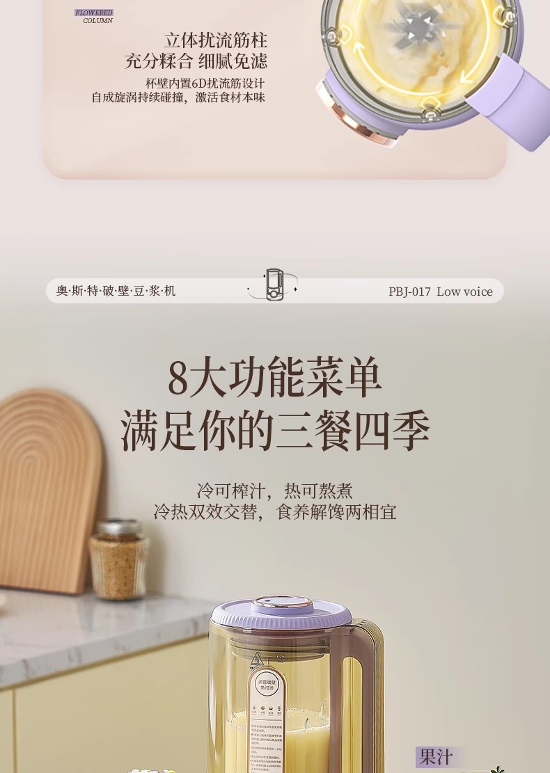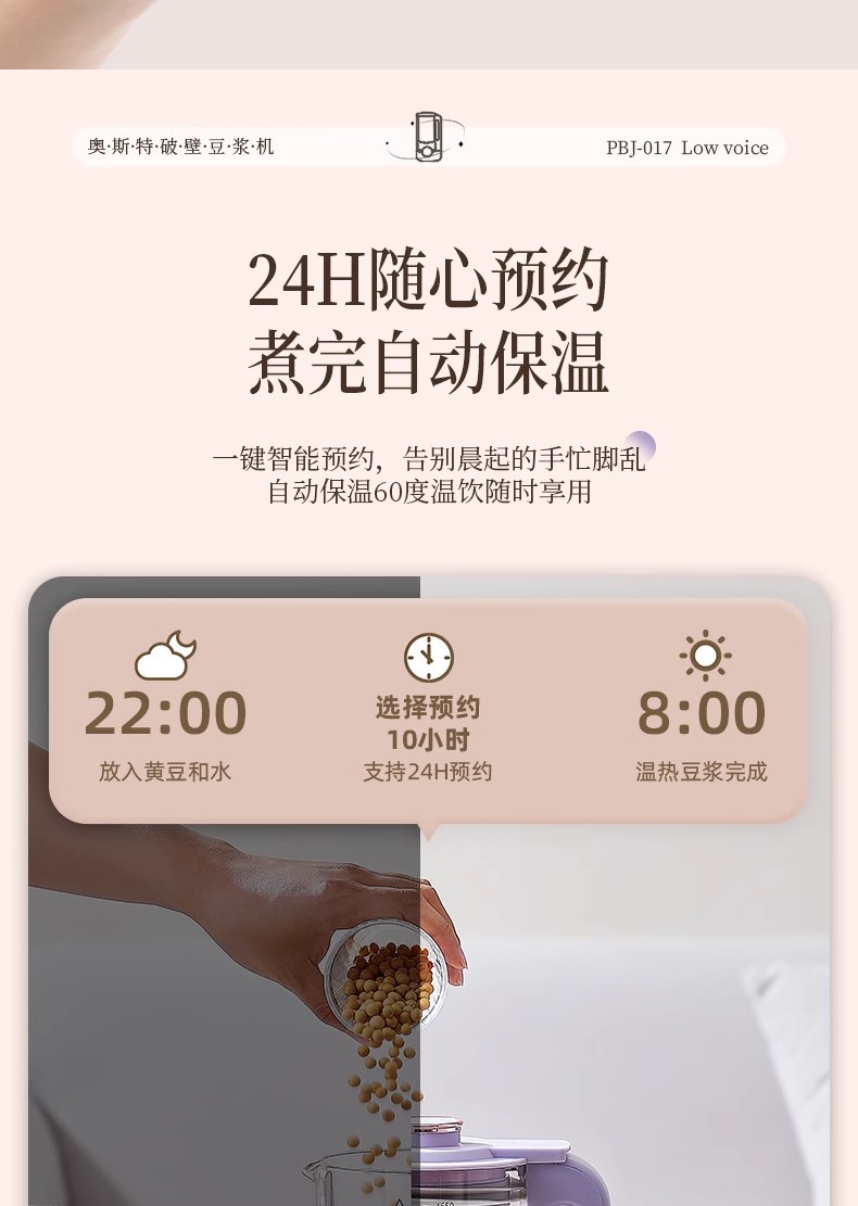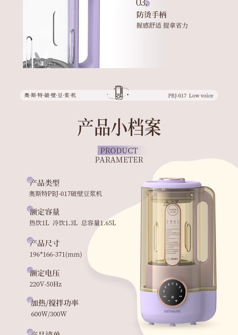 德国Ostmars破壁机3-4人家用低音大容量豆浆机多功能全自动料理机