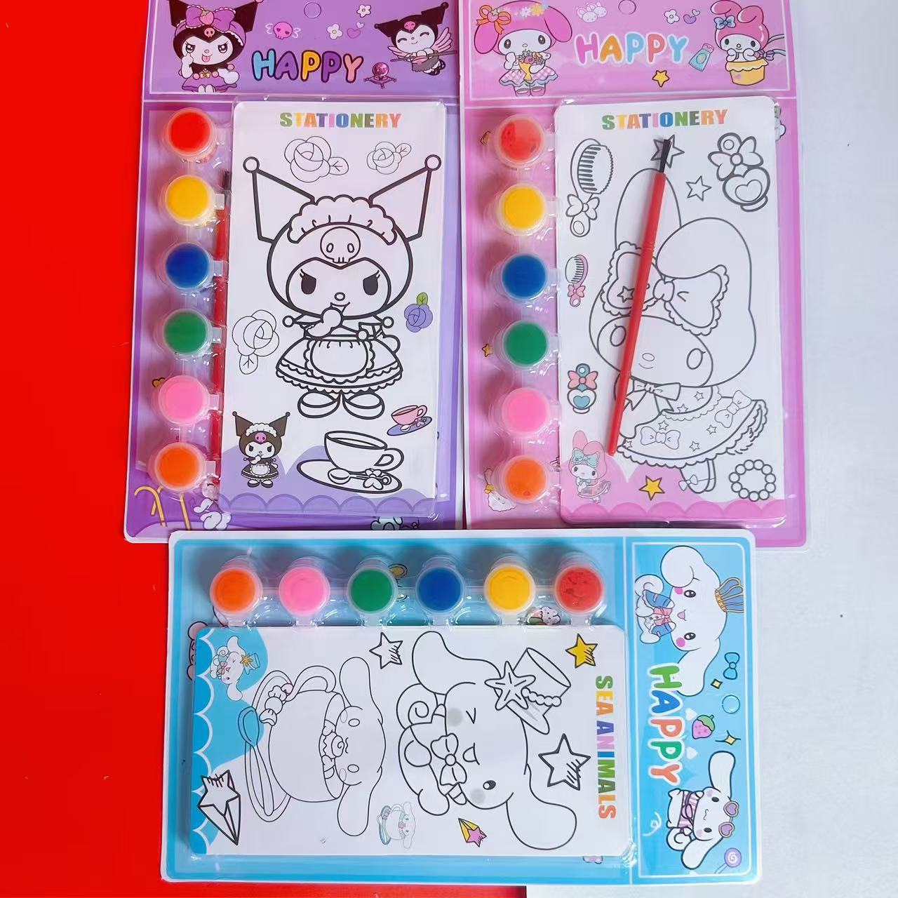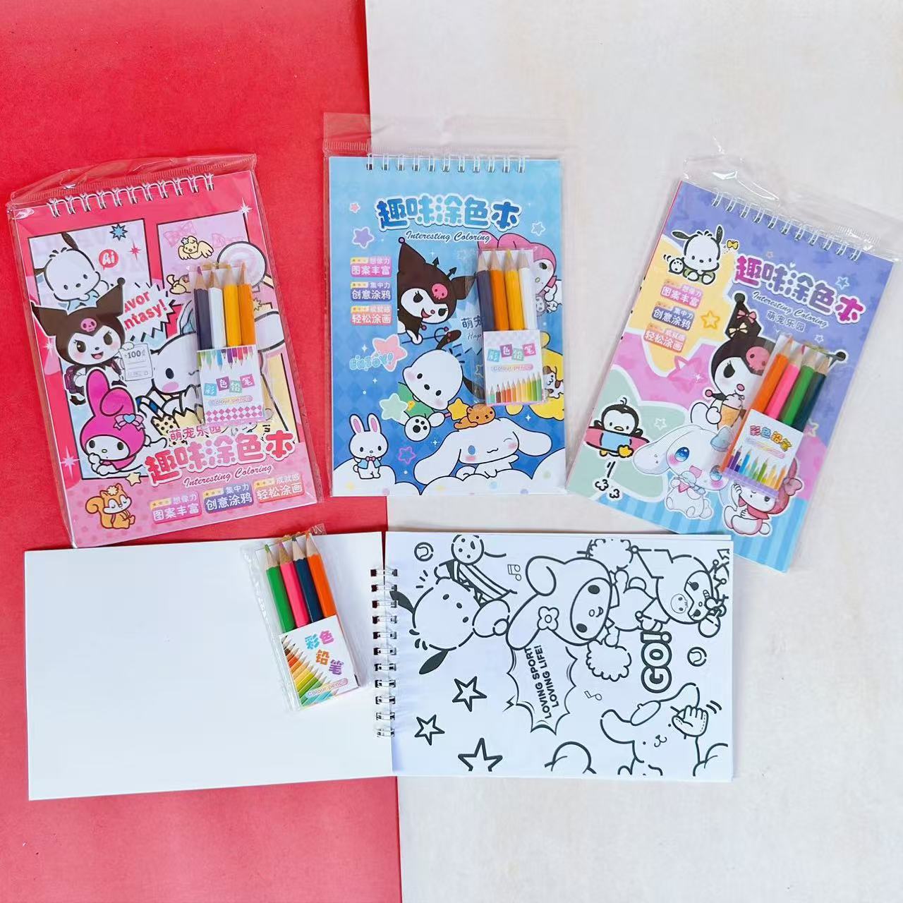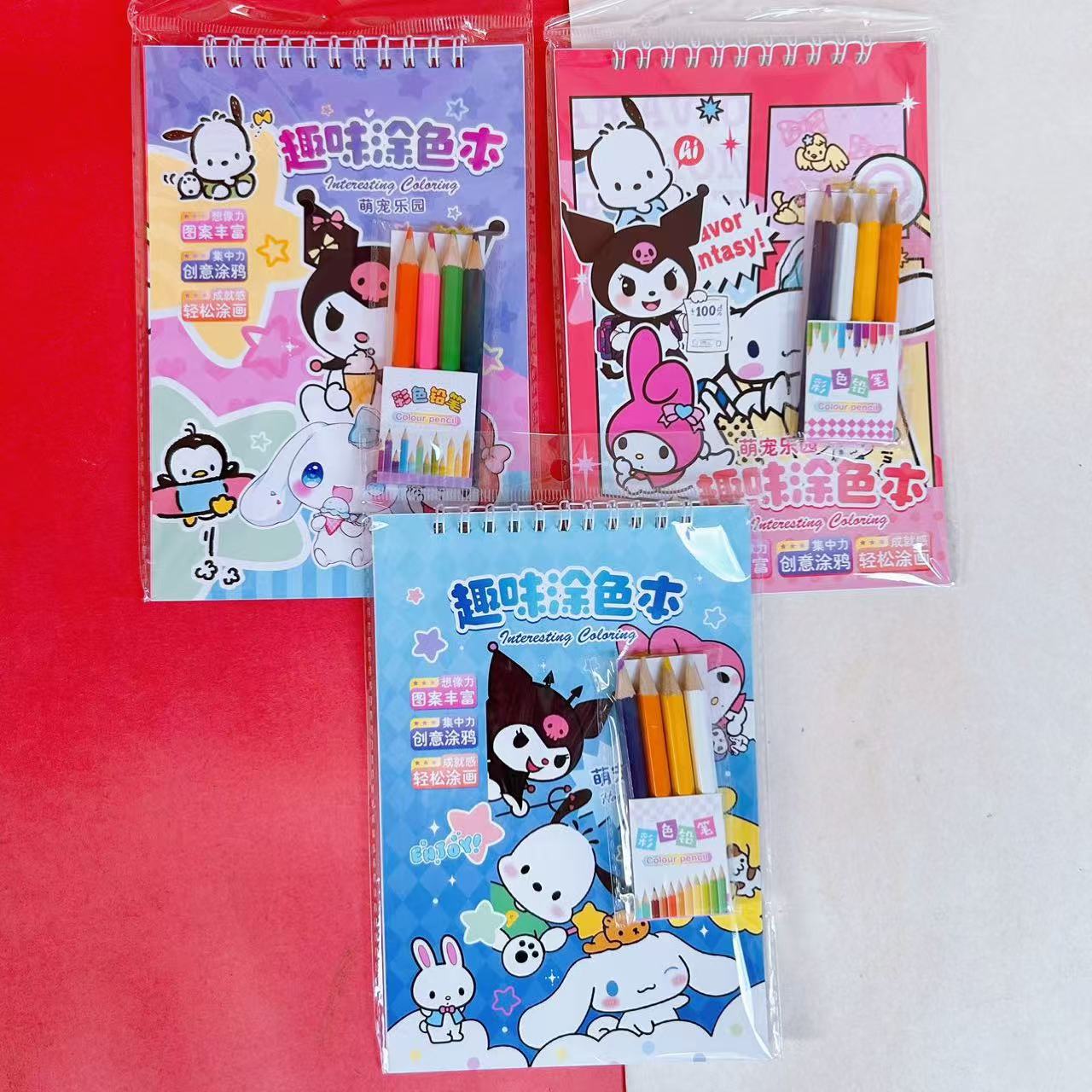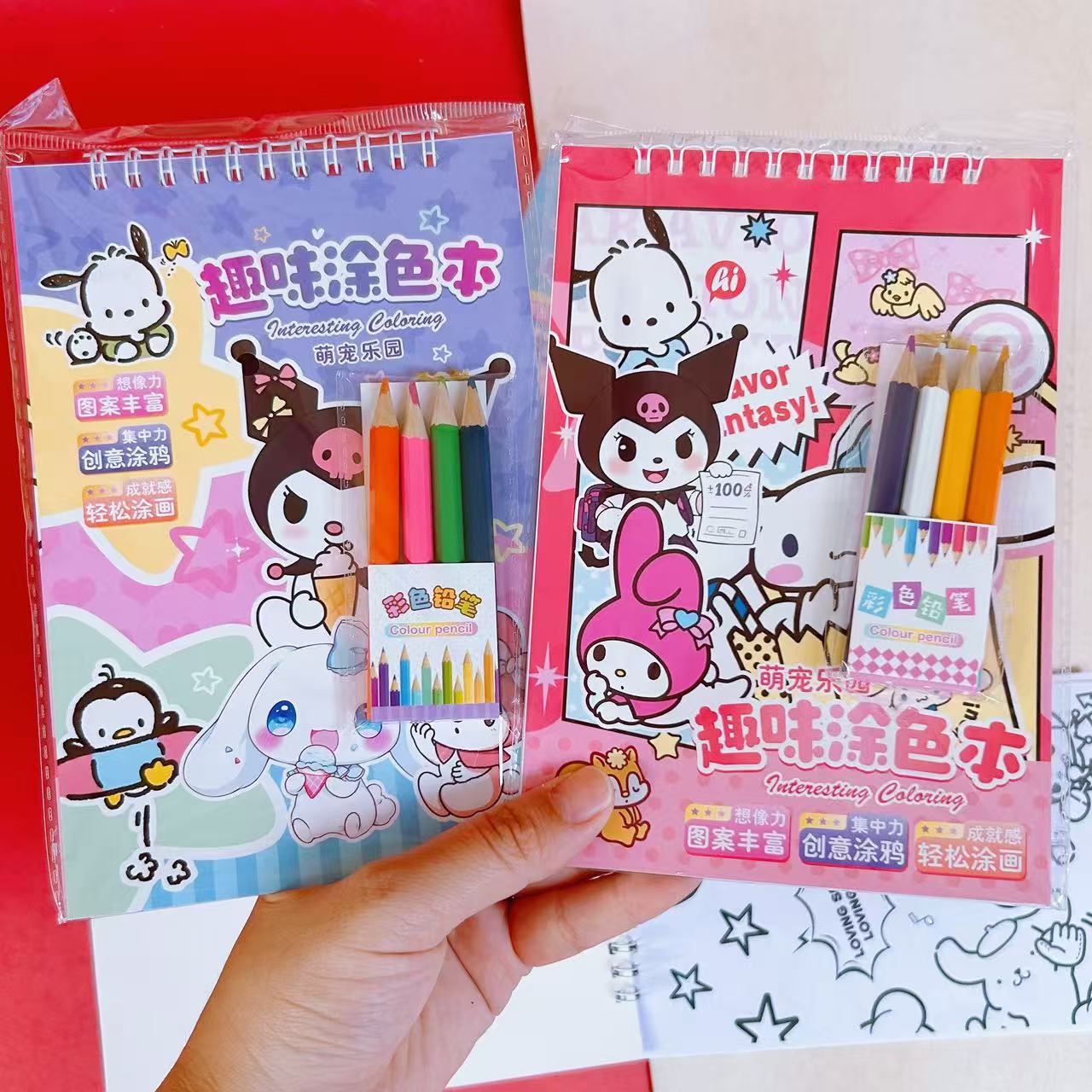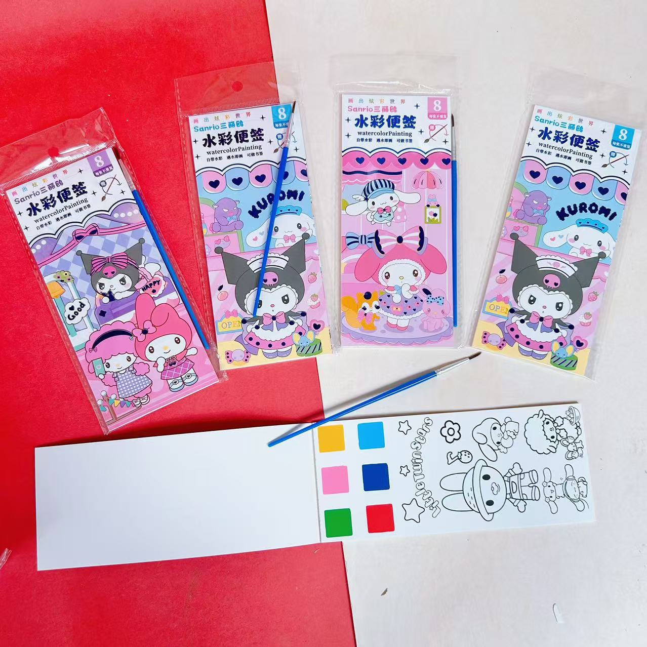 水彩画涂色本水粉涂鸦绘本萌宠库洛米卡签儿童画画本带颜料