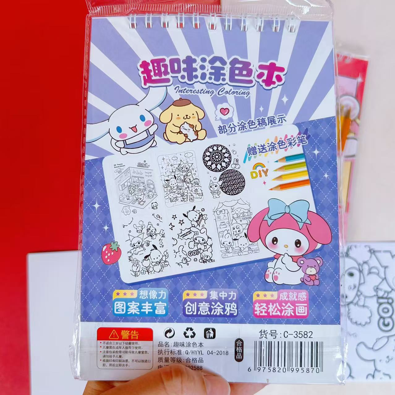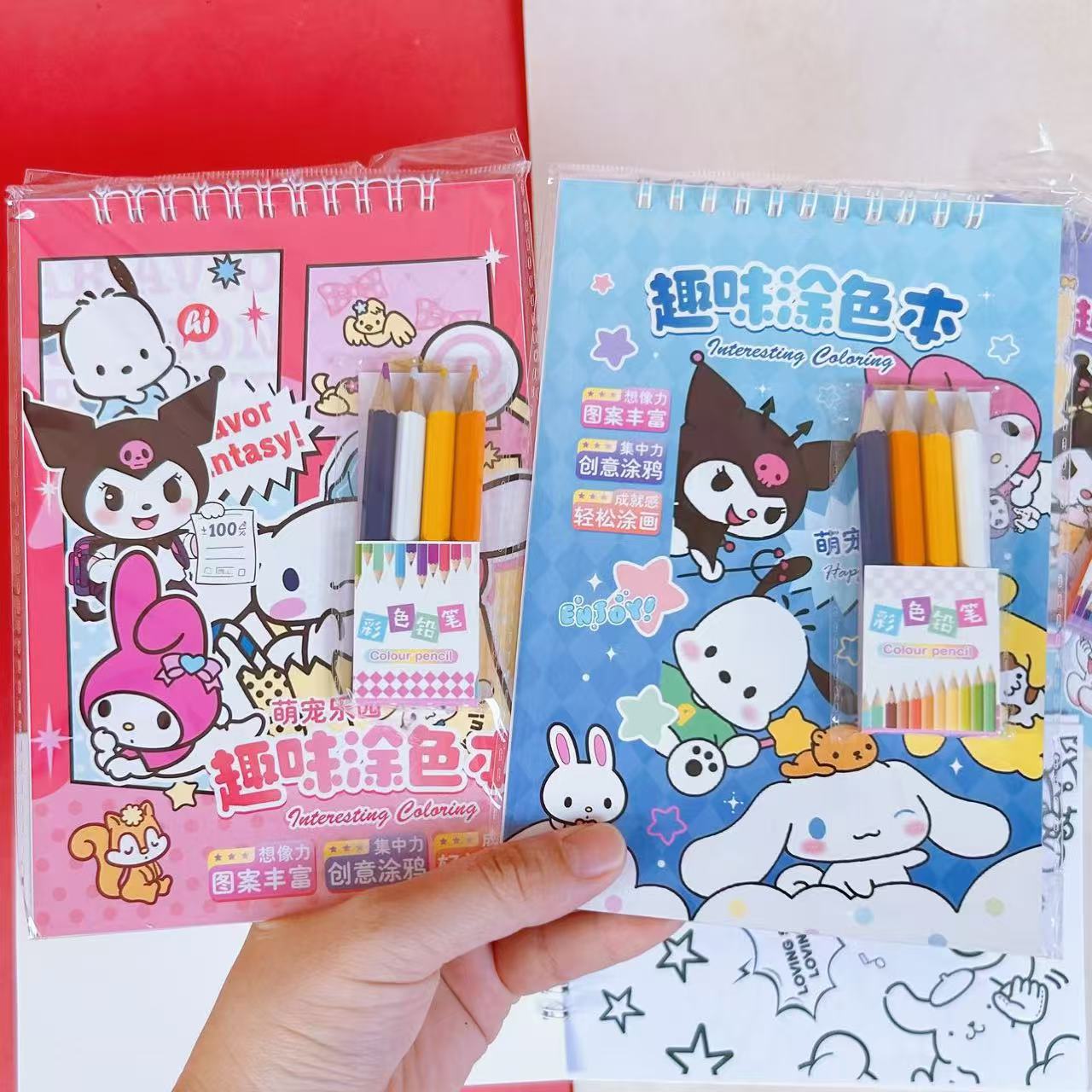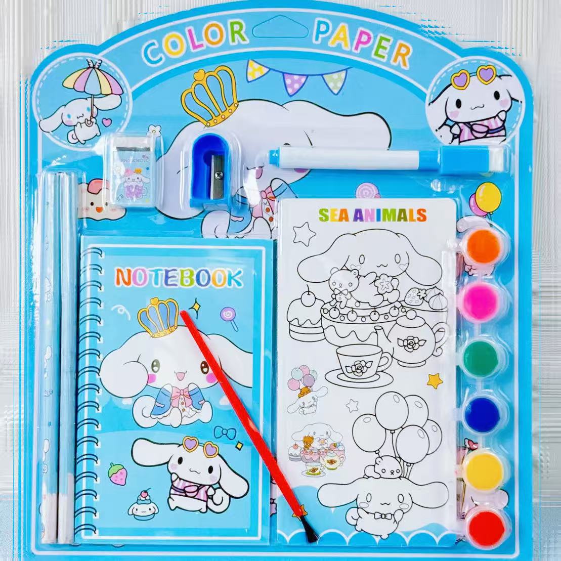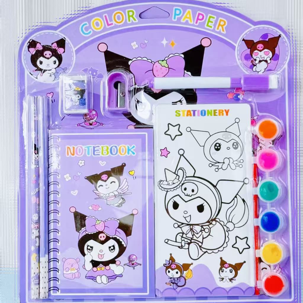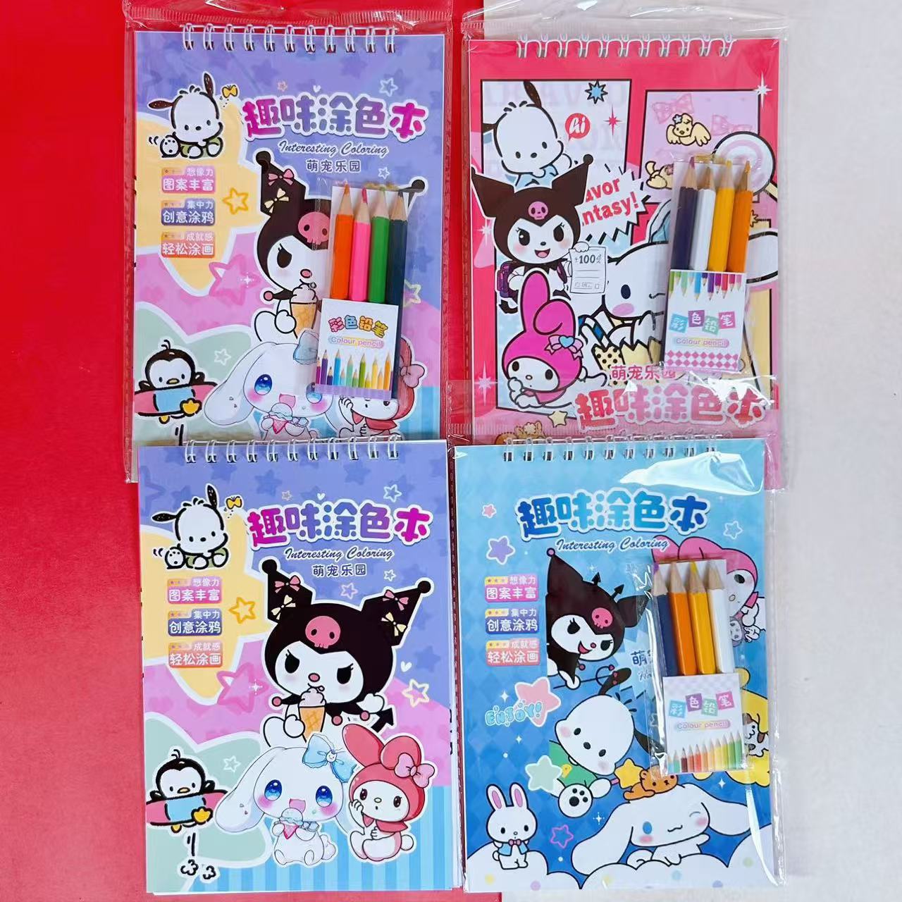 水彩画涂色本水粉涂鸦绘本萌宠库洛米卡签儿童画画本带颜料