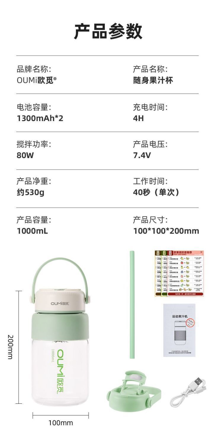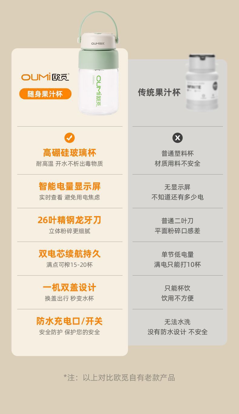 欧觅OUMi榨汁机家用户外无线便携榨汁杯大容量吨吨桶数显果汁杯