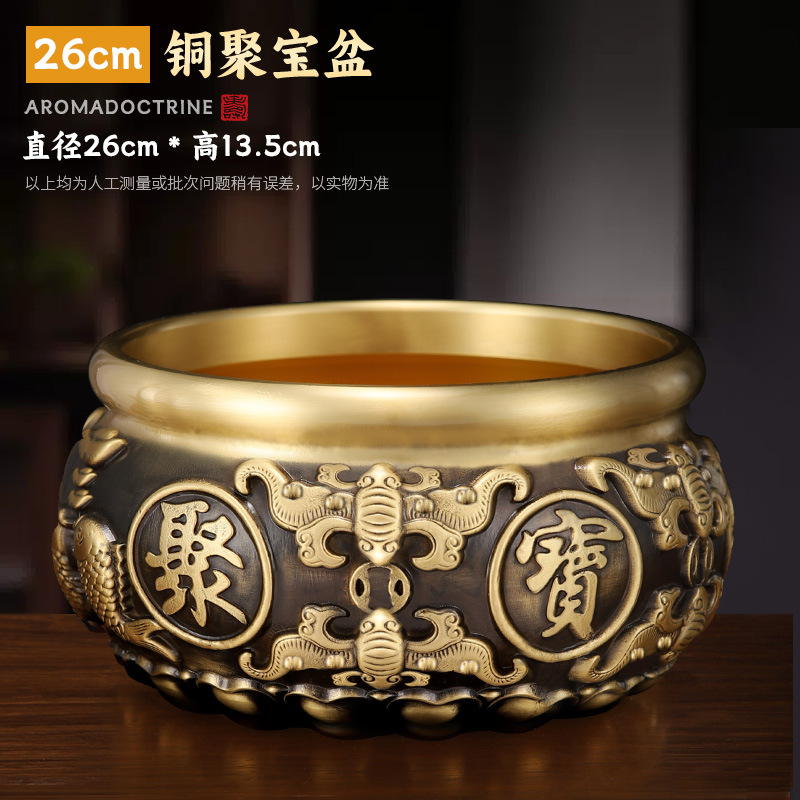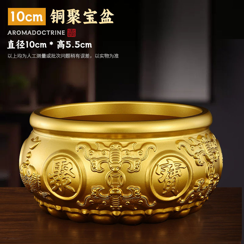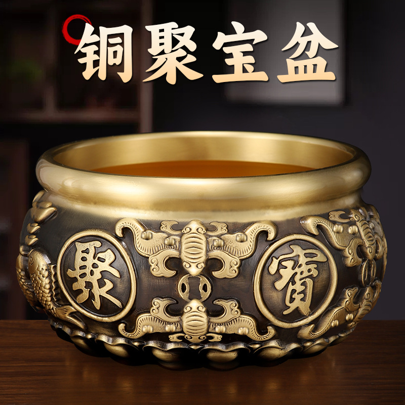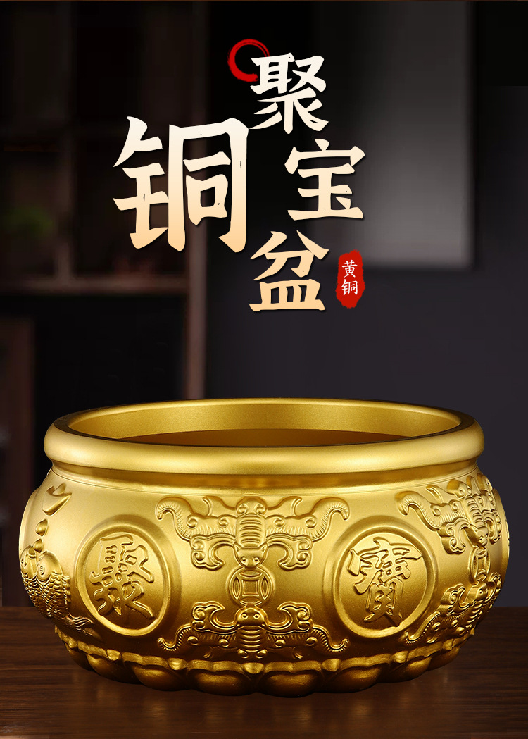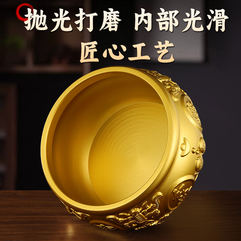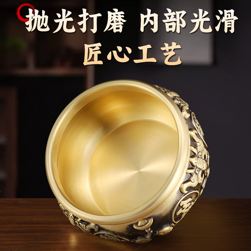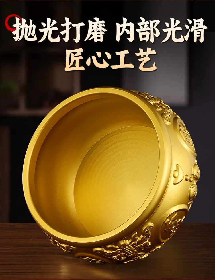 纯黄铜聚宝盆八福双鱼财富家居财富办公室聚宝盆摆件饰品厂家批发