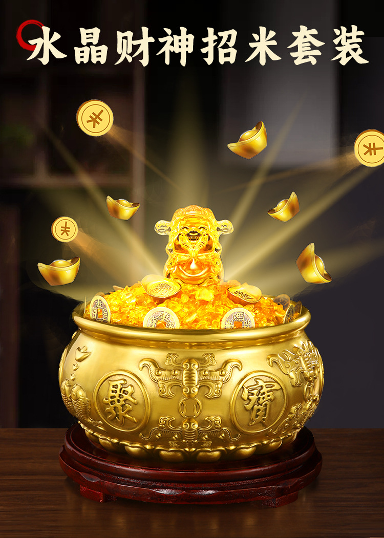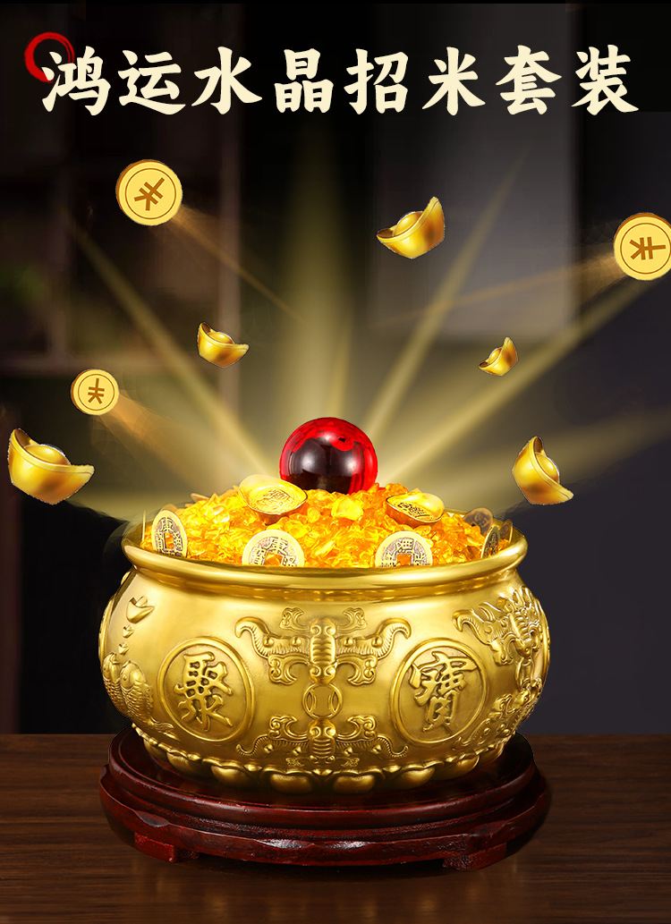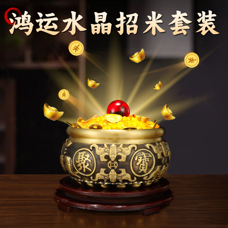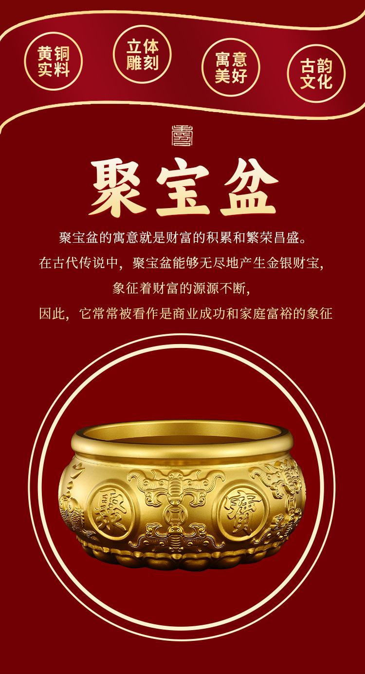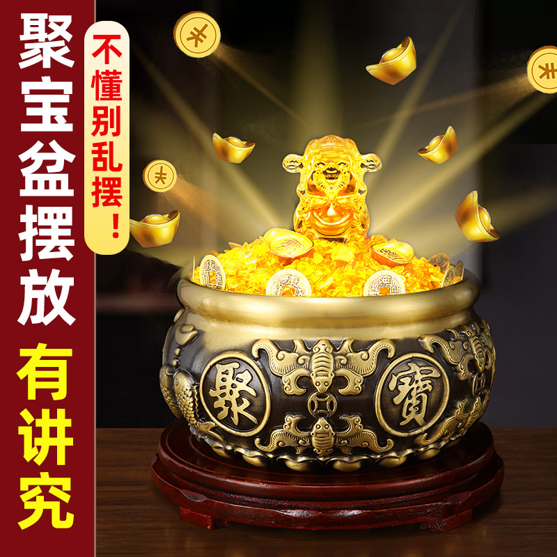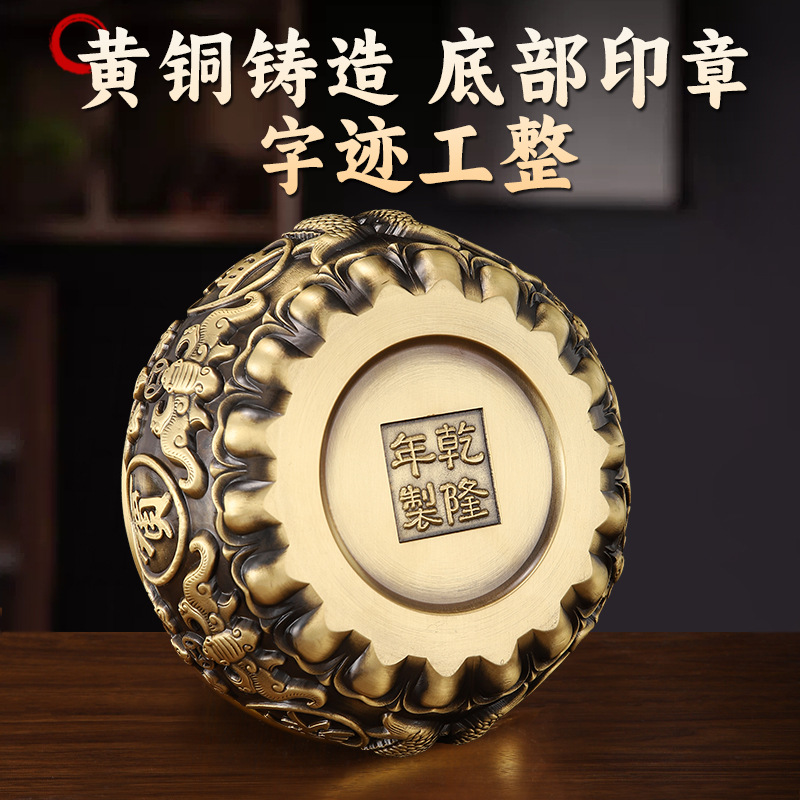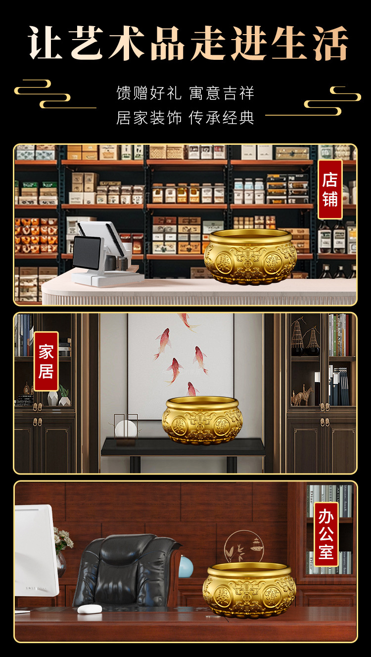 纯黄铜聚宝盆八福双鱼财富家居财富办公室聚宝盆摆件饰品厂家批发