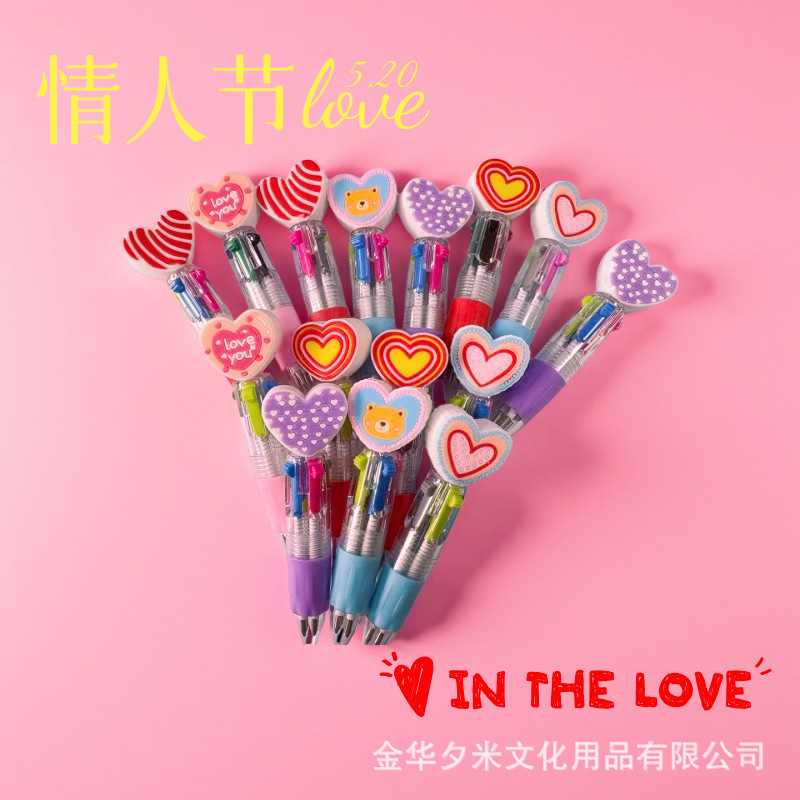 跨境2.14号情人节卡通四色圆珠笔可爱小学生迷你中油笔学习文具