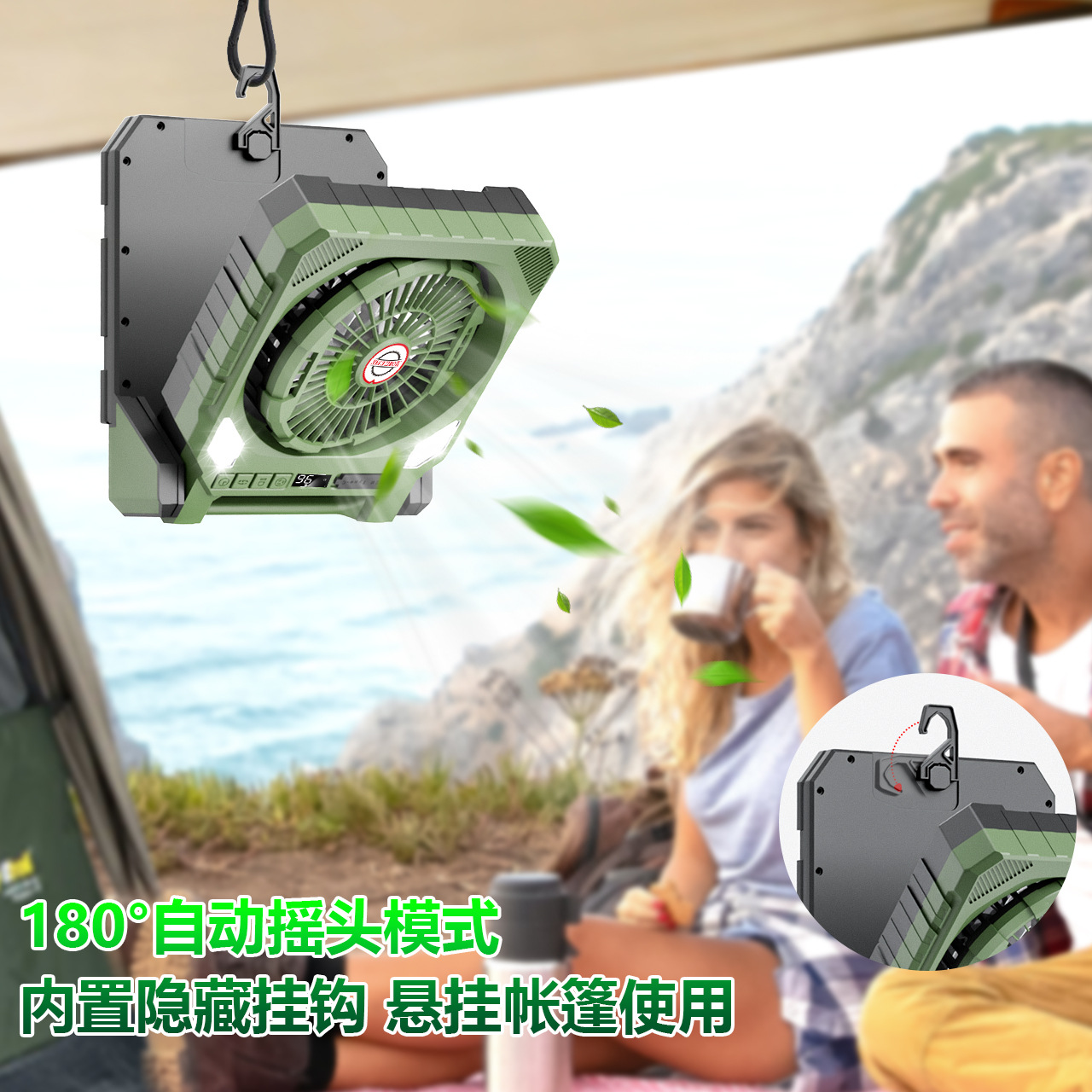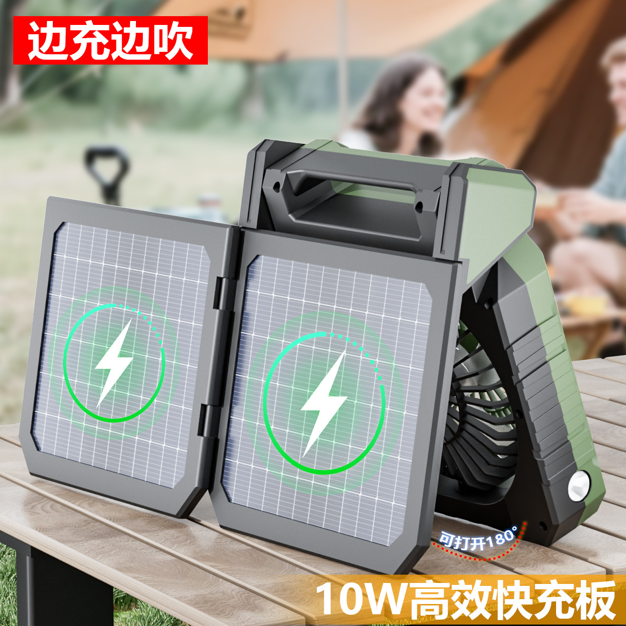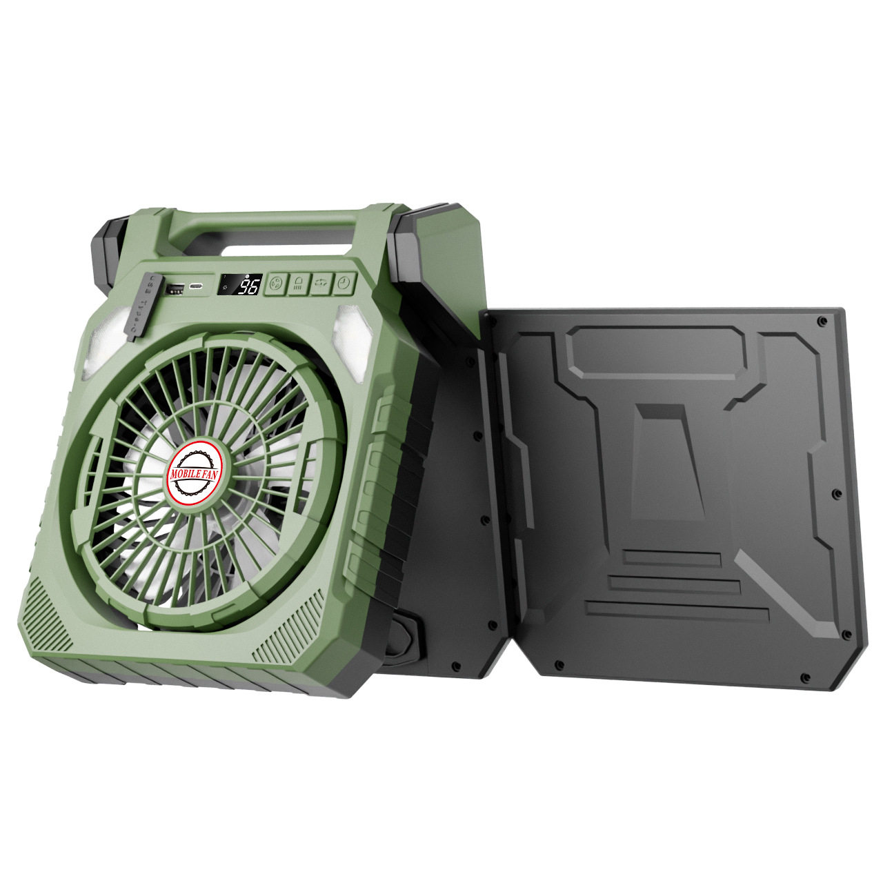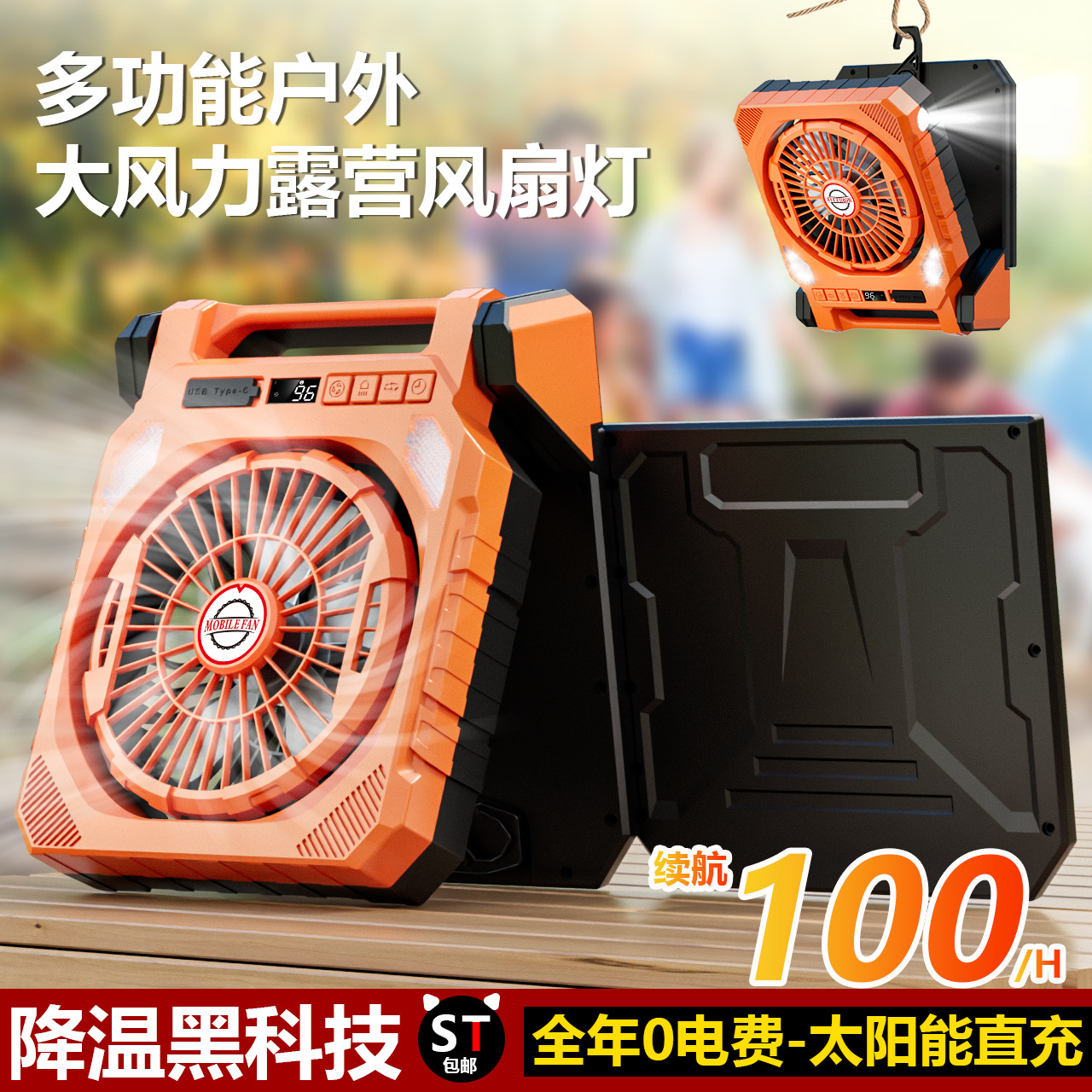 太阳能风扇 风扇灯USB充电左右摇头数显定时户外野营空调钓鱼露营