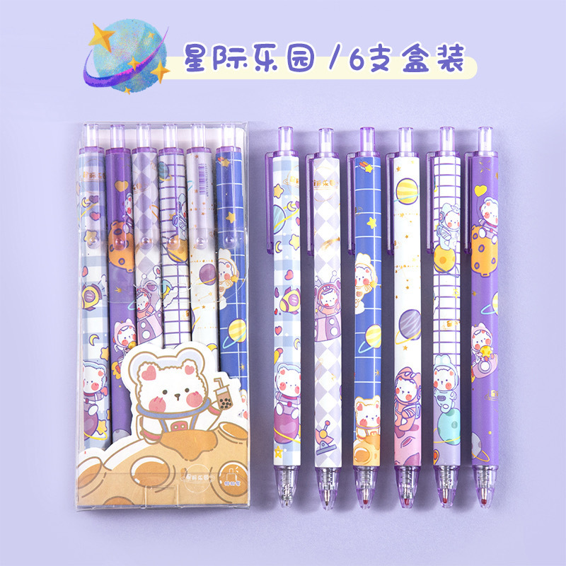 可爱卡通按动笔盒装学生考试专用刷题笔学习用品高颜值中性笔黑笔