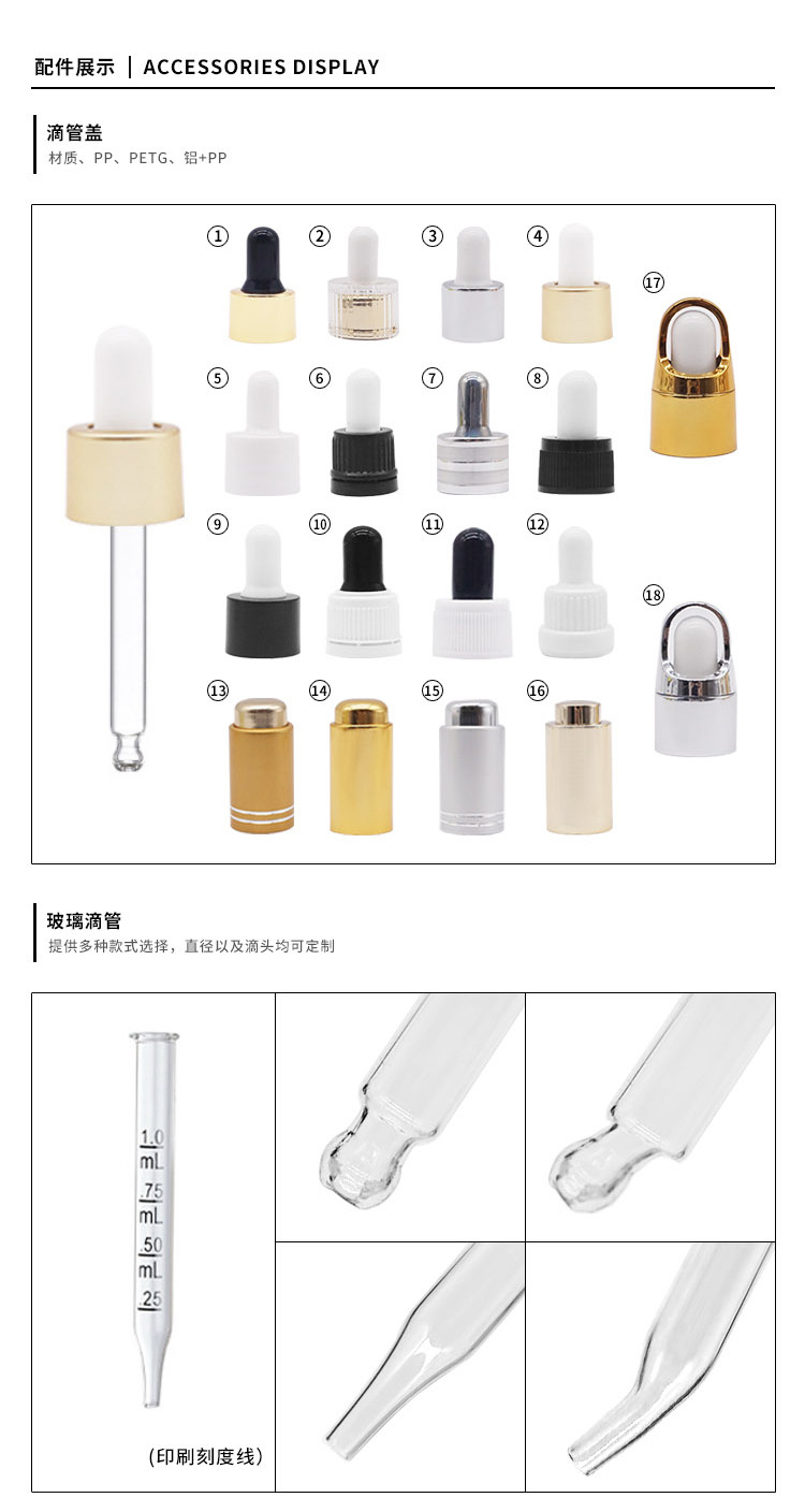 现货批发30ml50ml100ml方形玻璃精油瓶精华液瓶滴管瓶化妆品包材