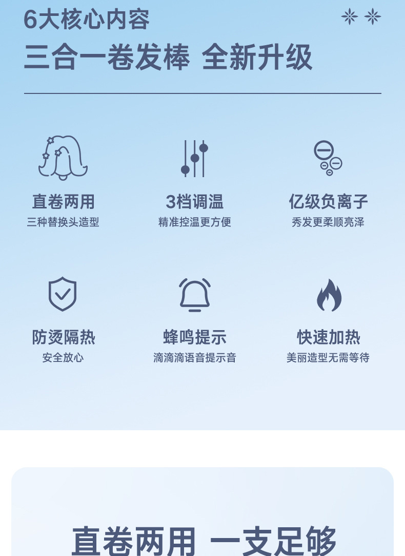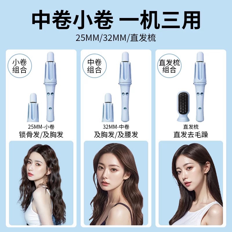 新款三合一卷发棒换头多头切换多功能卷发直发懒人宿舍卷发神器