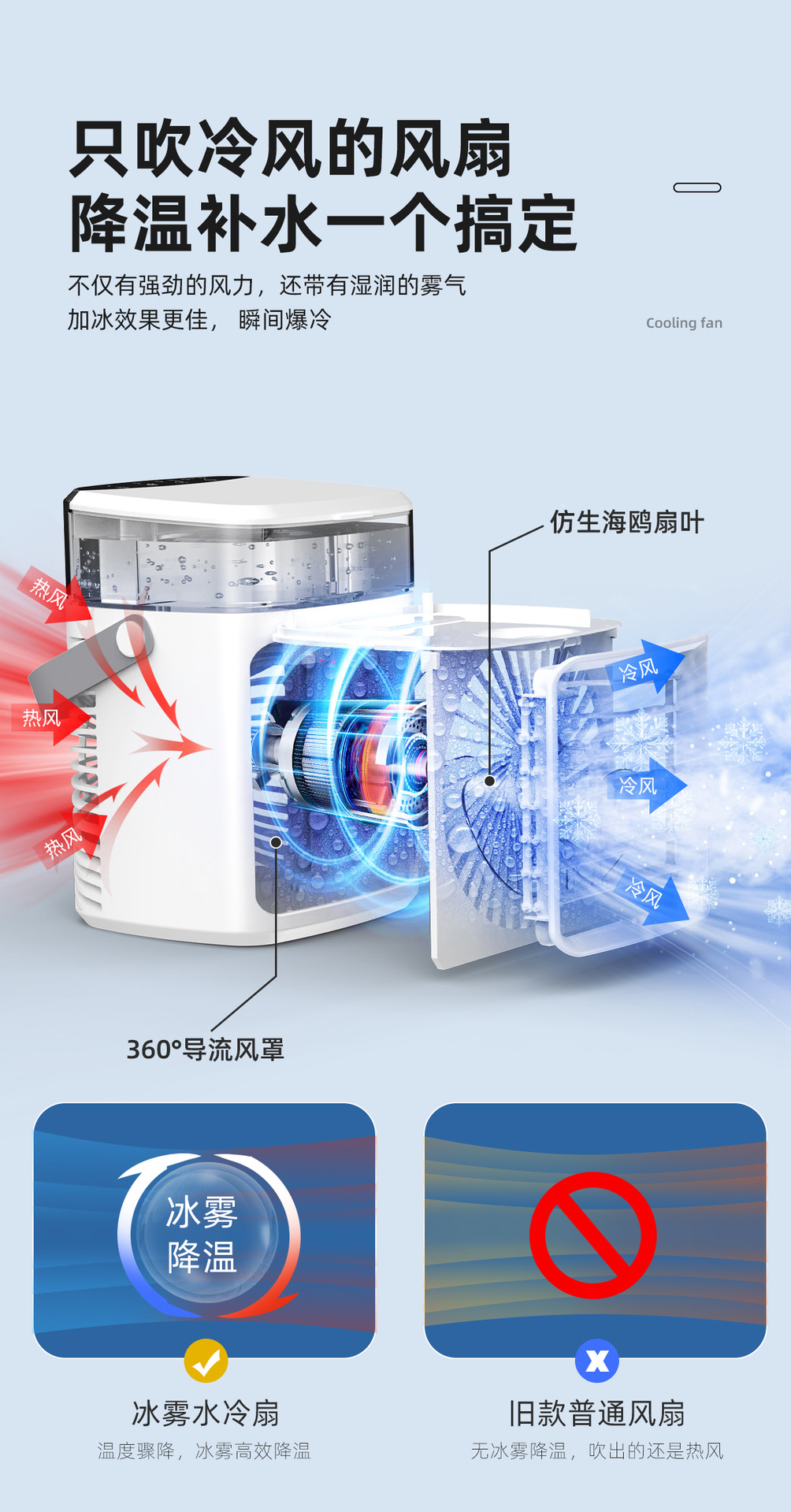 新款喷雾冷风机 迷你桌面跨境水雾风扇 家用便携式USB 空调水冷扇