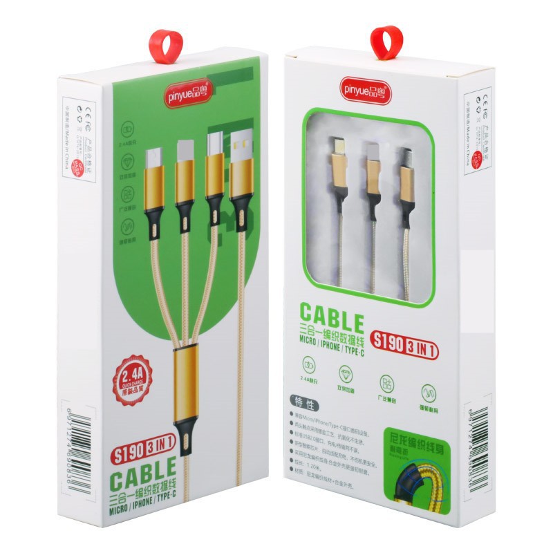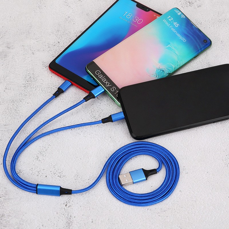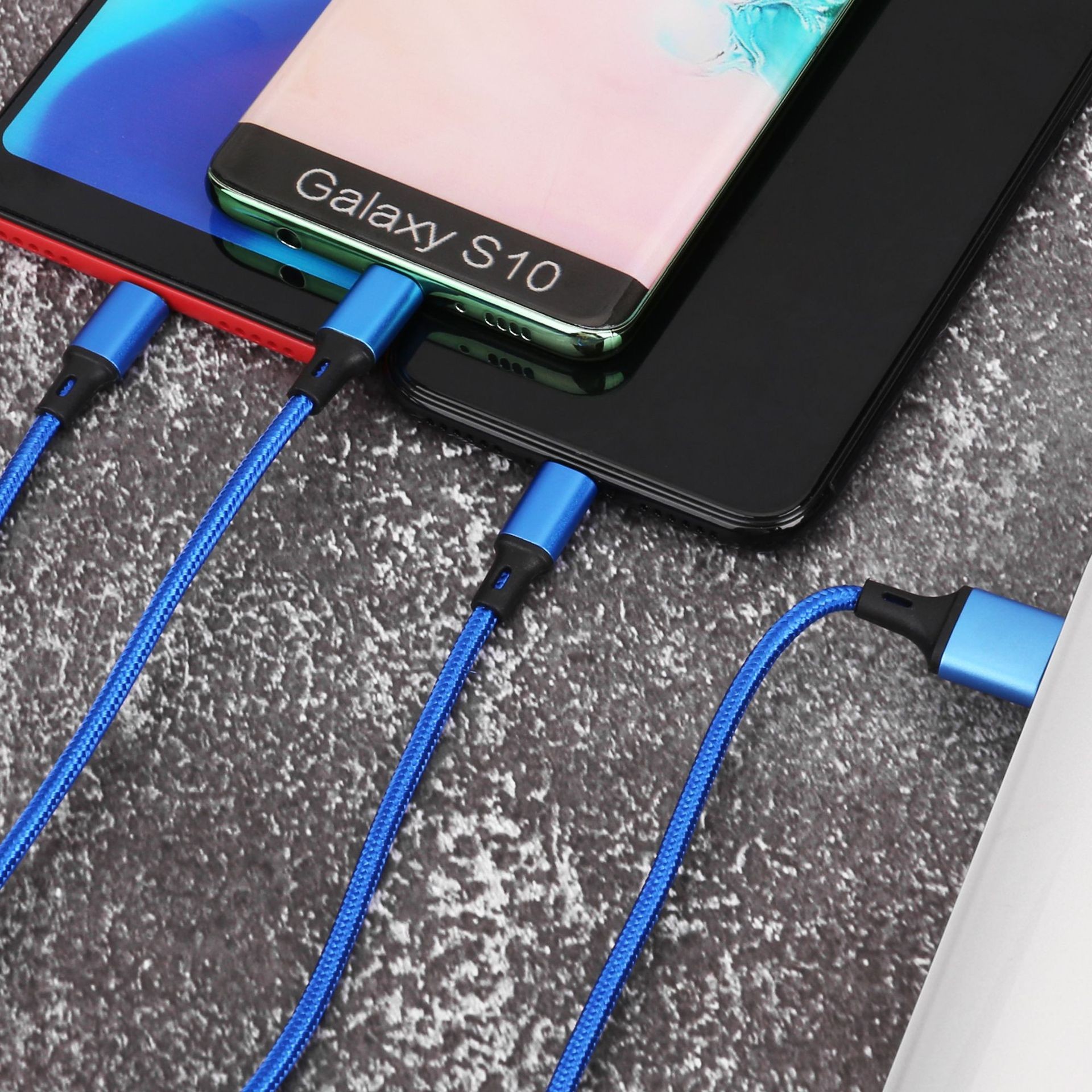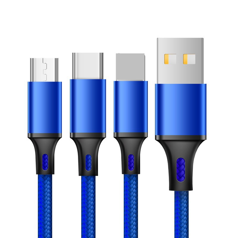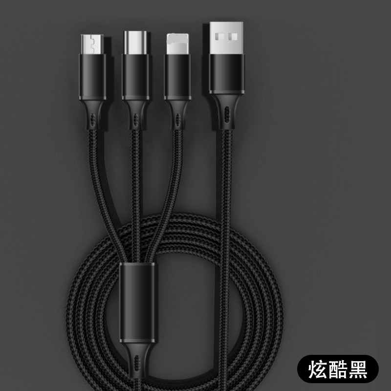 尼龙编织一拖三数据线多头手机快充线三合一typec三头充电线批发