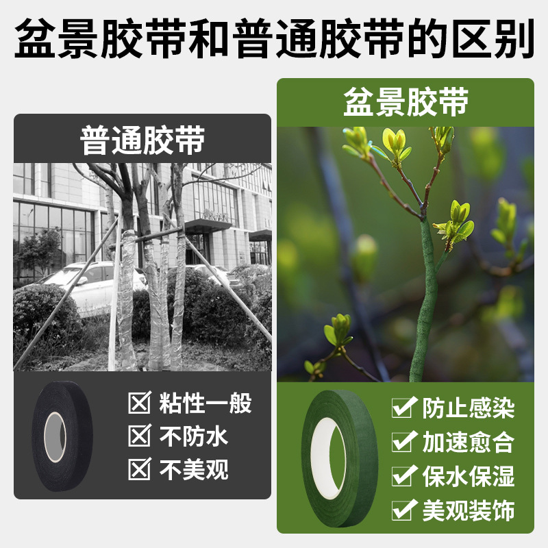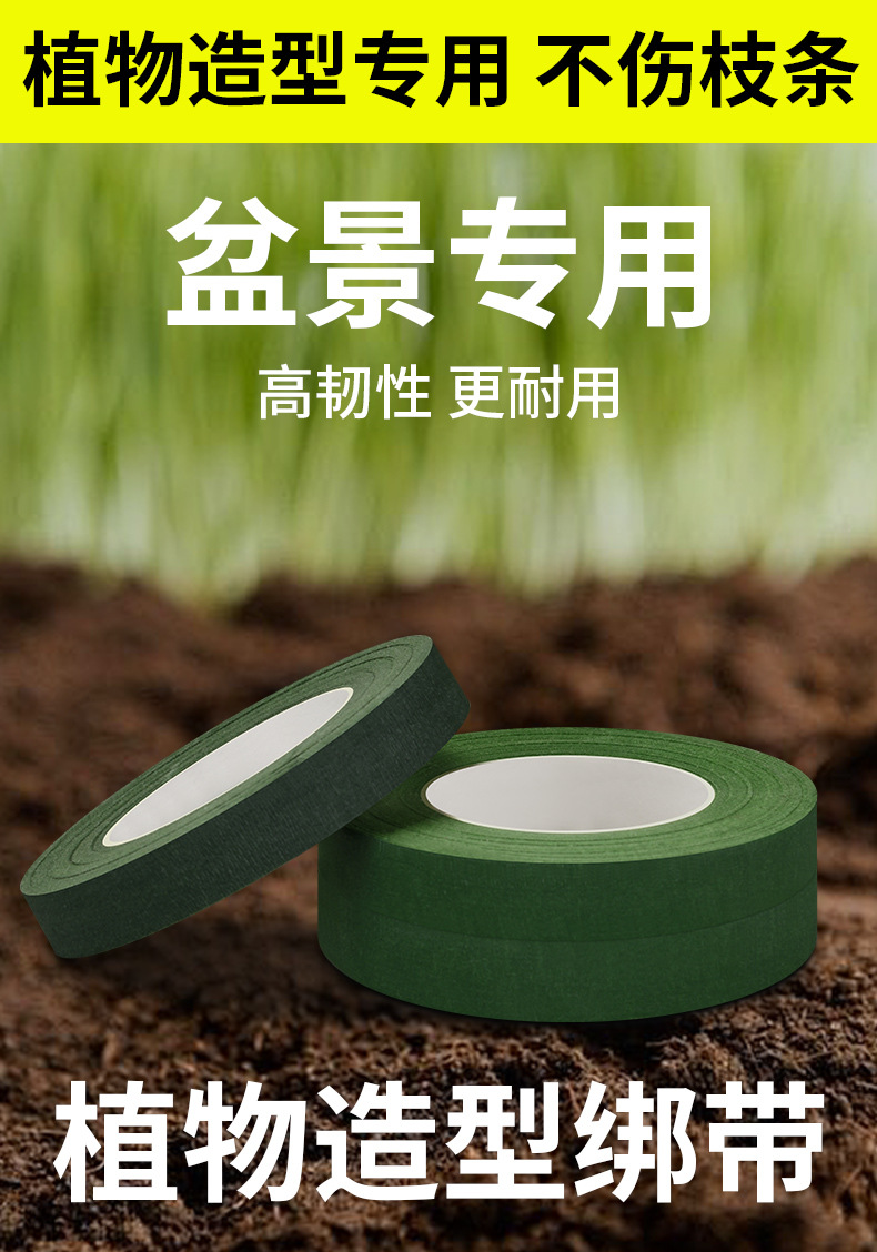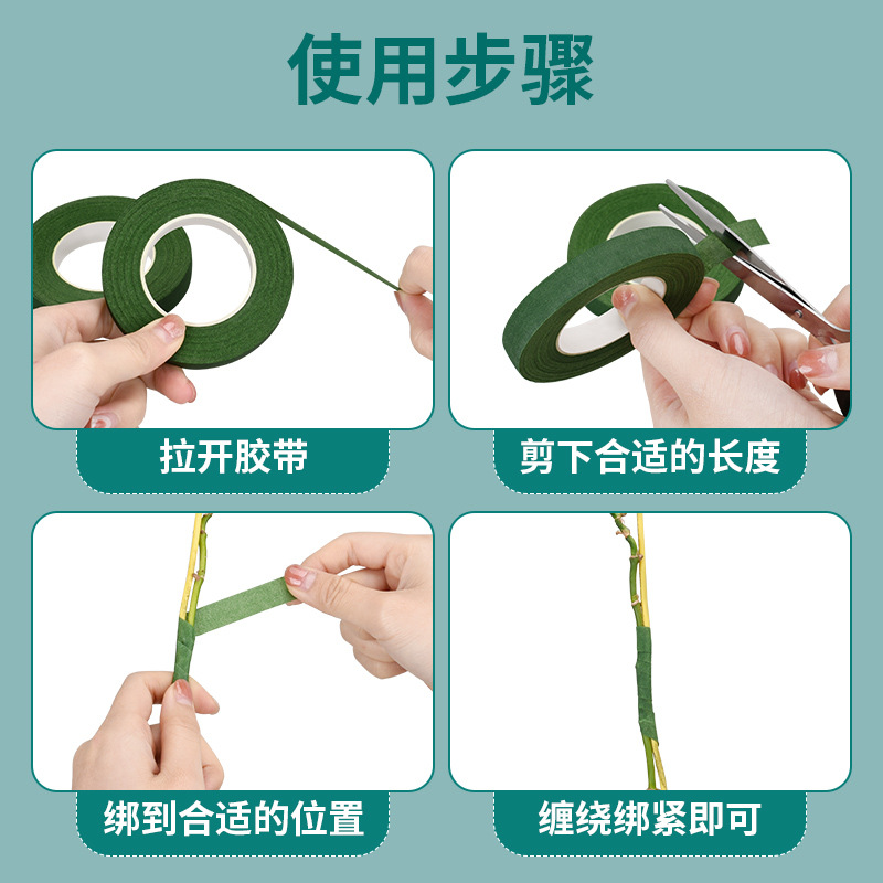 手工花艺胶带diy制作材料扎花环花杆包边胶布绿色皱纹纸盆景缠绕