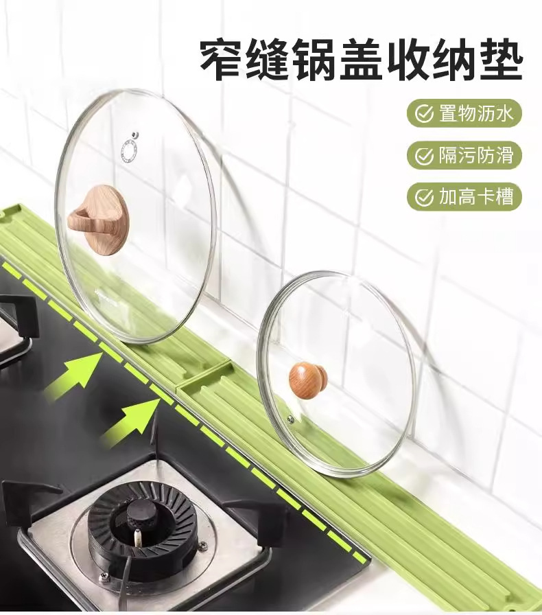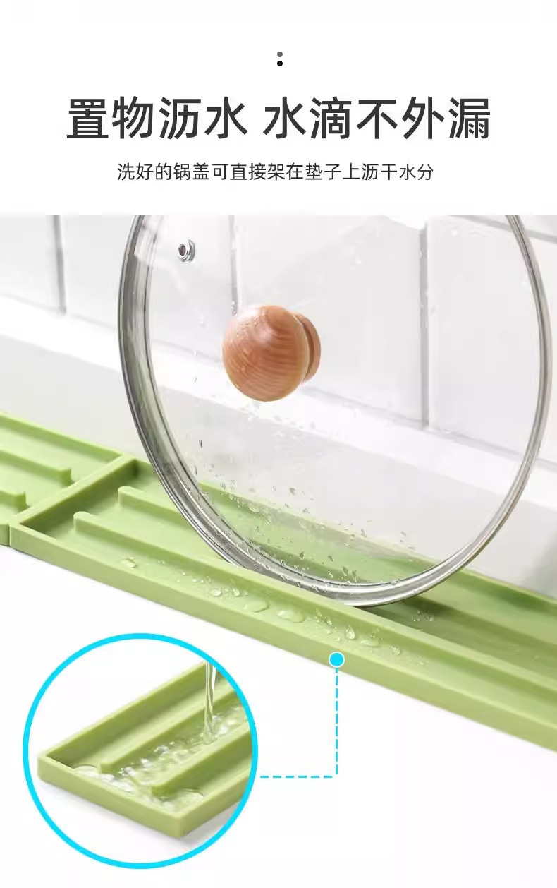 多功能纳置物架垫防滑沥水垫窄缝锅盖收纳垫厨房台面灶台锅铲菜板