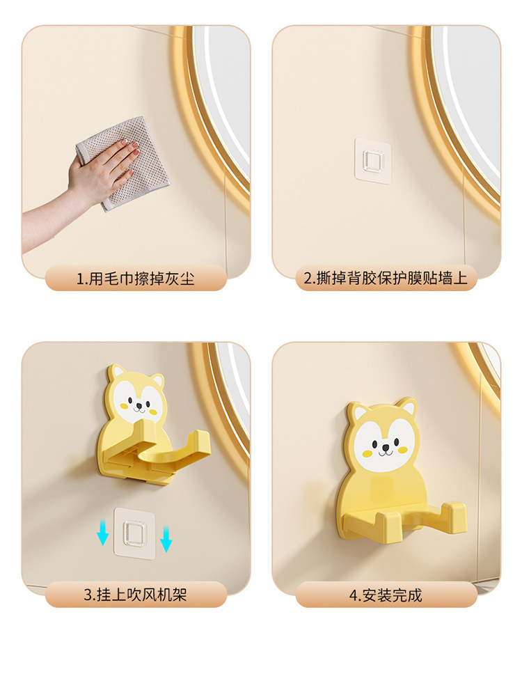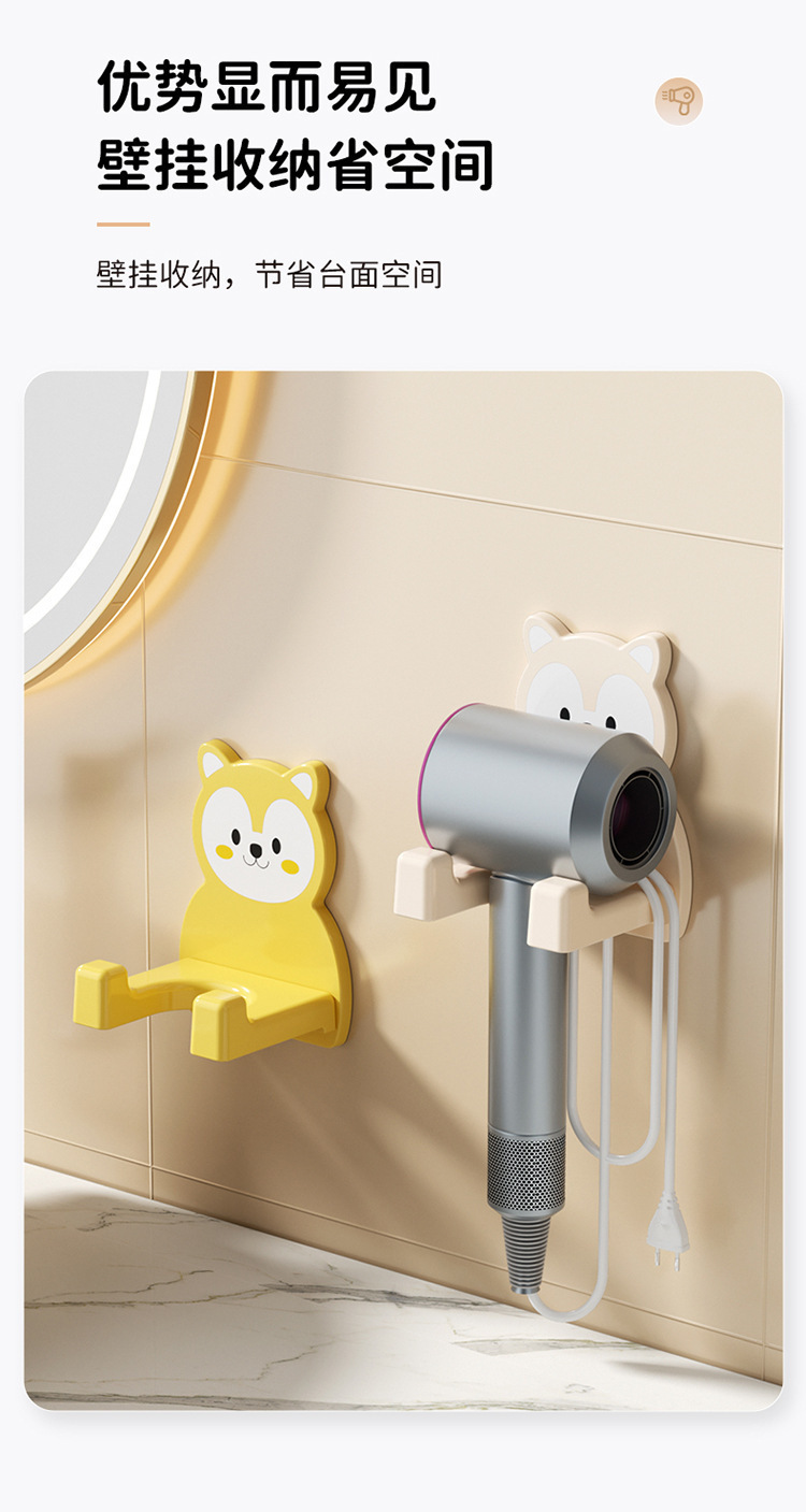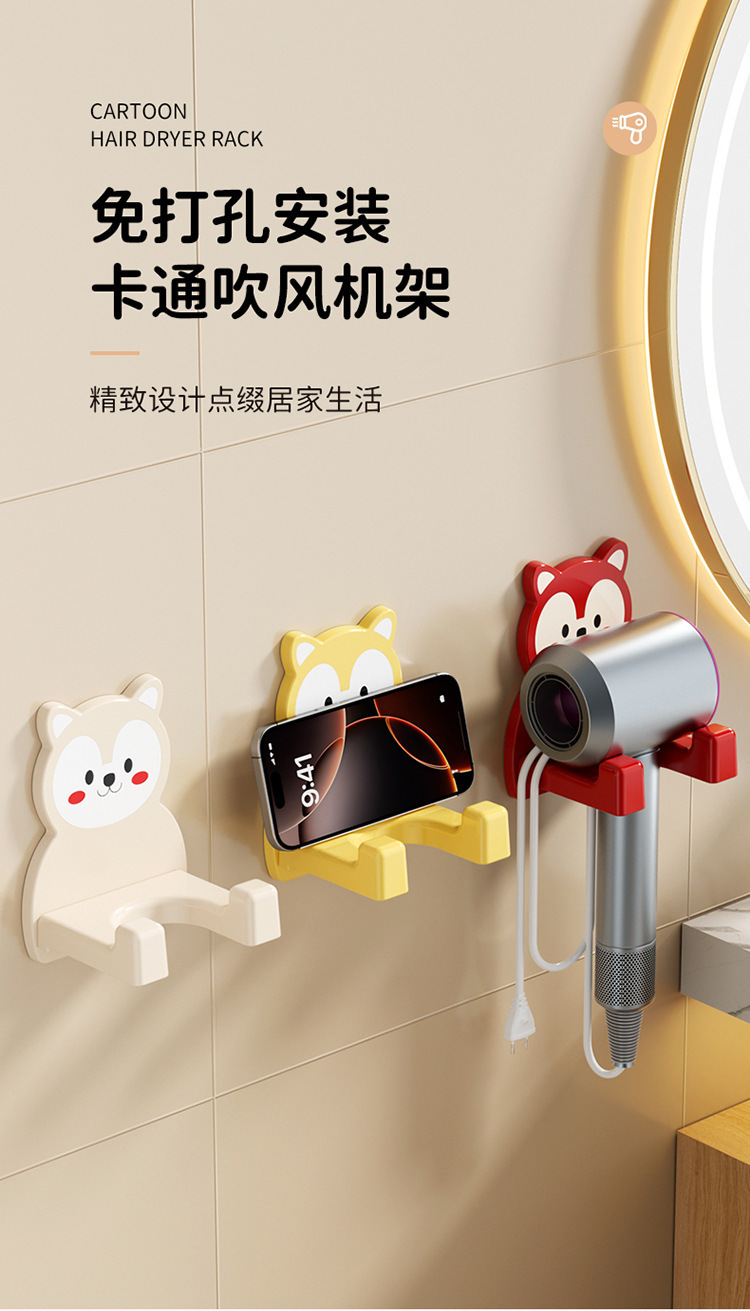 奶油风电吹风支架卡通吹风机置物架懒人风筒支架吹风机收纳免打孔