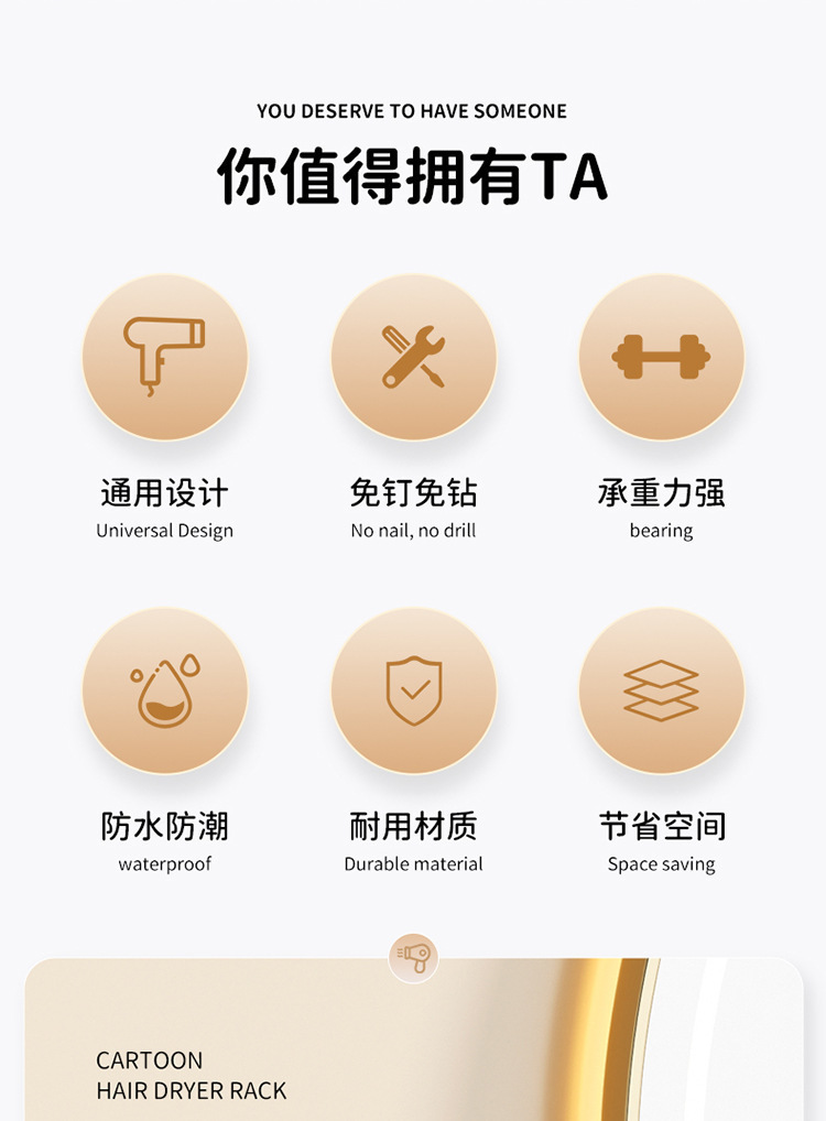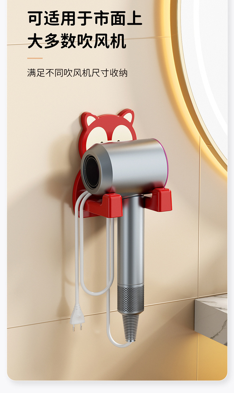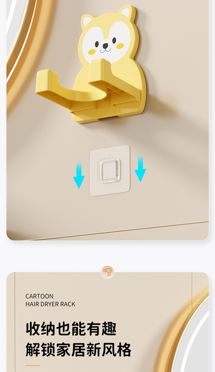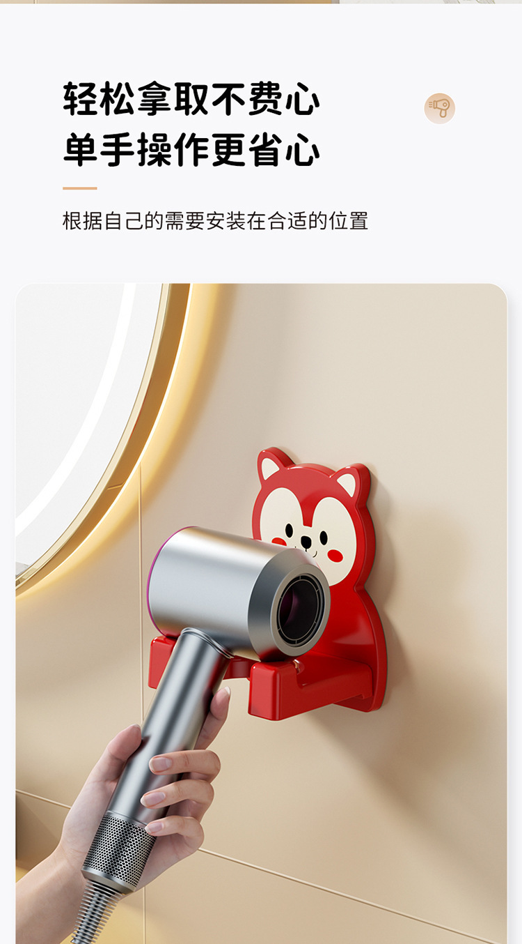 奶油风电吹风支架卡通吹风机置物架懒人风筒支架吹风机收纳免打孔