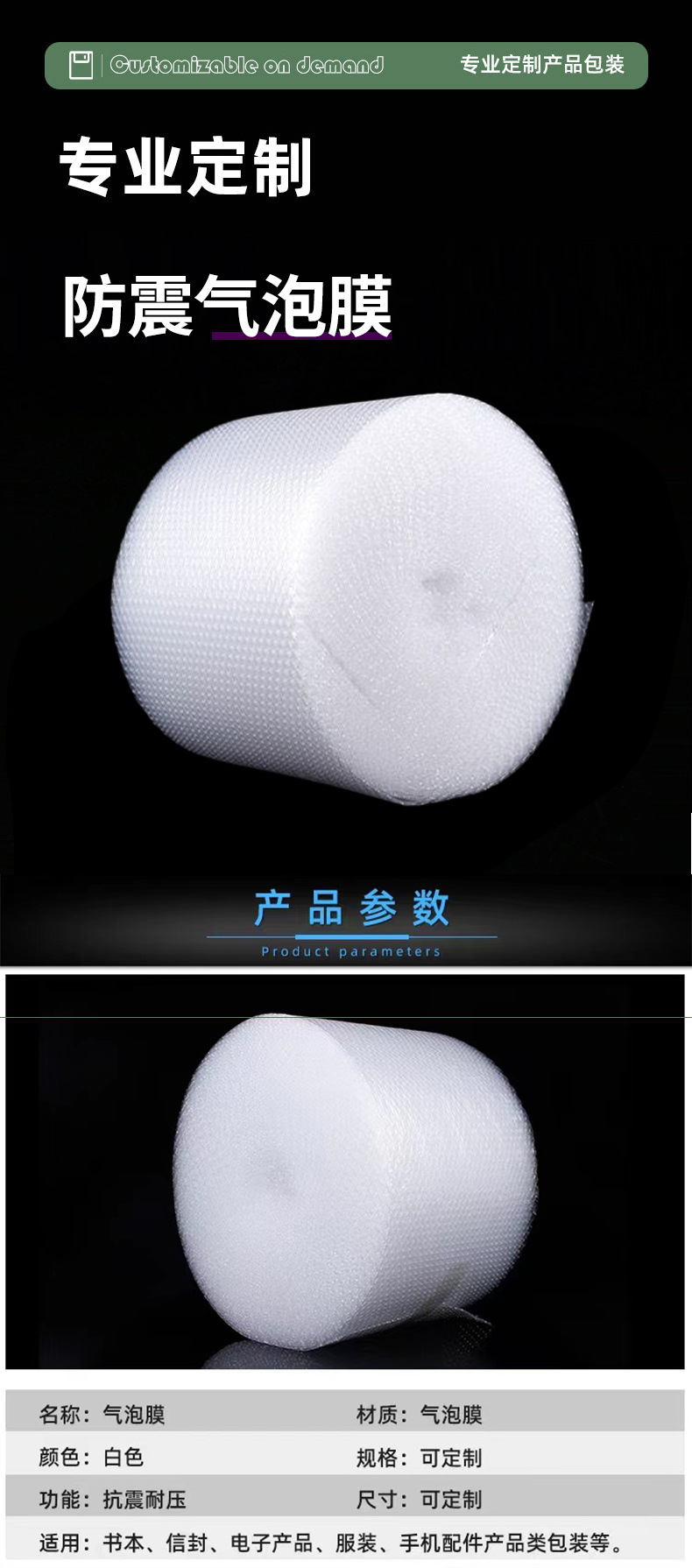 防震皮泡膜卷装加厚快递打包泡泡纸缓冲气泡垫包装膜供应跨境热销