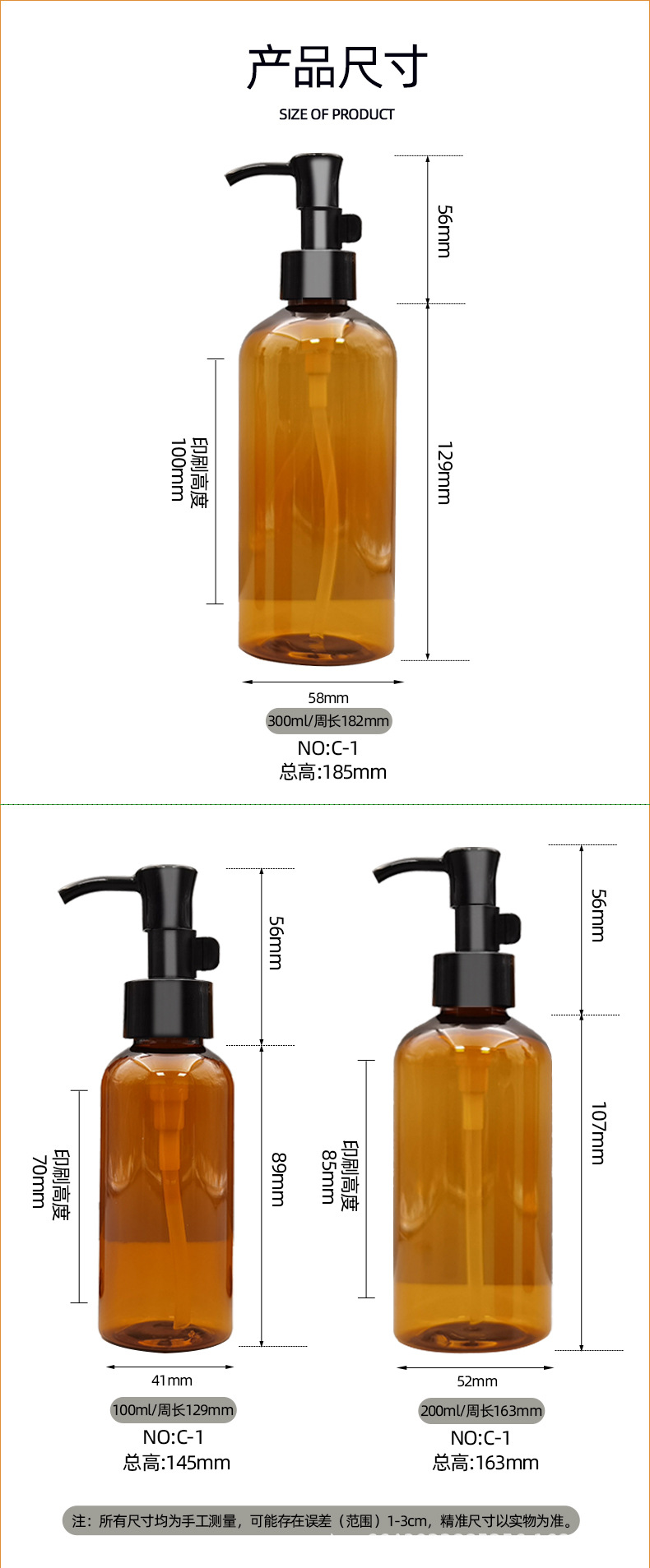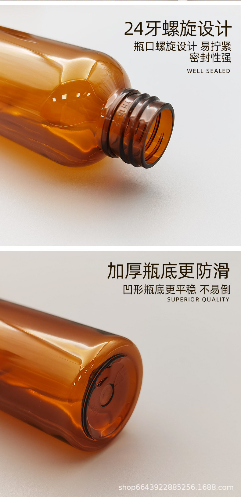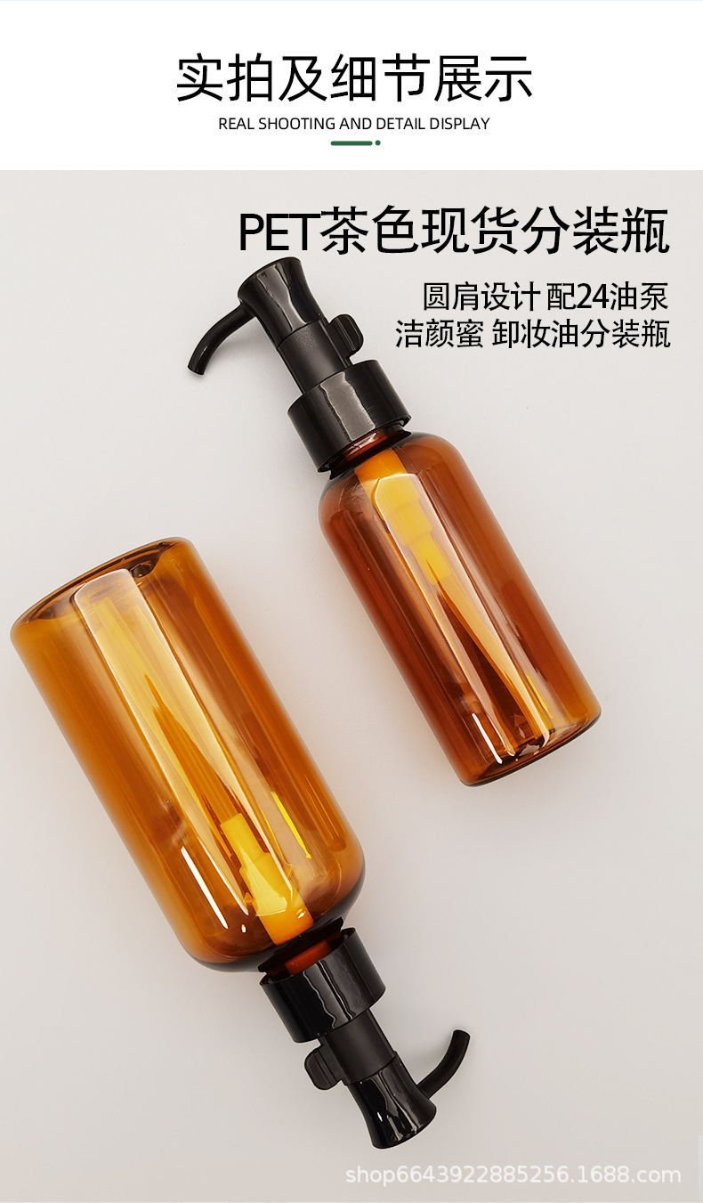 现货茶色精油瓶100ML卸妆油瓶200ml化妆品分装瓶洁颜蜜按压塑料瓶