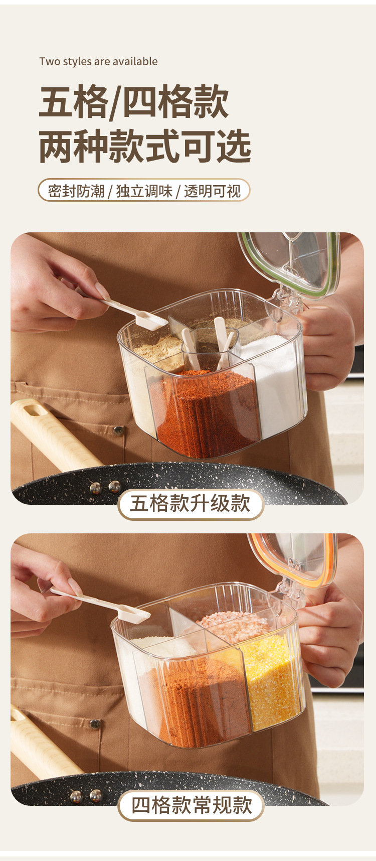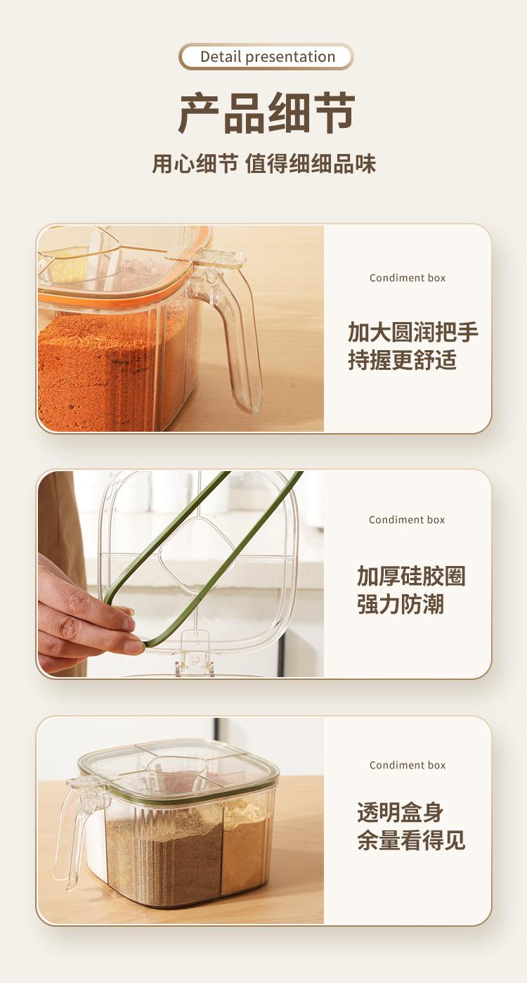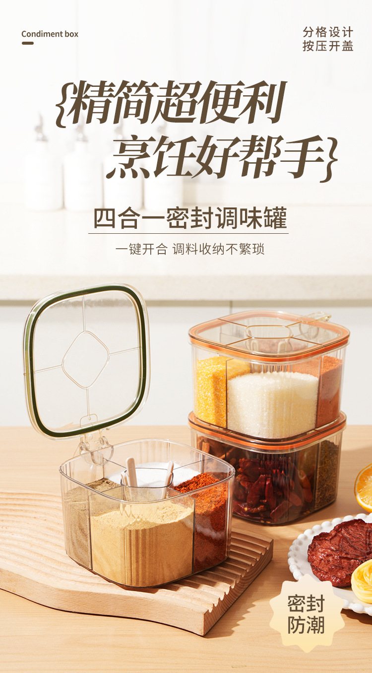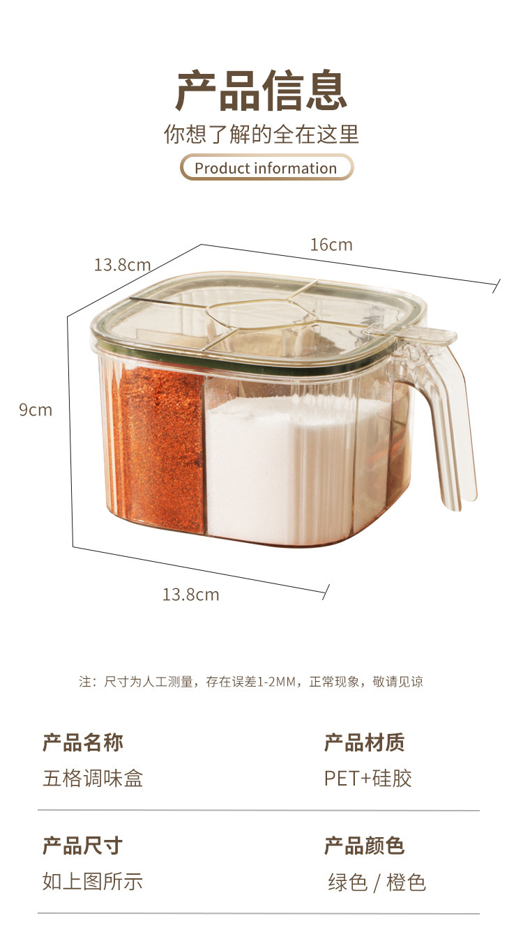 五格一体收纳盐味精瓶盐罐家用罐子调味罐组合套装调料盒厨房用品