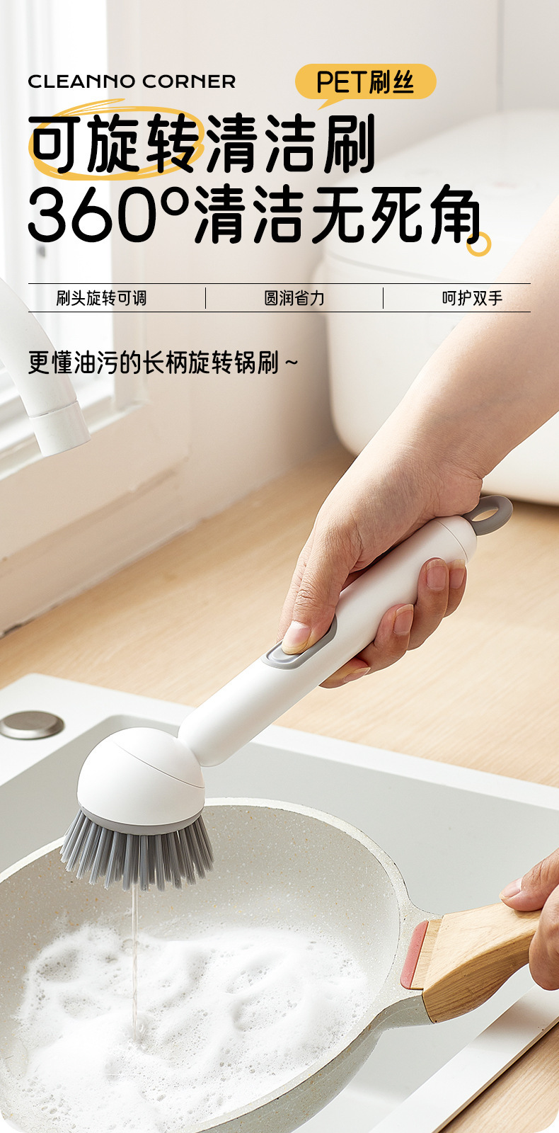 可调节清洁刷加液按压碗刷锅刷多功能厨房专用长柄锅刷加液旋转刷