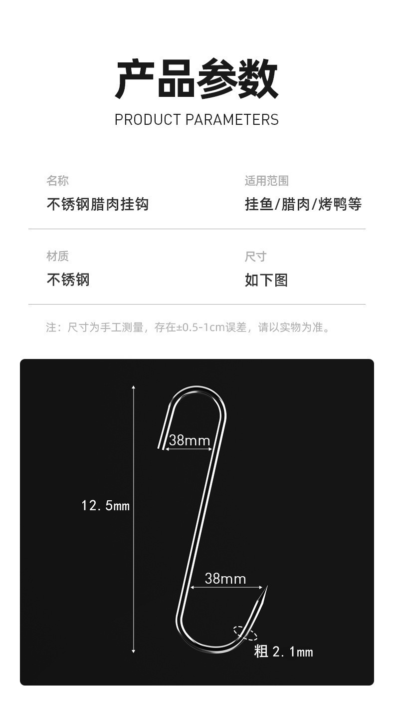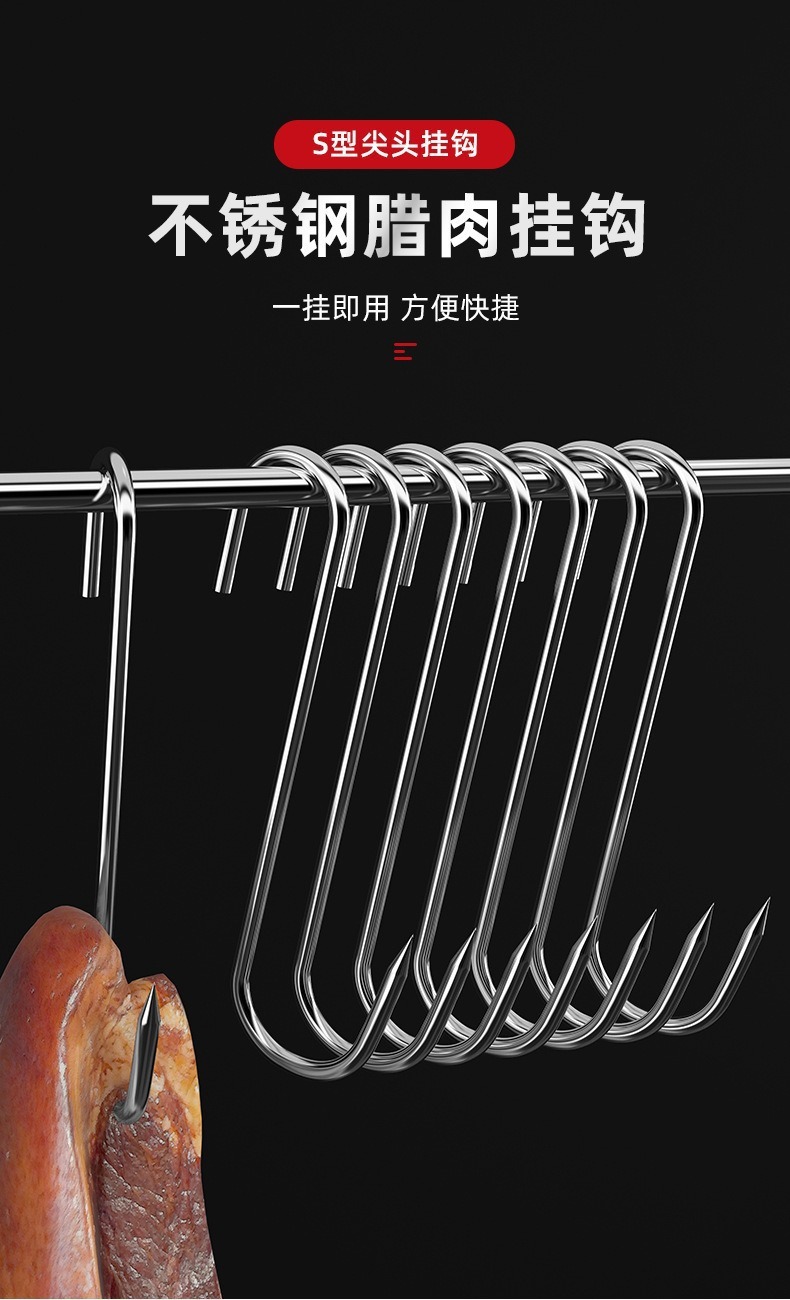 大号加粗S型晒腊肉挂钩实心不锈钢挂猪肉香肠烤鸭勾挂肉S钩子尖头