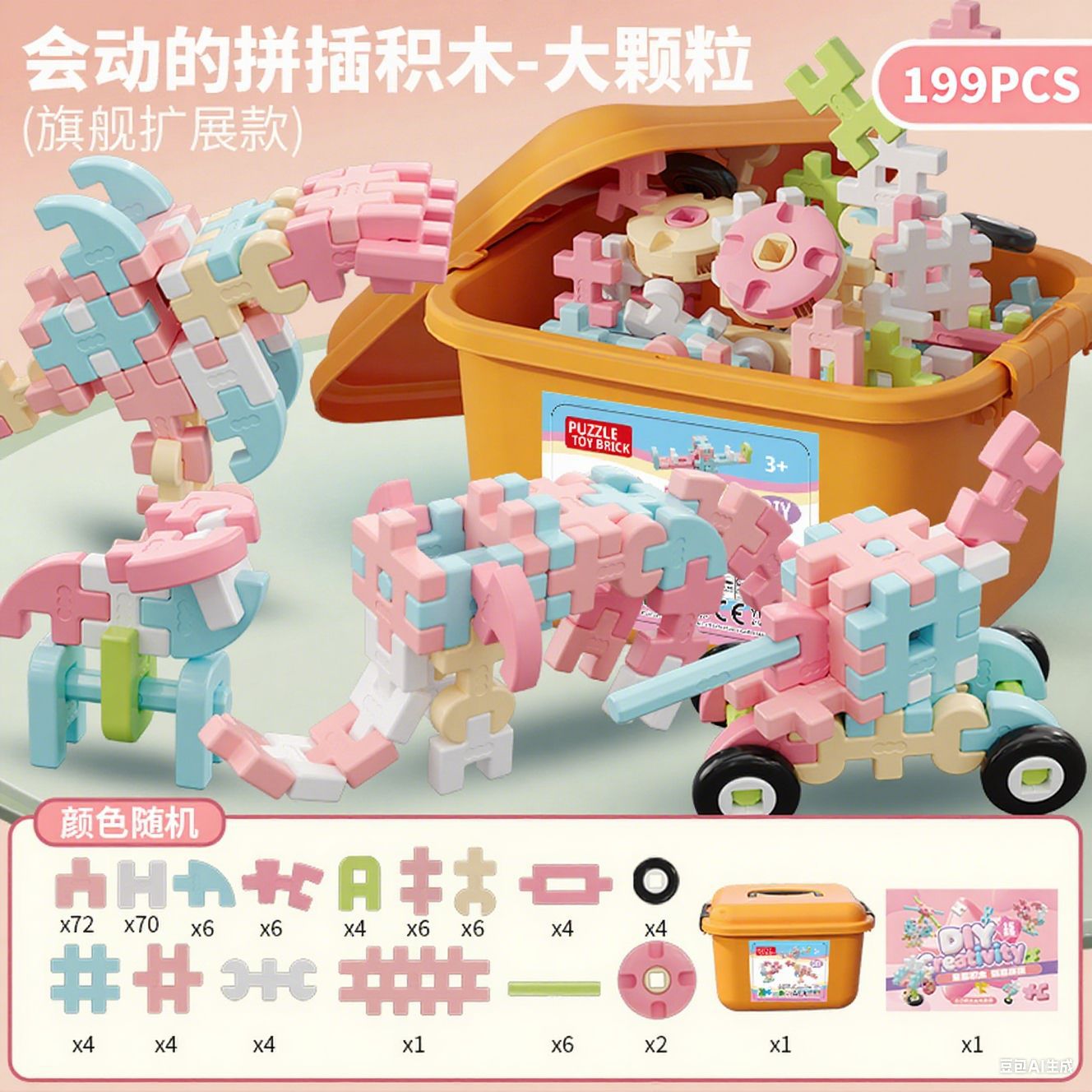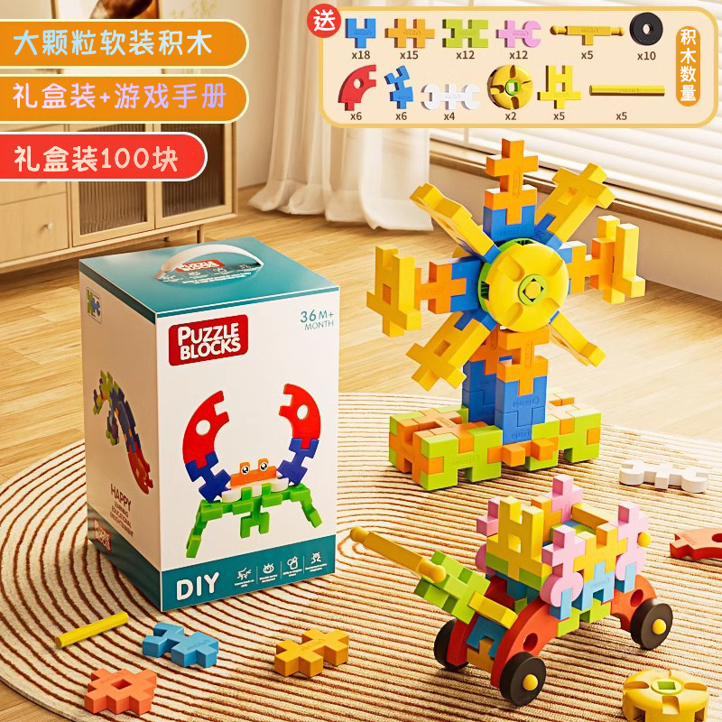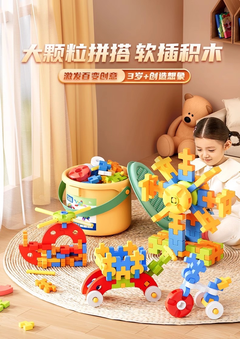 儿童拼插装大颗粒软积木玩具益智男孩思维训练生日圣诞礼物包邮