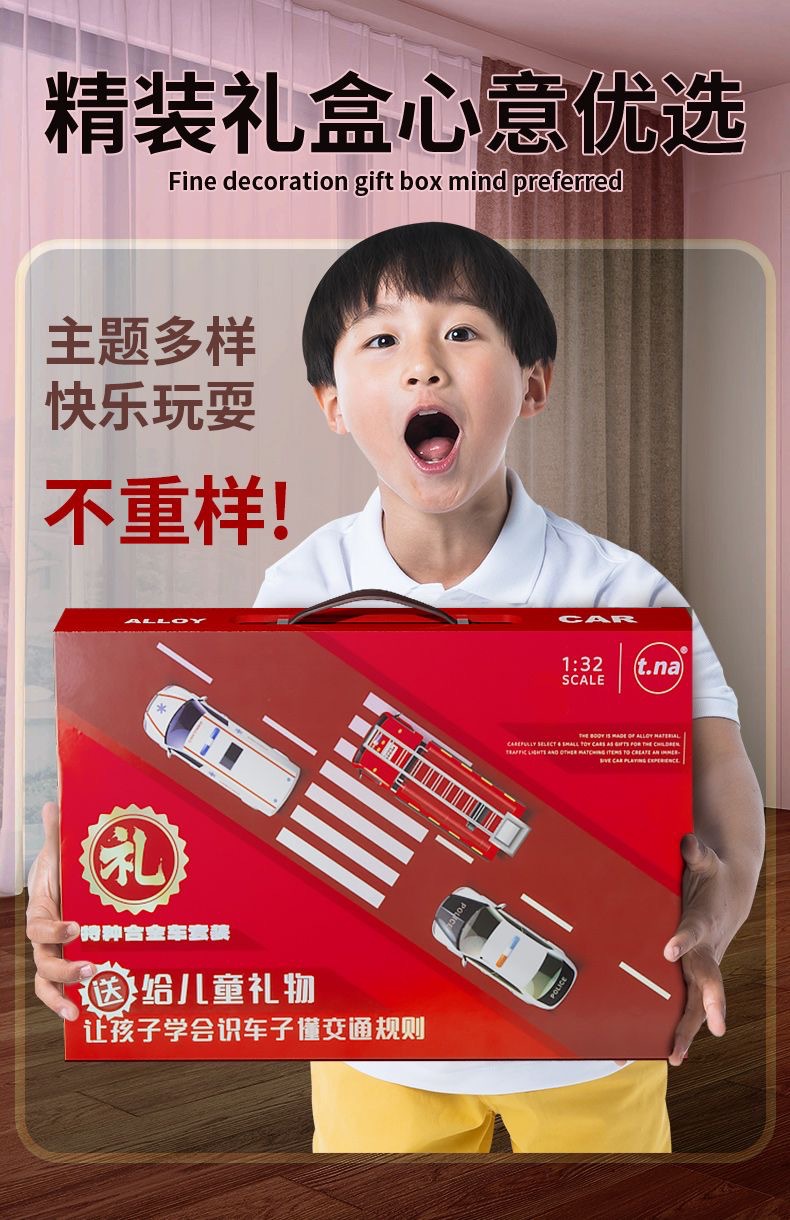 合金儿童消防车玩具男孩小汽车救护车警察车礼盒套装模型车