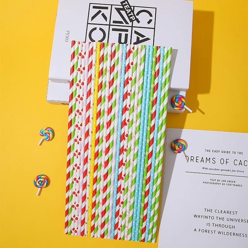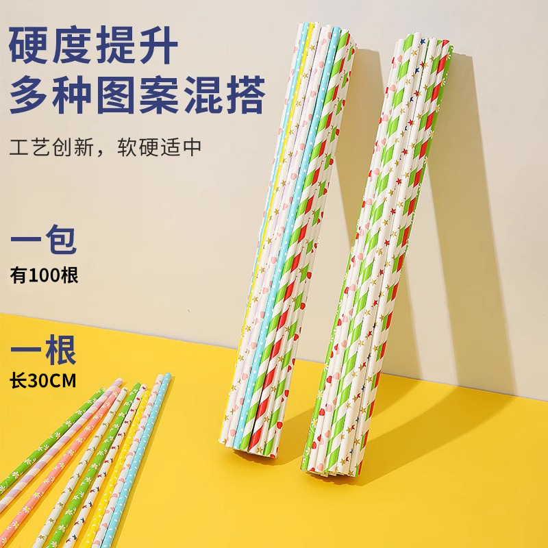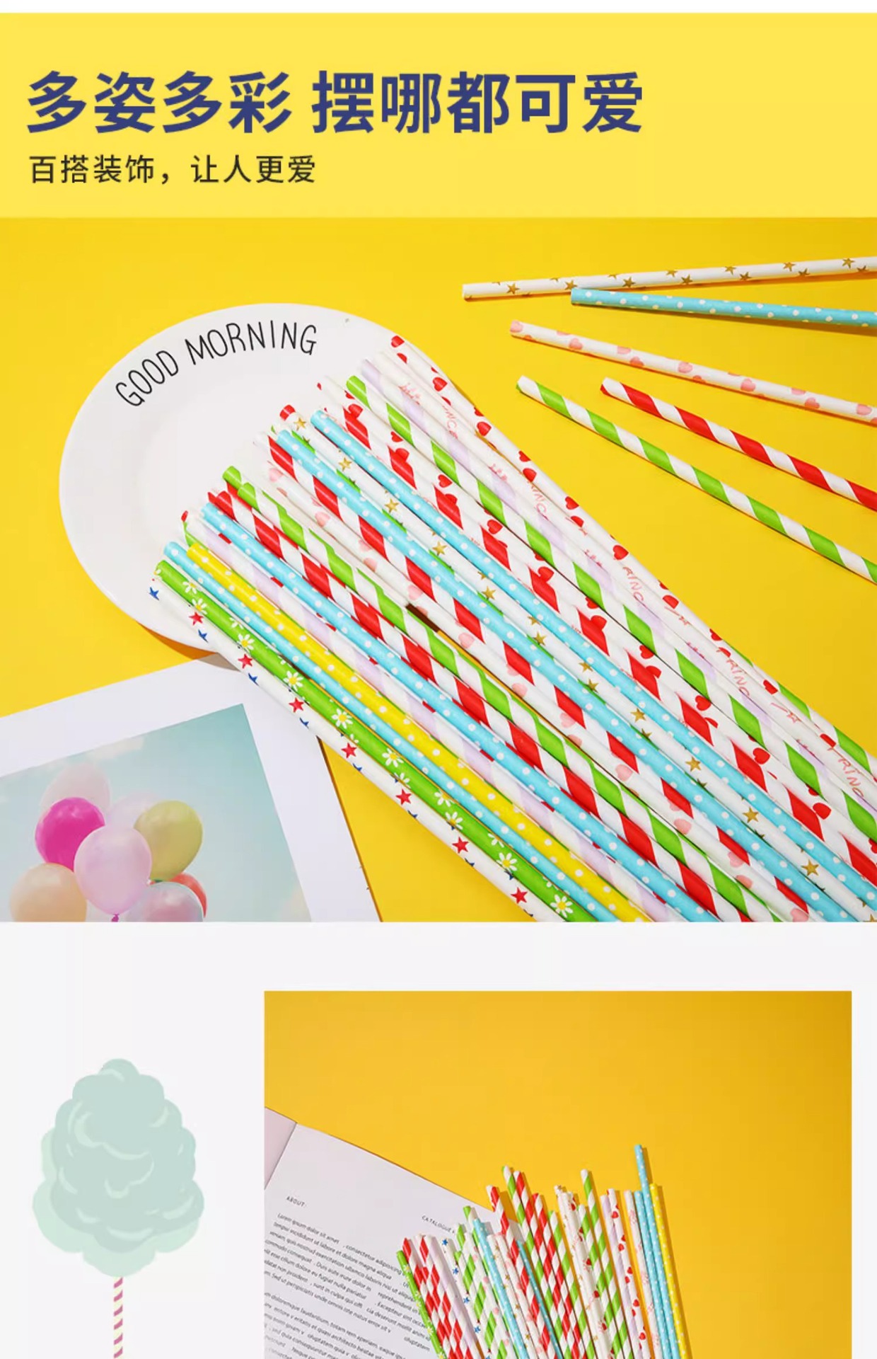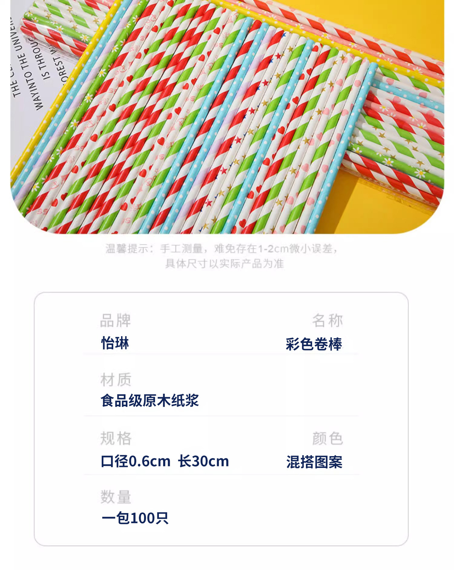 棉花糖专用纸棒100根一次性条纹卡通棒批发食品级吸管卡通条纹
