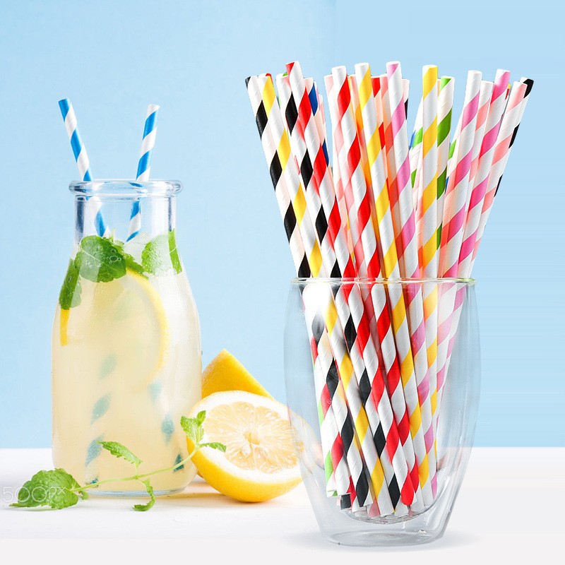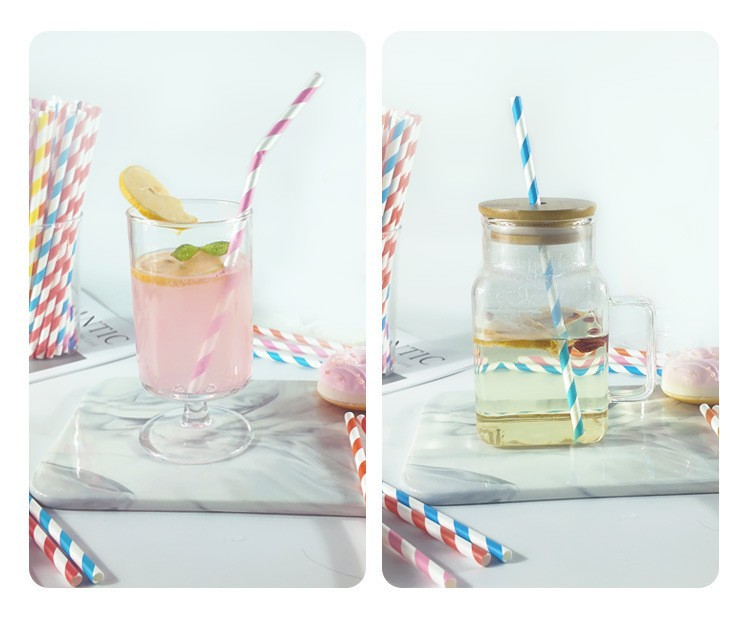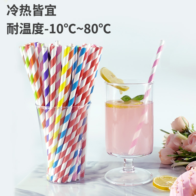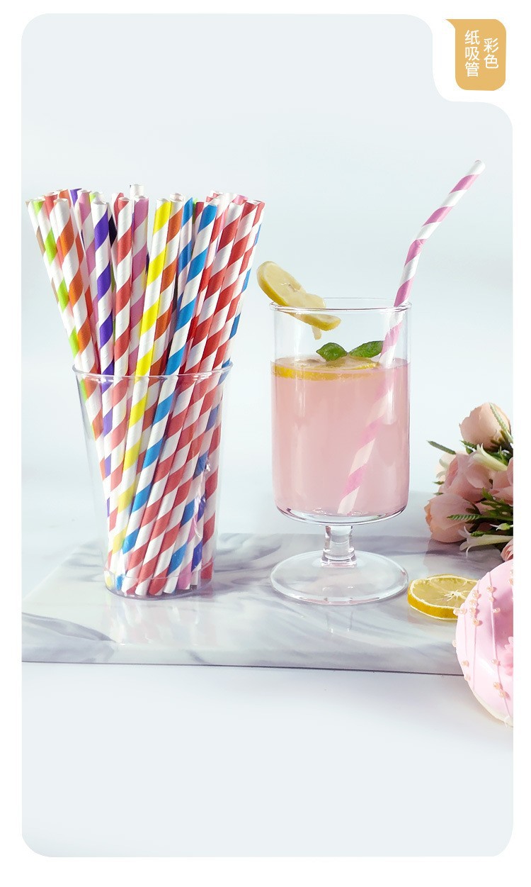 一次性吸管可降解菠萝食品级斜条纹派对鸡尾酒纸细管食品级可降解