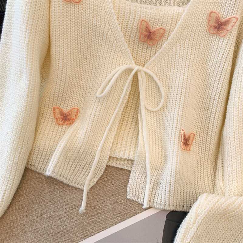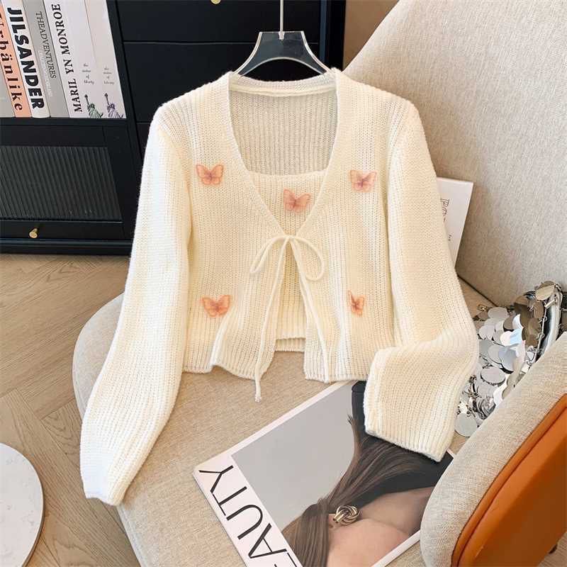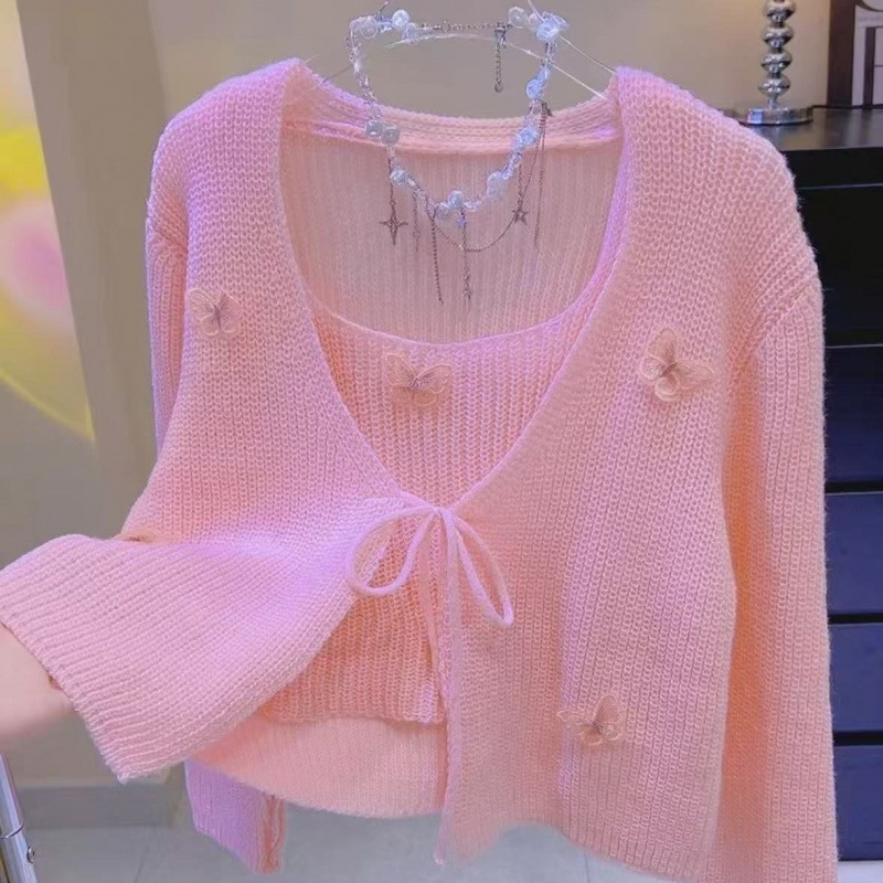 立体装饰针织开衫吊带套装女2025春季新款设计感长袖两件套上衣