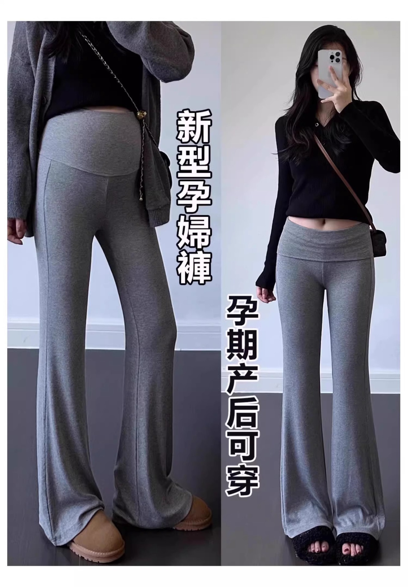 孕妇裤子春秋款外穿微喇裤冬季孕期小个子托腹休闲长裤加绒孕妇装