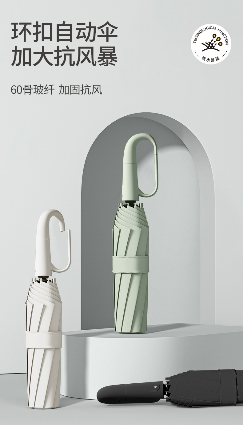 全自动环扣雨伞便携式广告伞加固防晒抗风晴雨两用商务礼品折叠伞