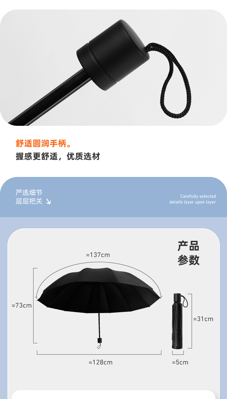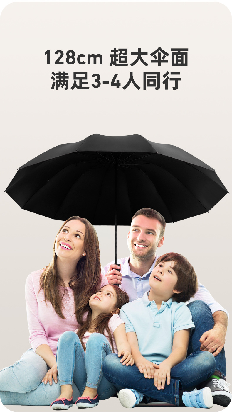 十二骨超大号雨伞手动三折叠男女商务加大睛雨两用抗暴风雨太阳伞