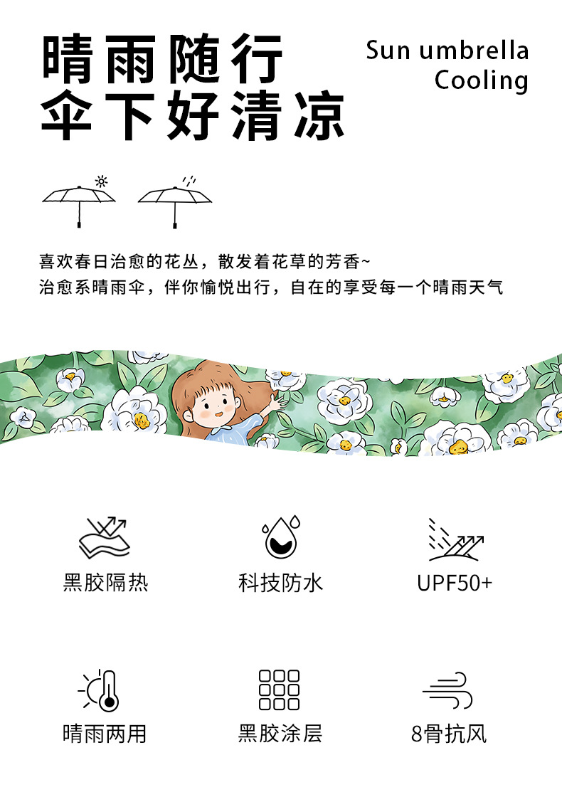 高颜值折叠儿童雨伞手动卡通黑胶遮阳男女生小朋友防晒便携晴雨伞
