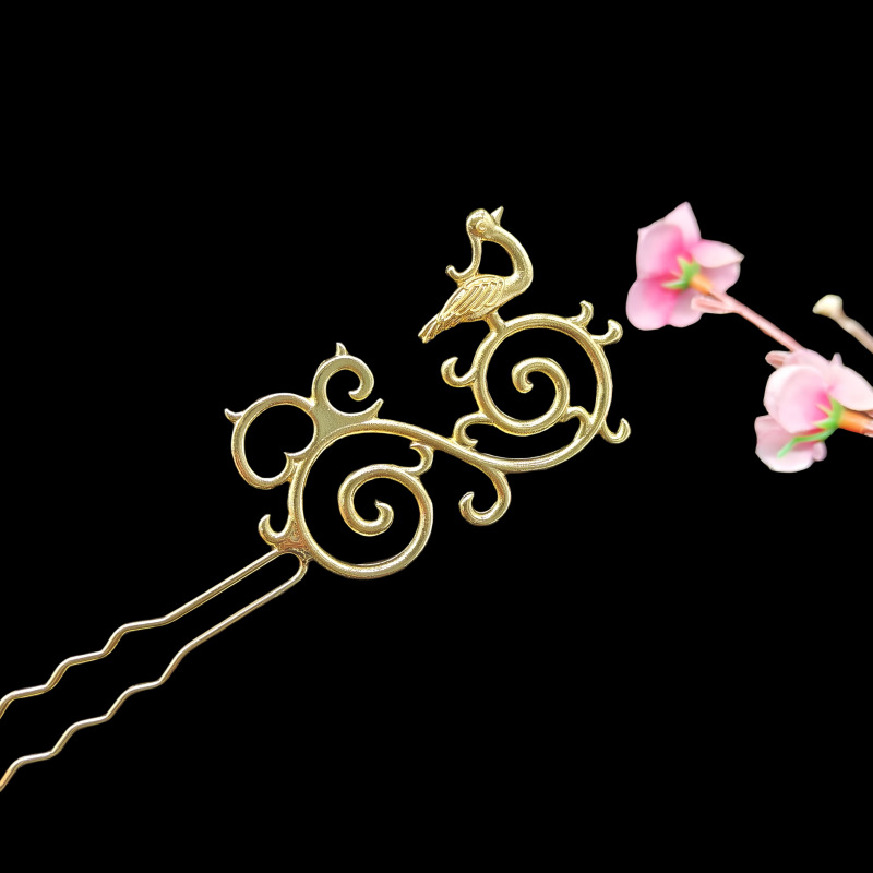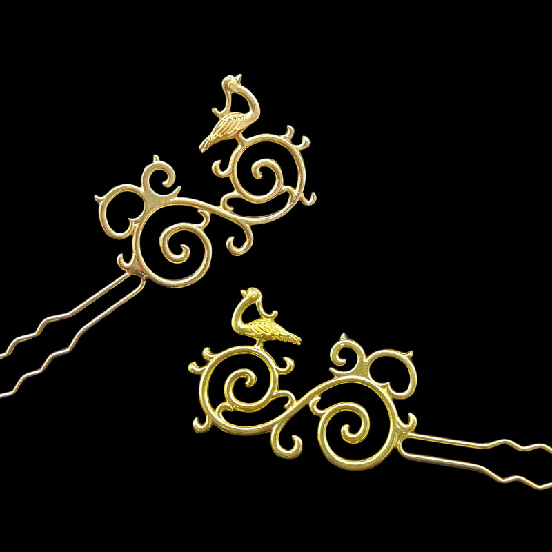 英亿饰品 DIY 仿文物款 西汉步摇 双面立体鸳鸯发钗古风头饰 发簪