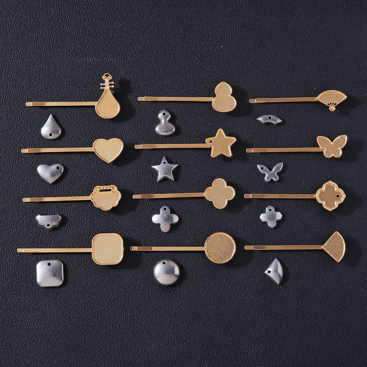 英亿饰品DIY 宋锦发夹 一字夹底托凹槽带盖 新中式贴布艺头饰材料