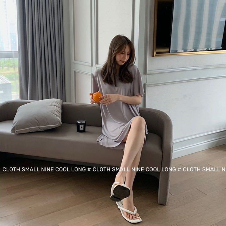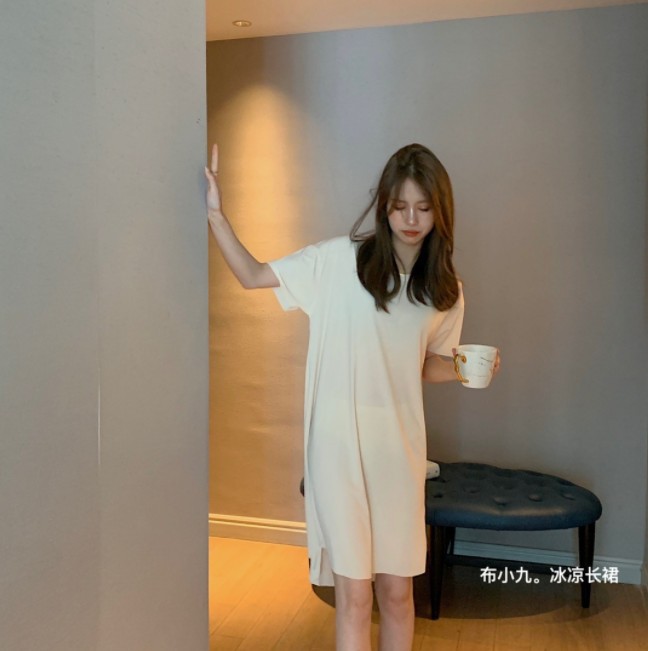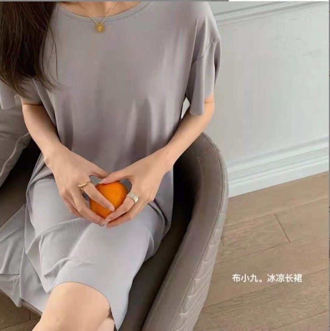 布小九冰凉长裙 2025夏季薄款居家舒适睡衣休闲纯色外穿连衣裙女