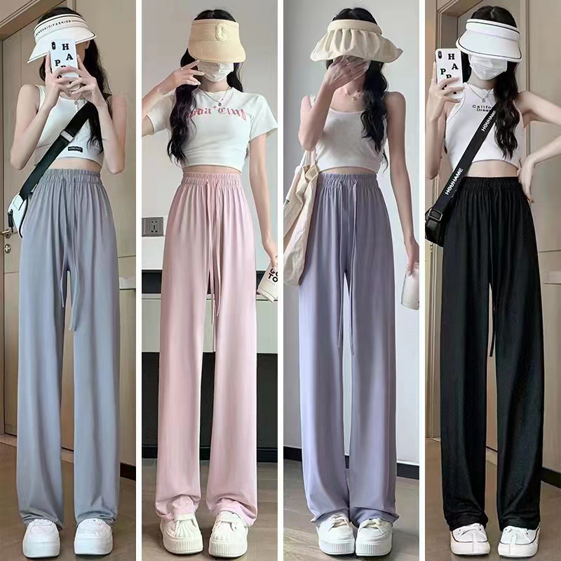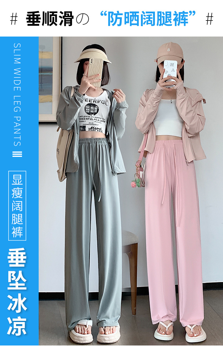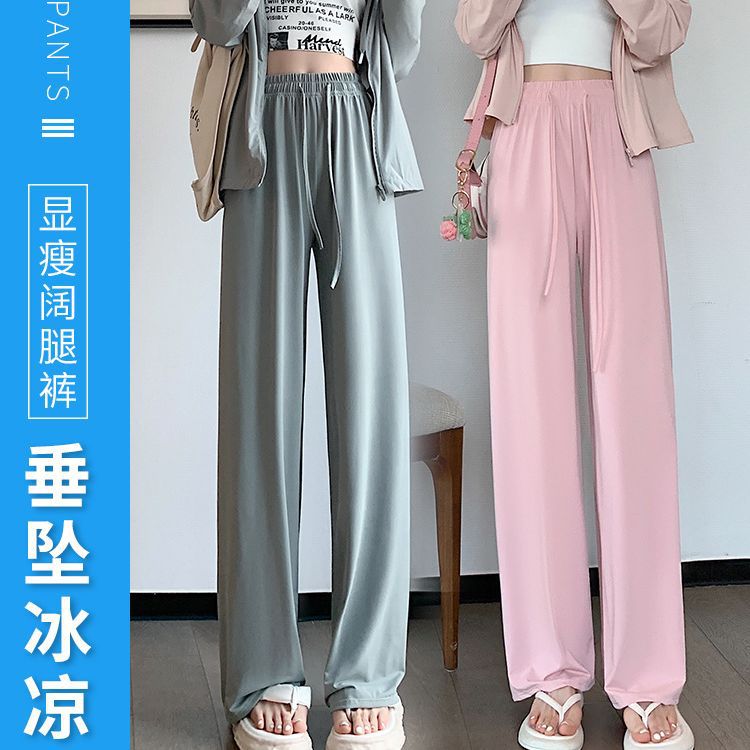 冰丝阔腿裤女夏季薄款2025新款垂感凉凉防晒裤高腰直筒拖地裤子女