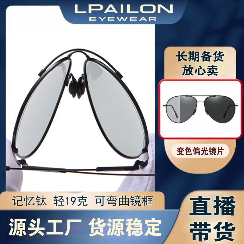 雷派龙记忆框飞行员偏光太阳镜男士驾驶变色防蓝光眼镜墨镜蛤蟆镜