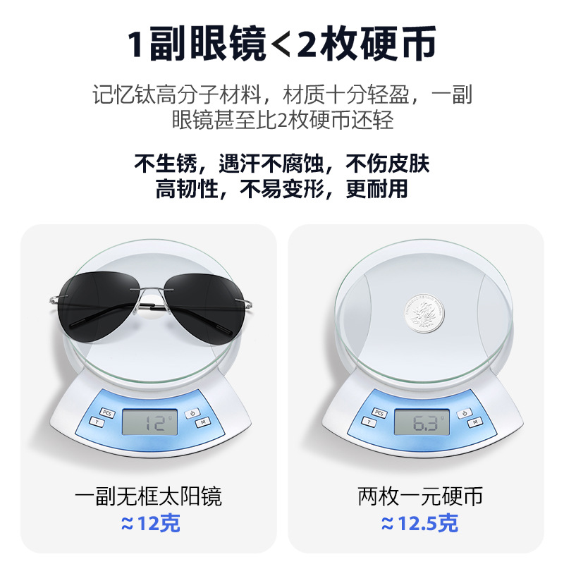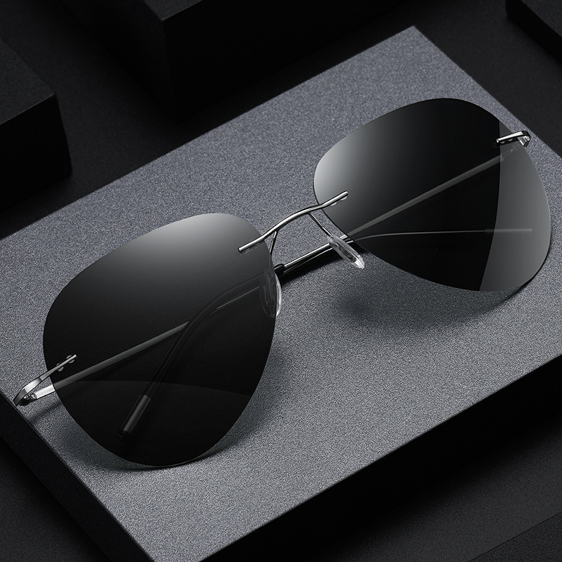 新款超轻钛轻偏光无框变色太阳镜男士开车驾驶蛤蟆镜日夜两用眼镜