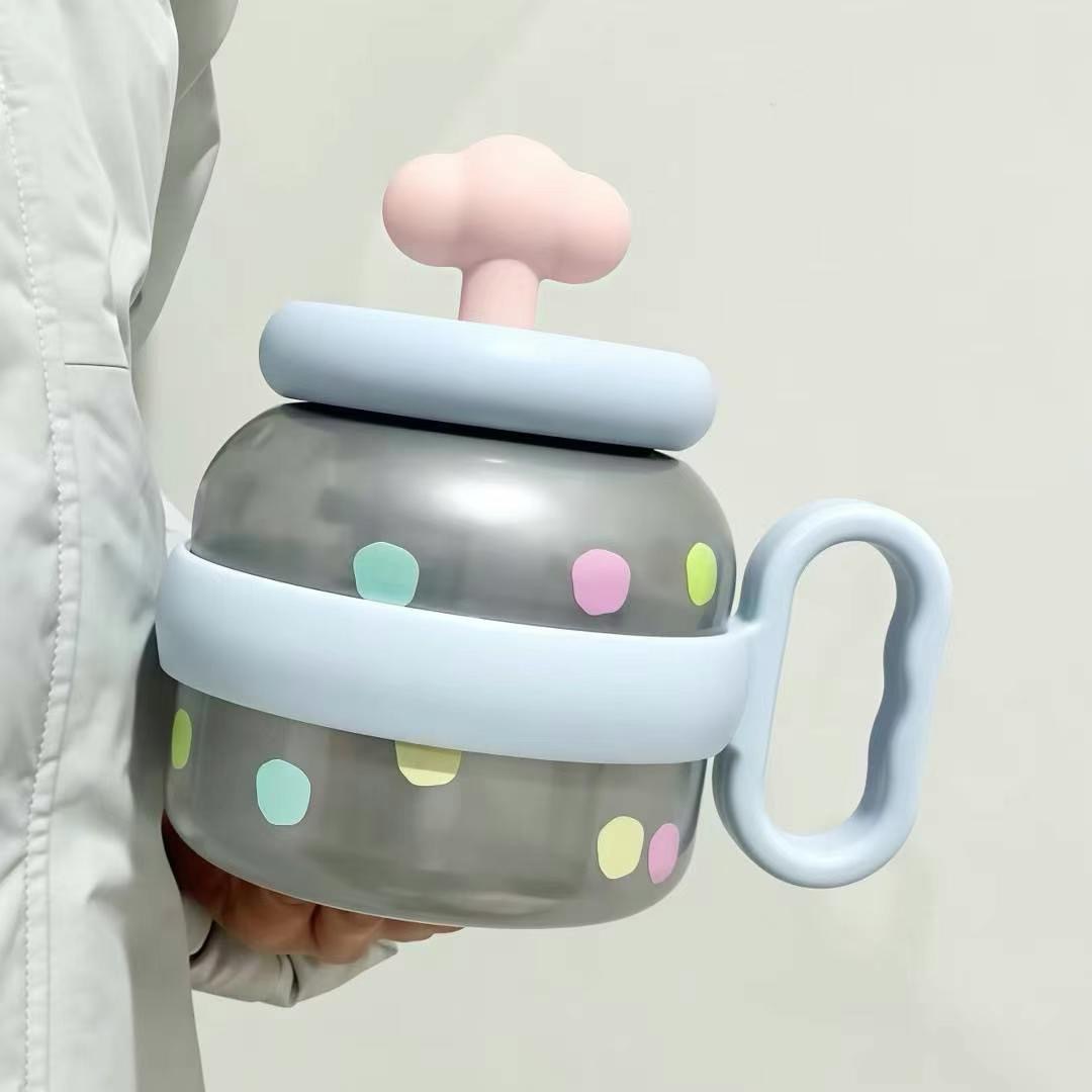高颜值可爱大肚吸管杯杯大容量吸管女生桌面水杯便携手柄学生杯子