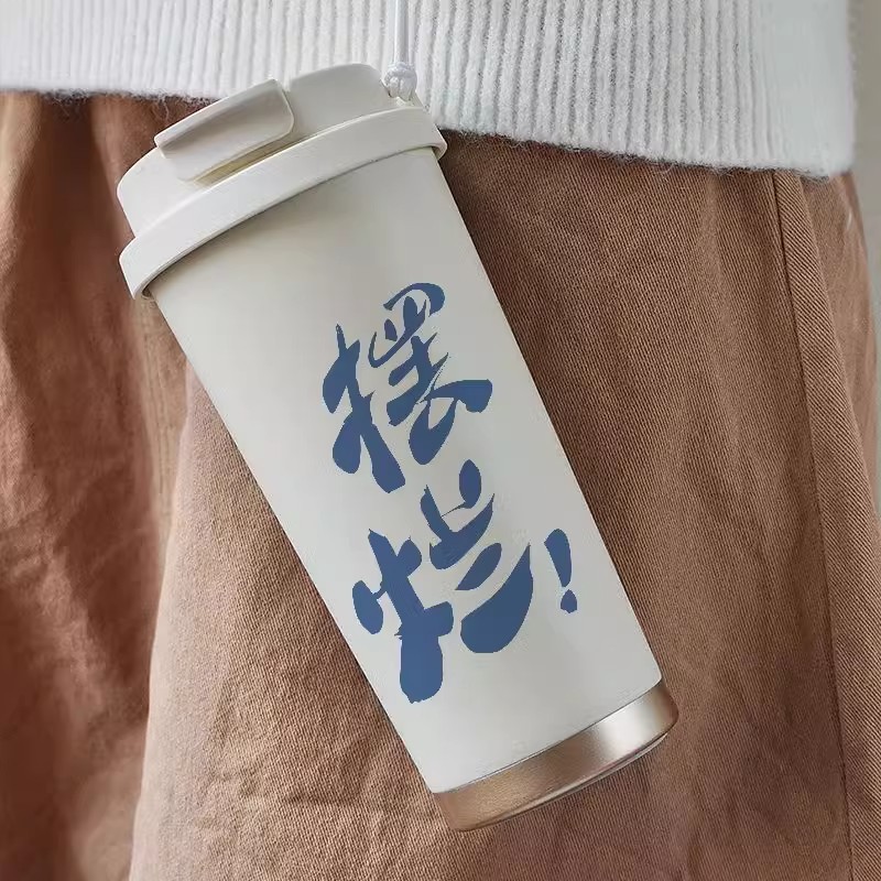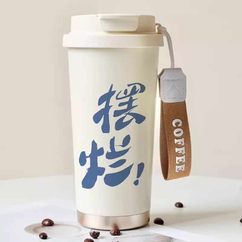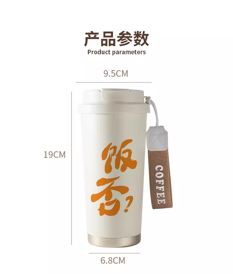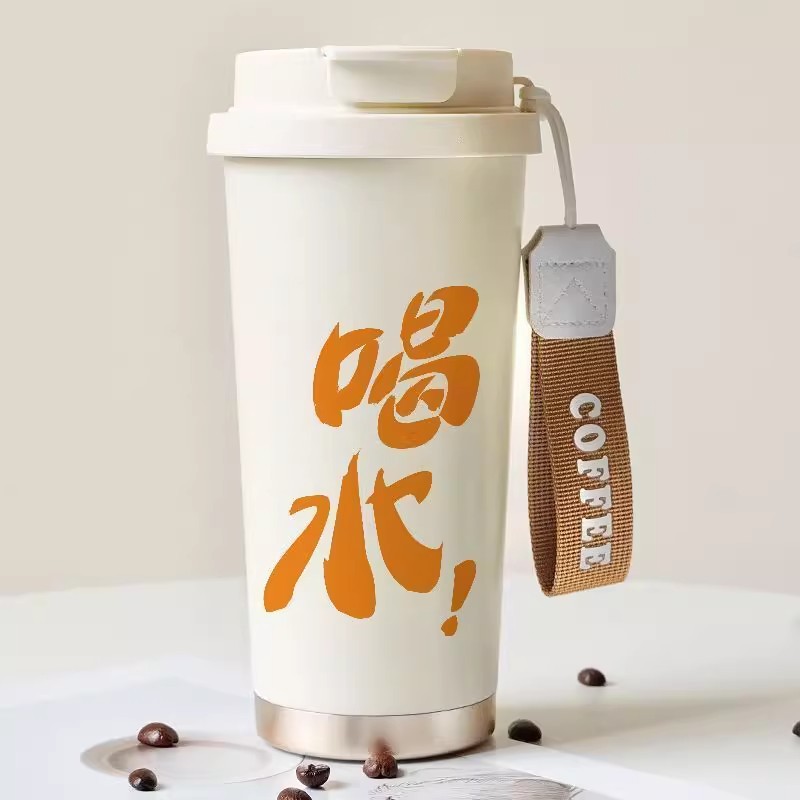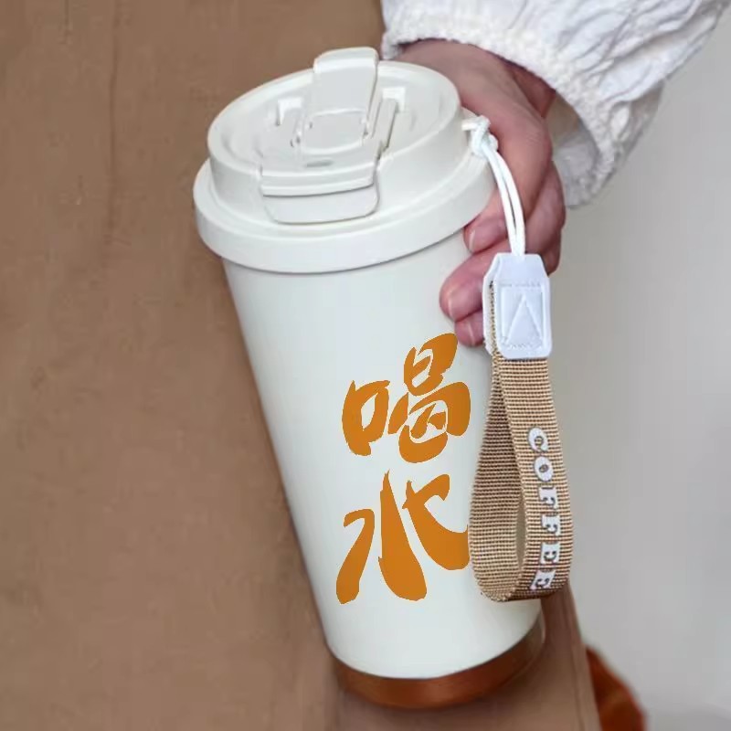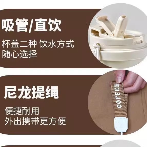 简约双饮水杯316不锈钢吸管保温杯大容量便携防摔学生咖啡杯子男
