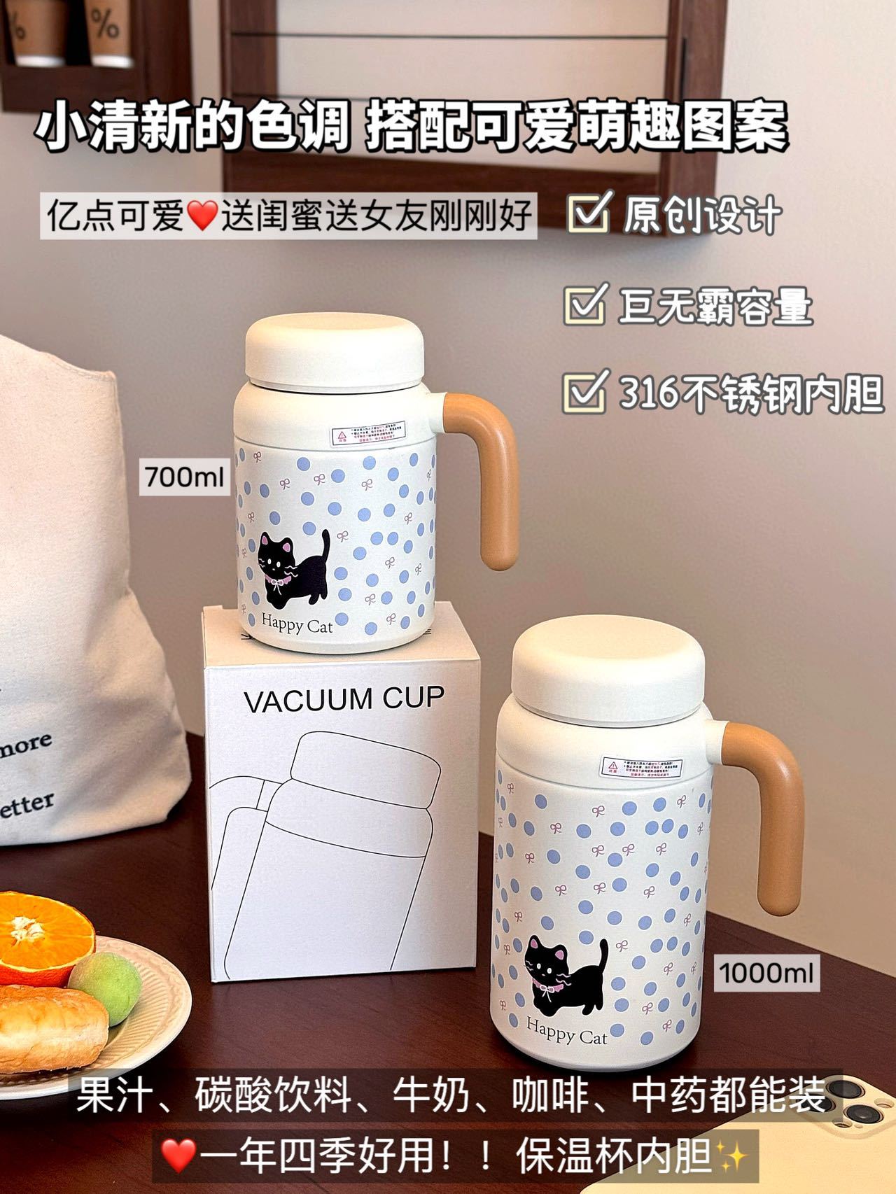 高颜值便携新款女生316不锈钢大容量保温杯杯子吸管学生水杯办公