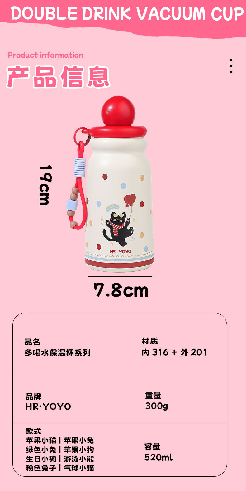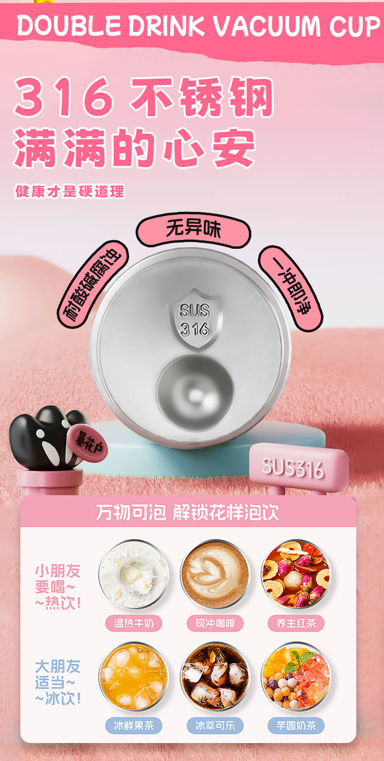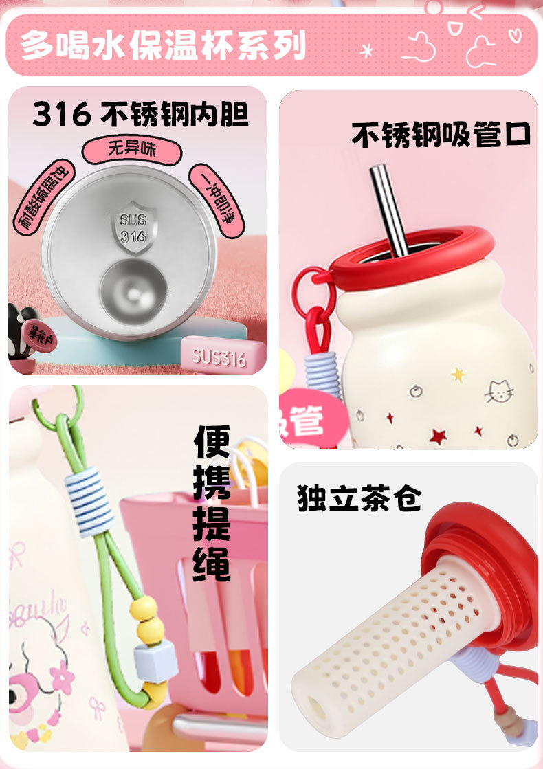 新款高颜值女生卡通保温杯316不锈钢保温杯大容量便携水杯随手杯