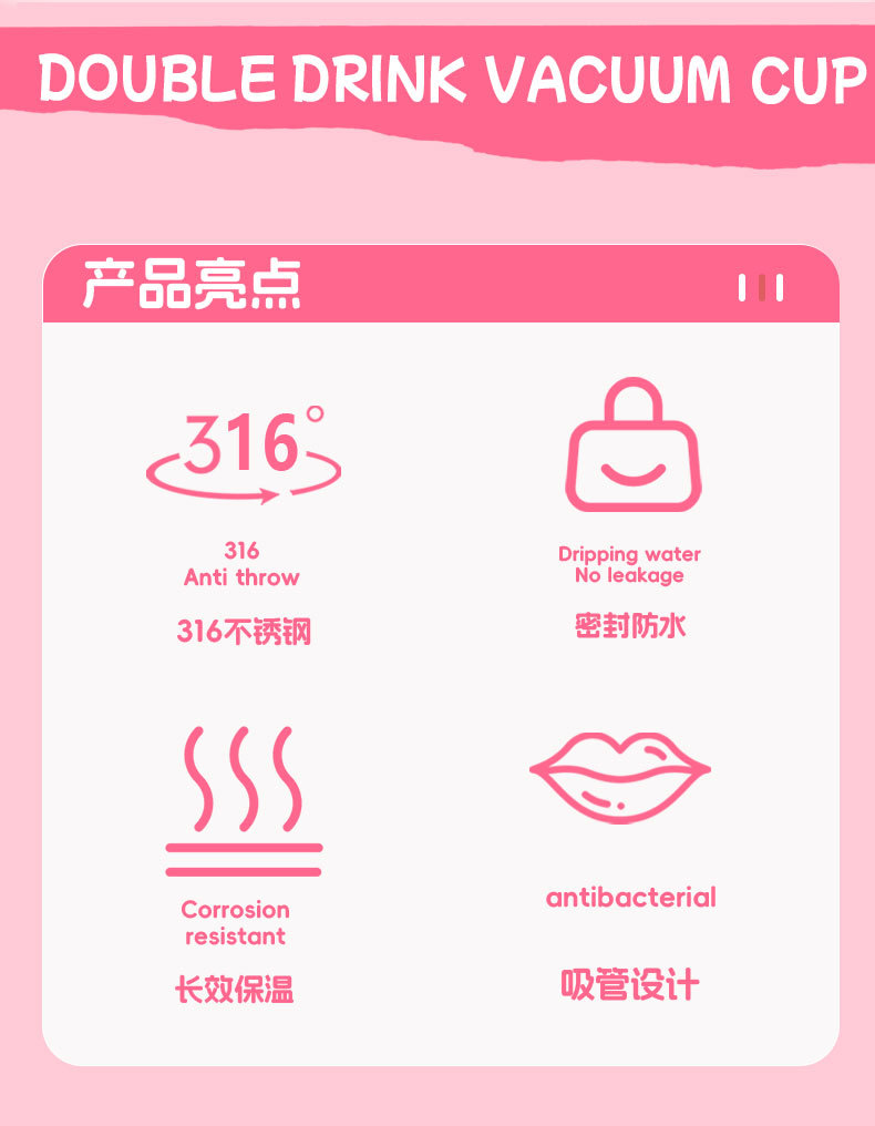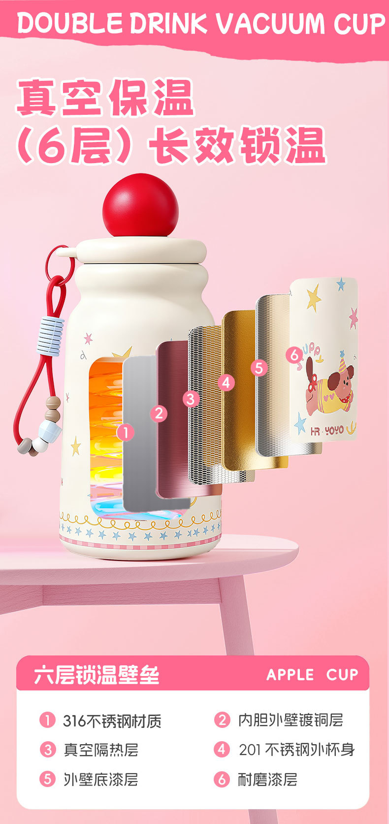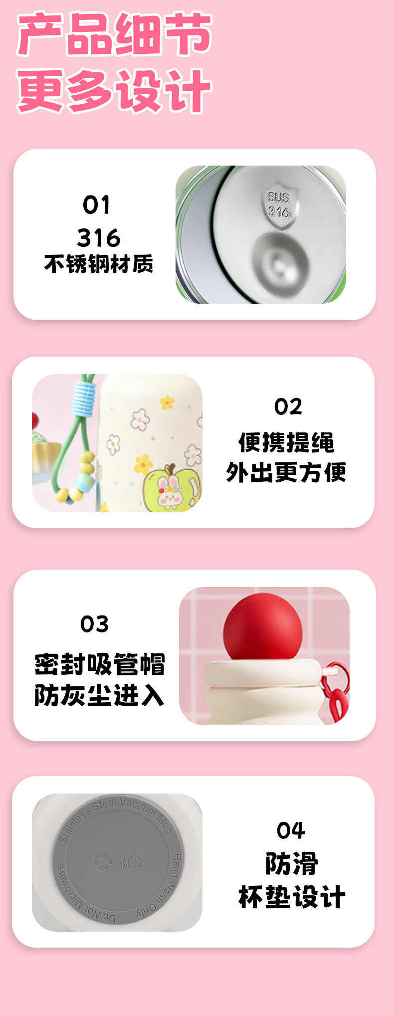 新款高颜值女生卡通保温杯316不锈钢保温杯大容量便携水杯随手杯