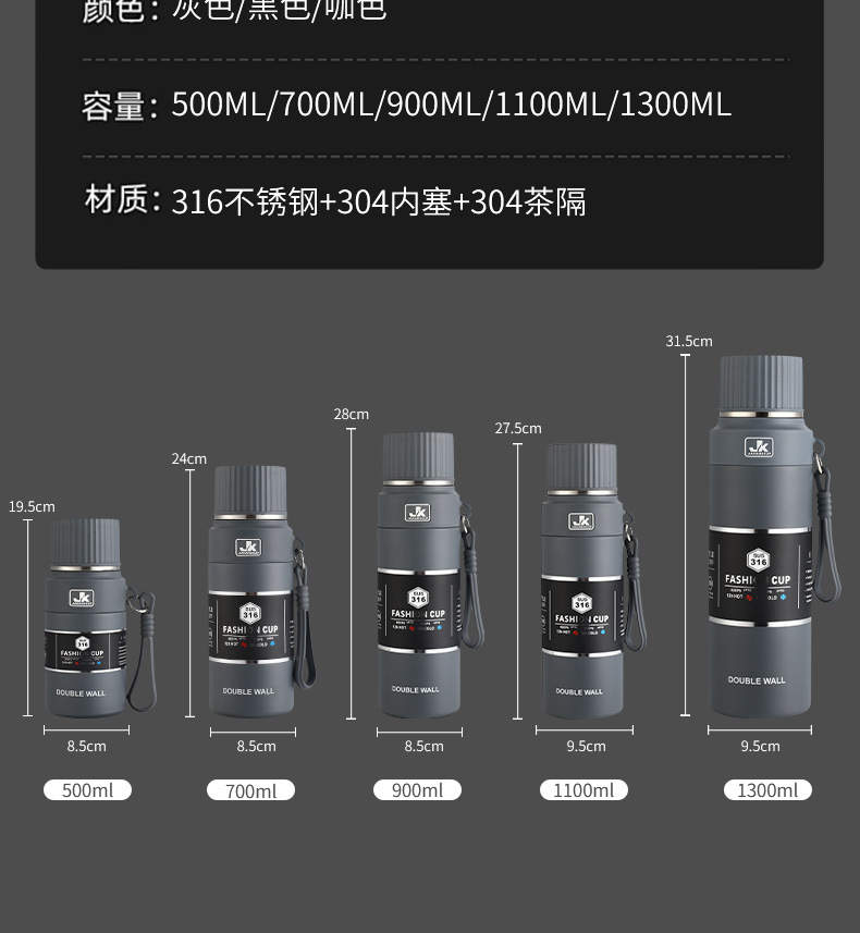 大容量保温杯316不锈钢茶水分离水壶男女士户外登山便携运动水杯