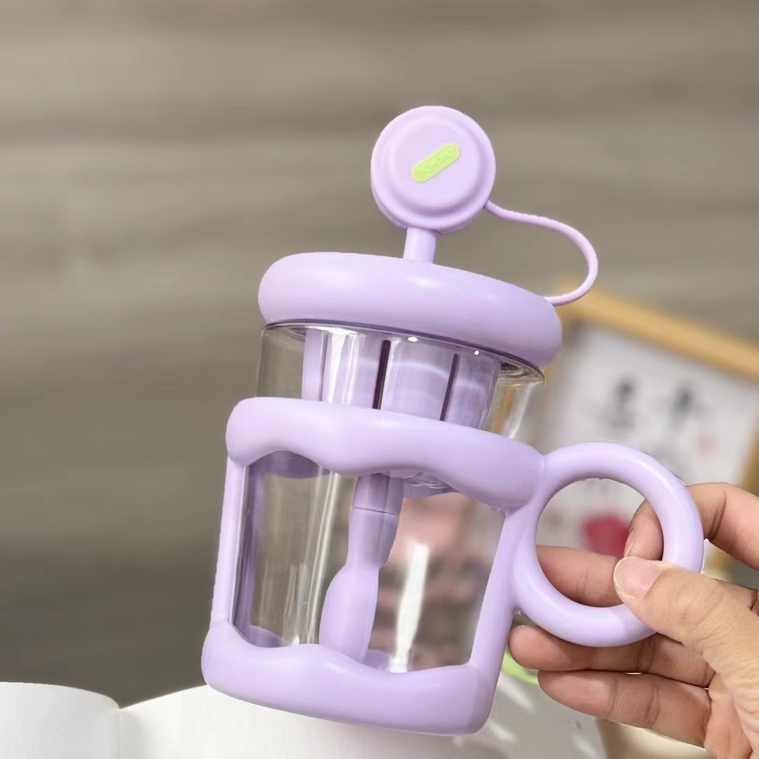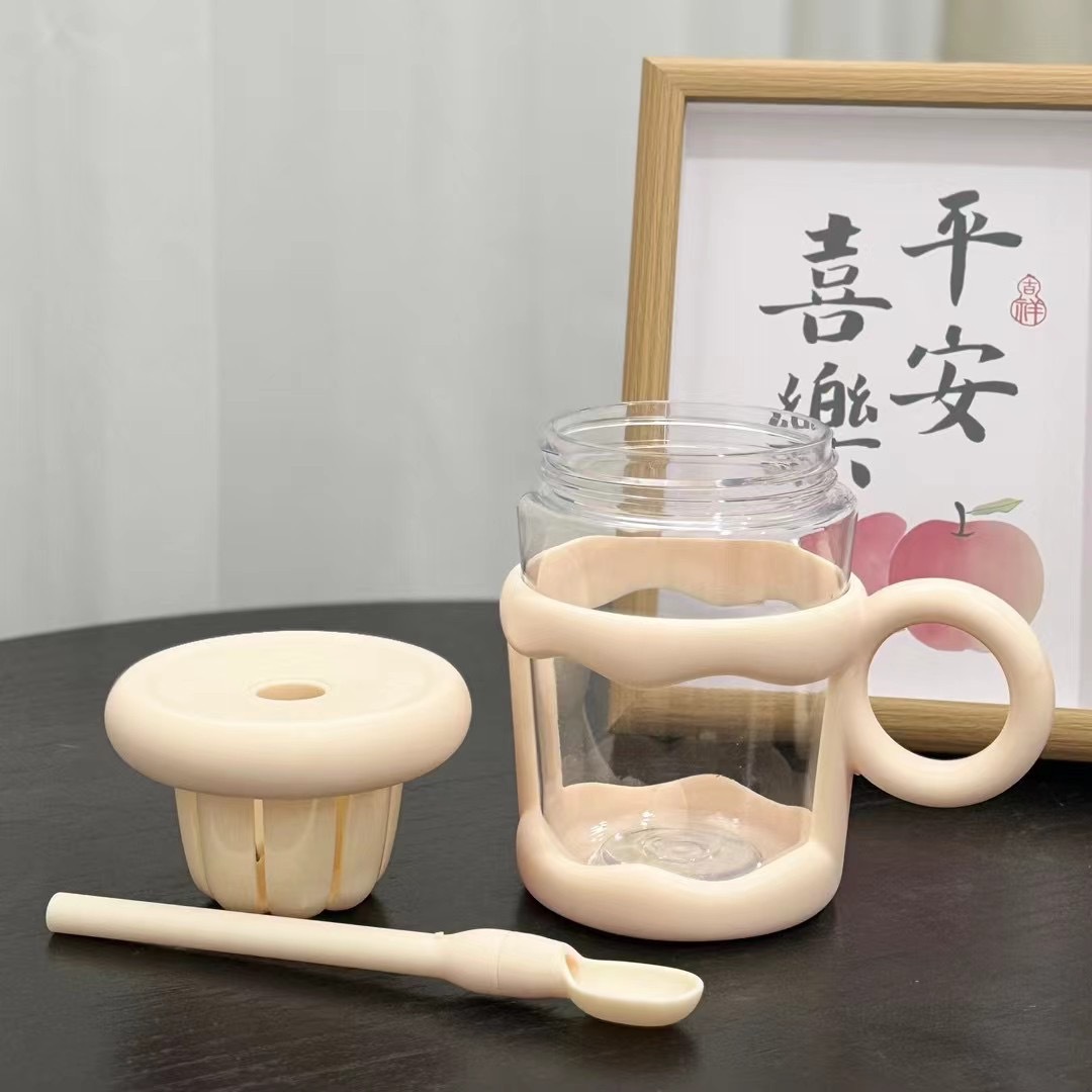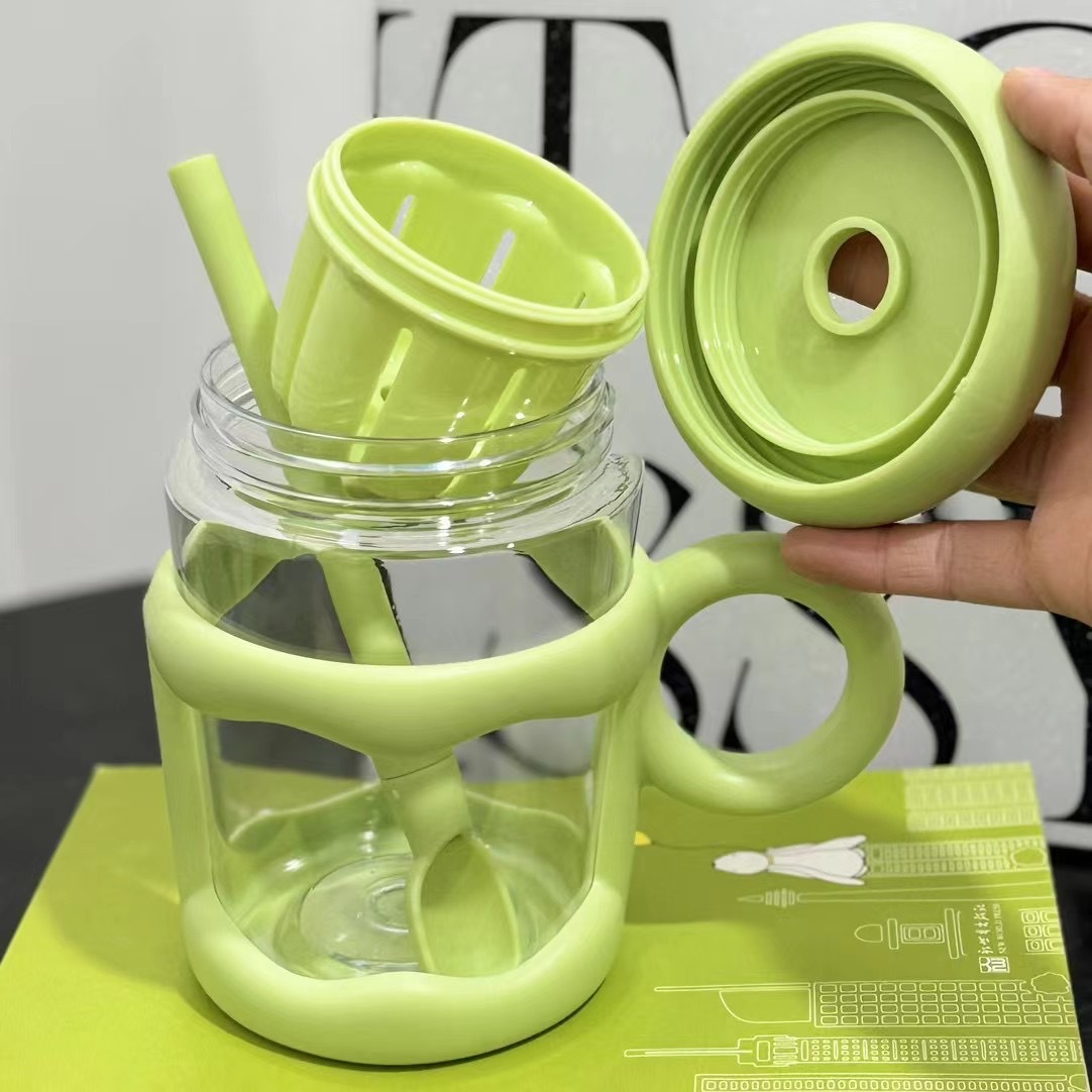 新款水杯搅拌塑料杯办公室茶水分离咖啡杯耐高温带吸管泡花茶杯子