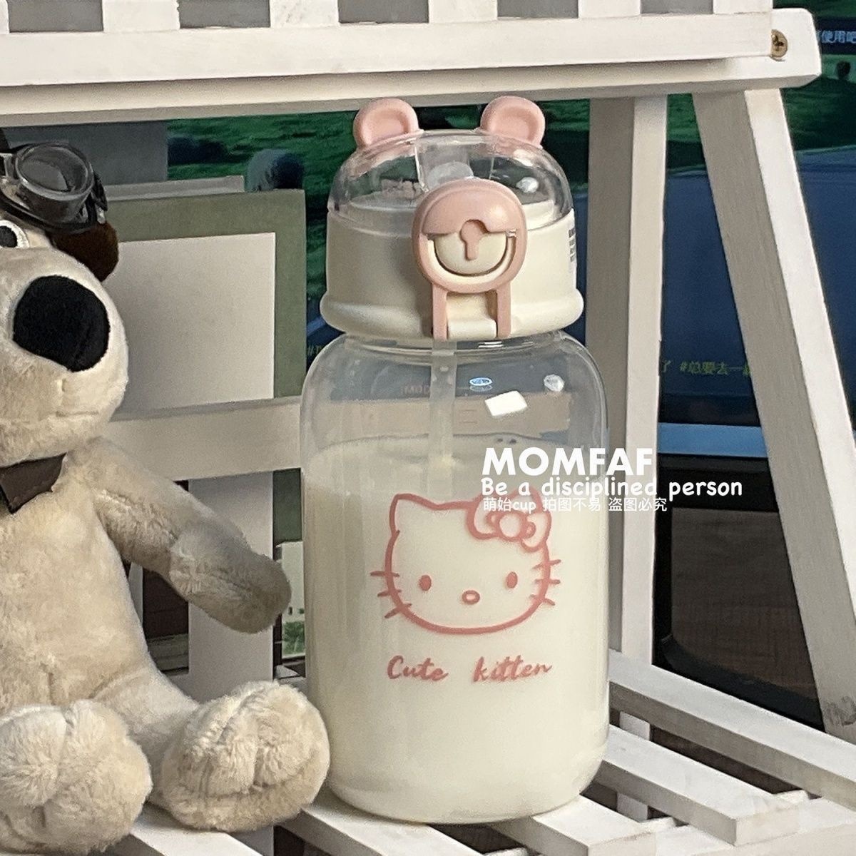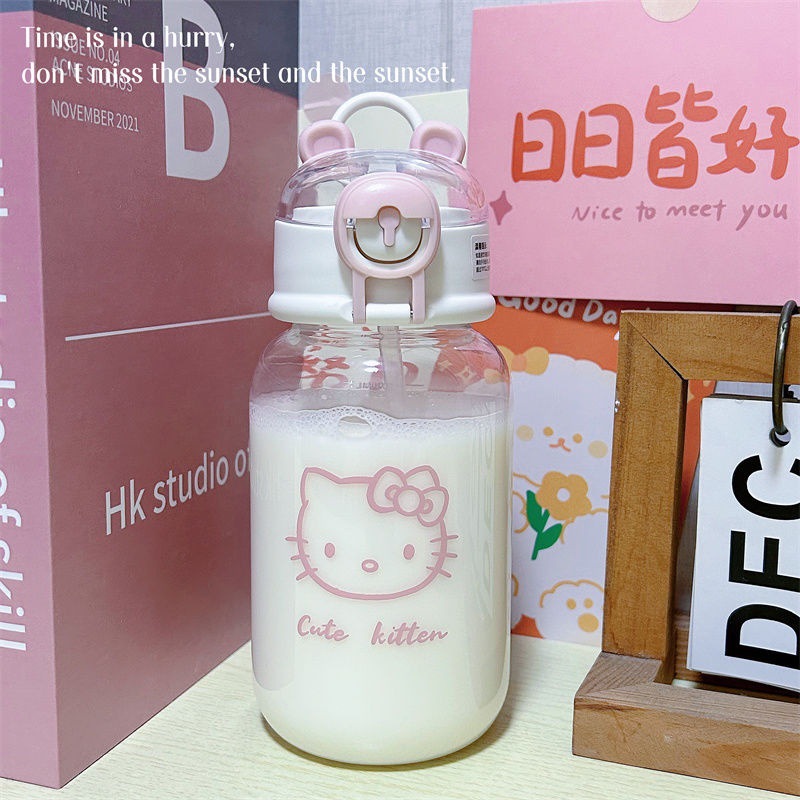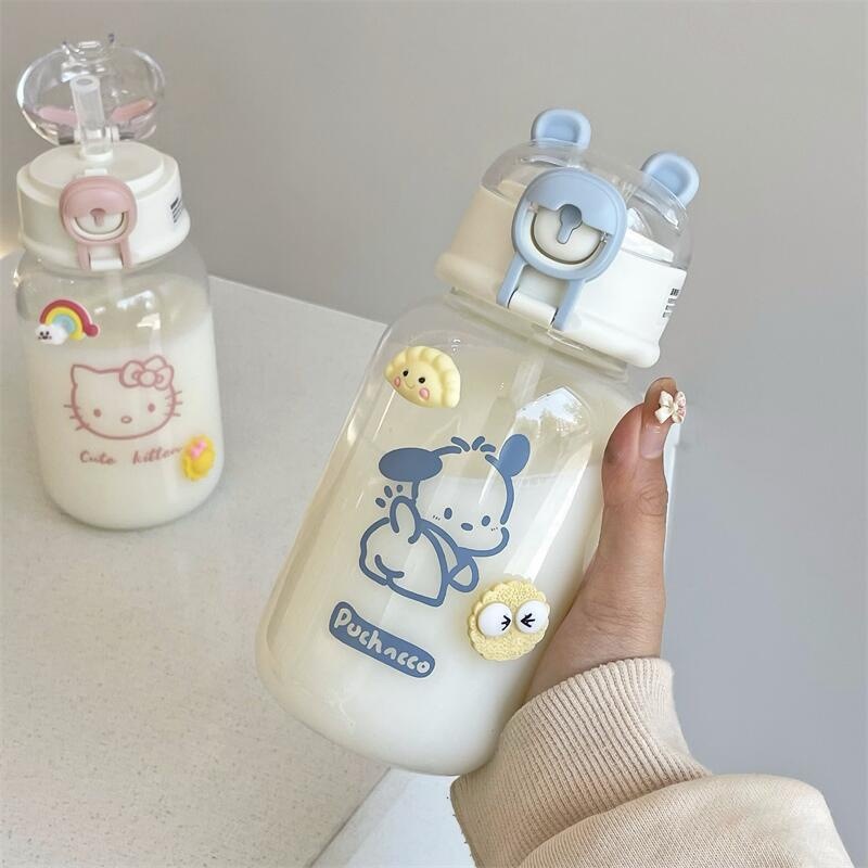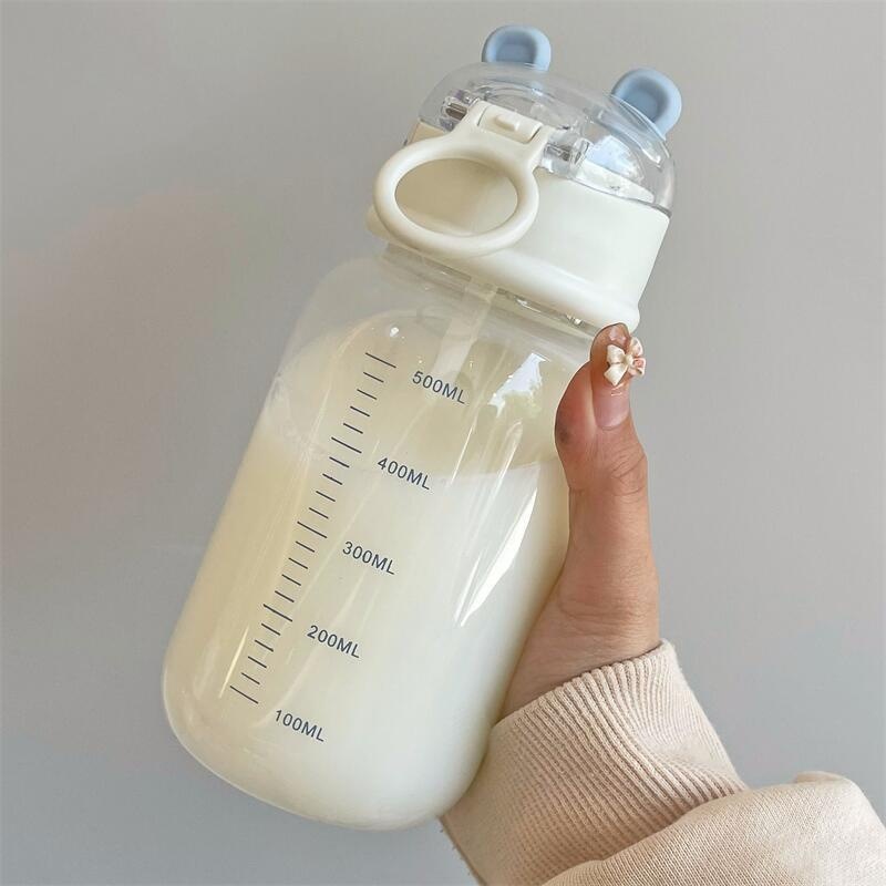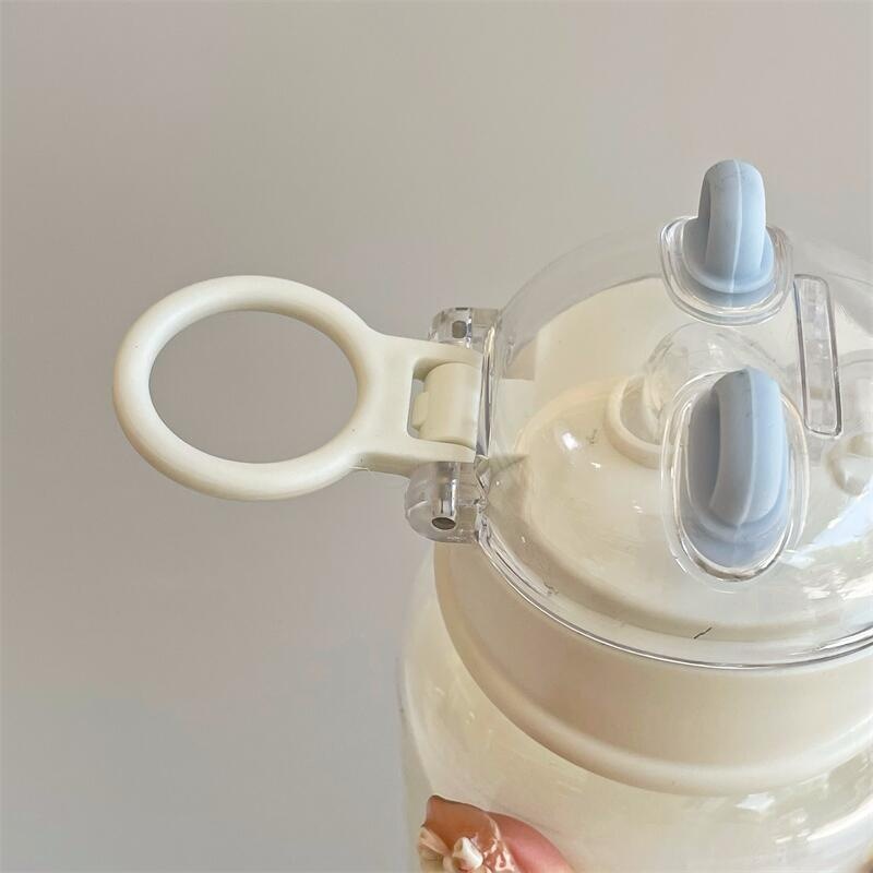 塑料吸管杯夏季学生可爱水杯ins风女生塑料杯小笨熊随手杯便携