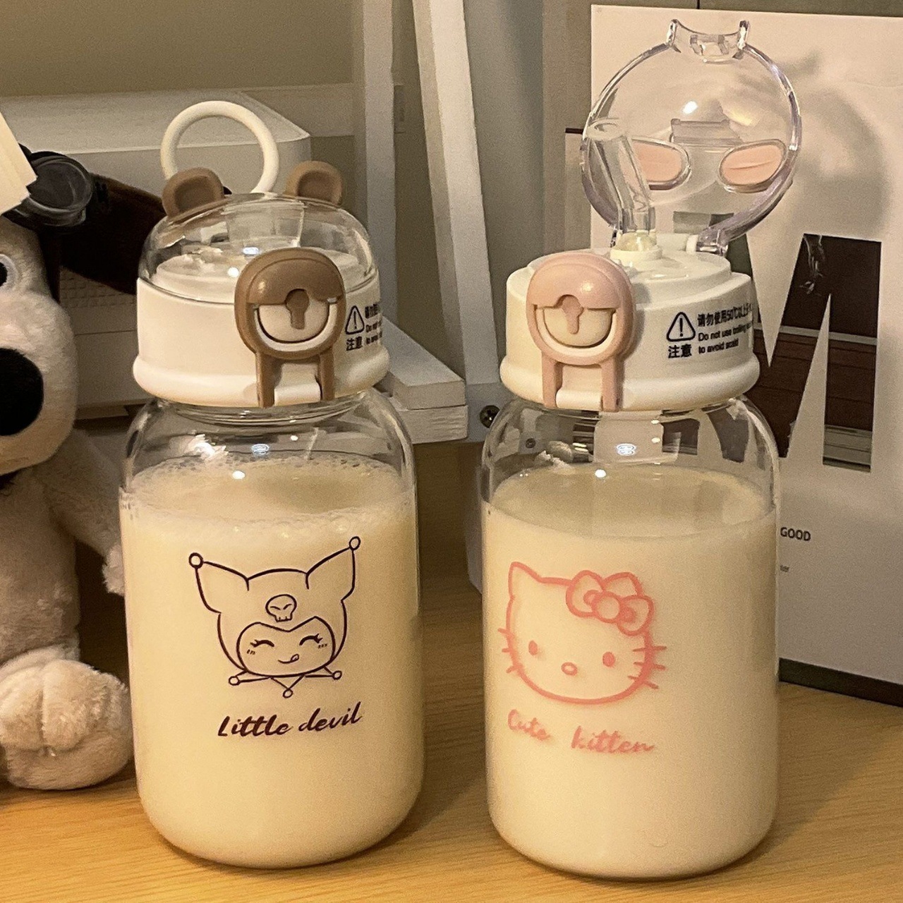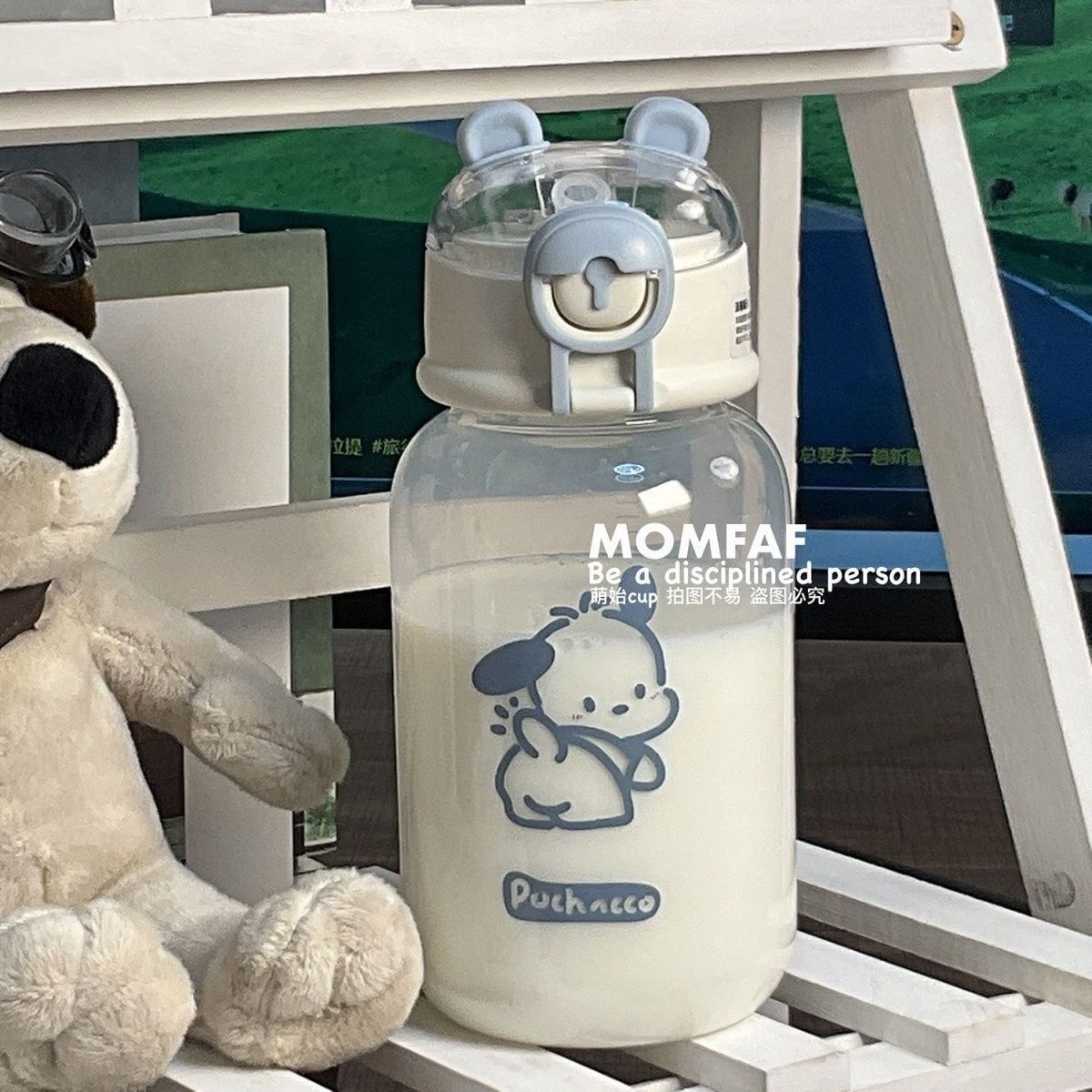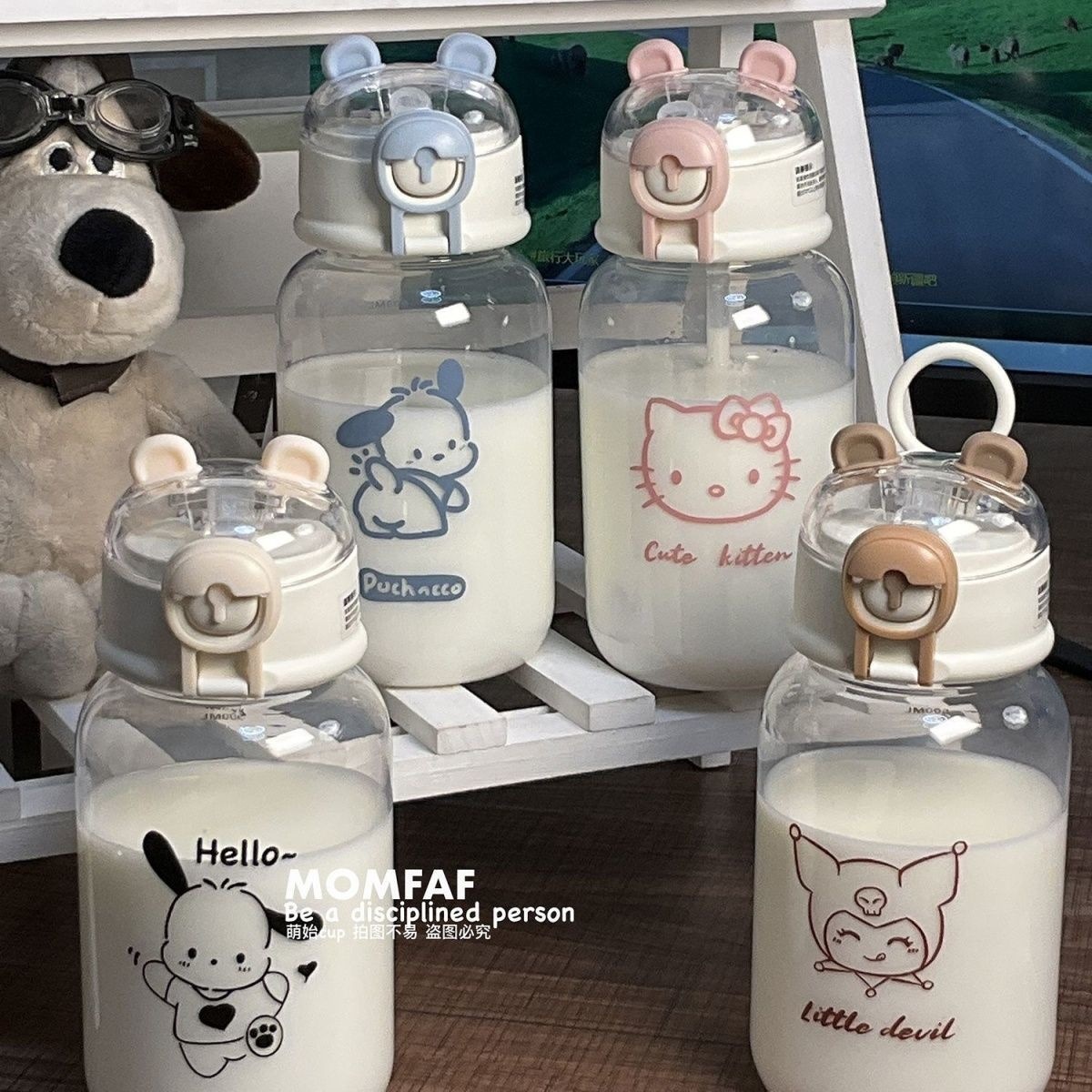 塑料吸管杯夏季学生可爱水杯ins风女生塑料杯小笨熊随手杯便携