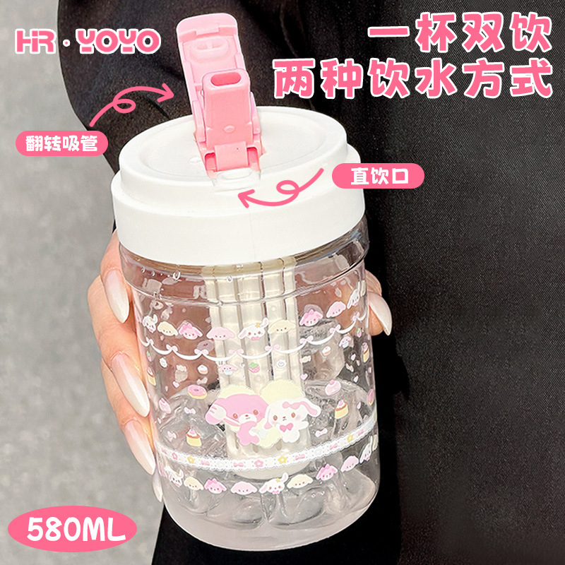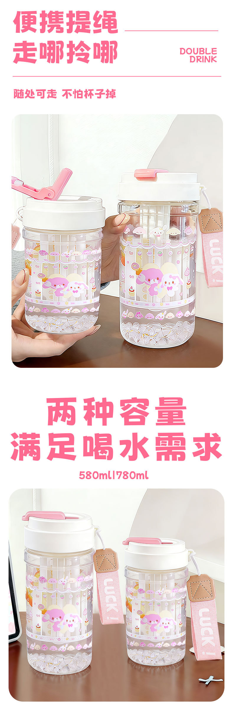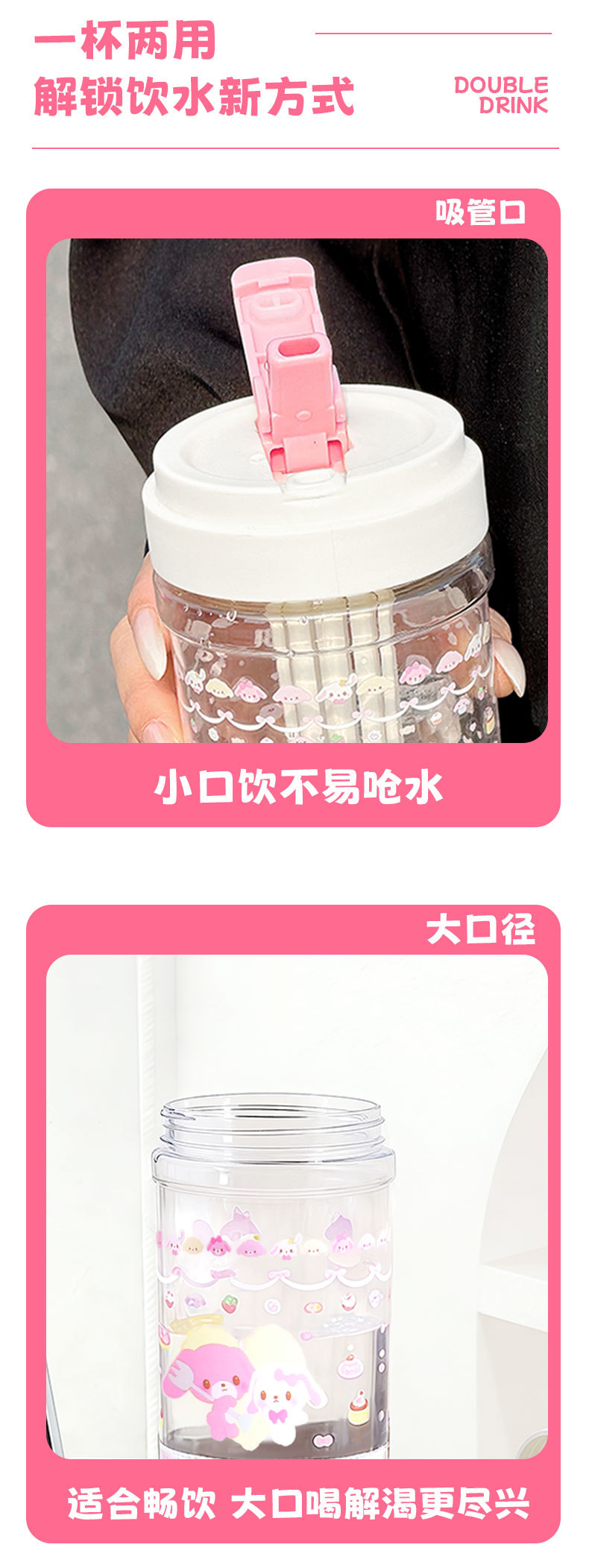 夏日大容量吸管水杯女生高颜值塑料杯子学生用便携可爱儿童防摔杯