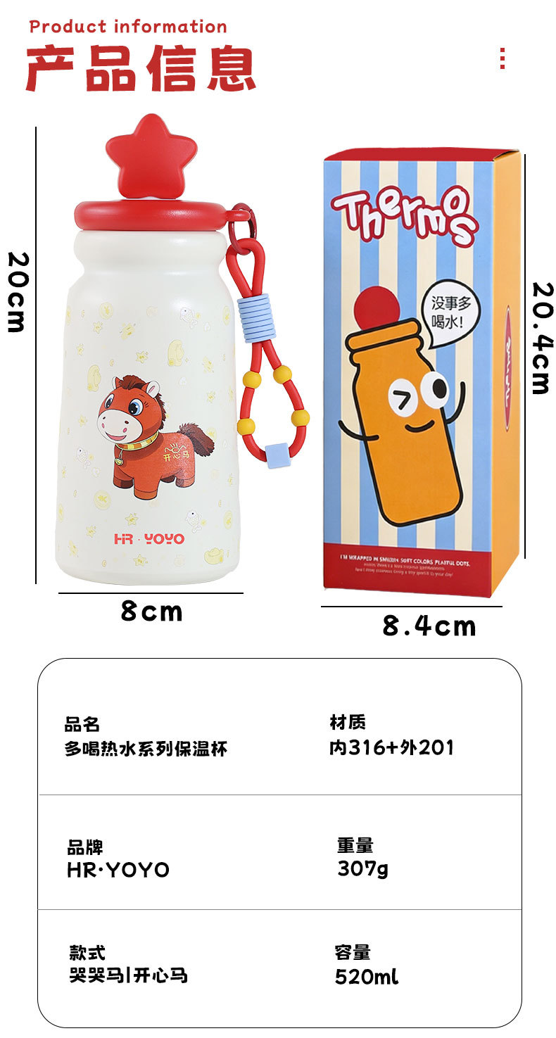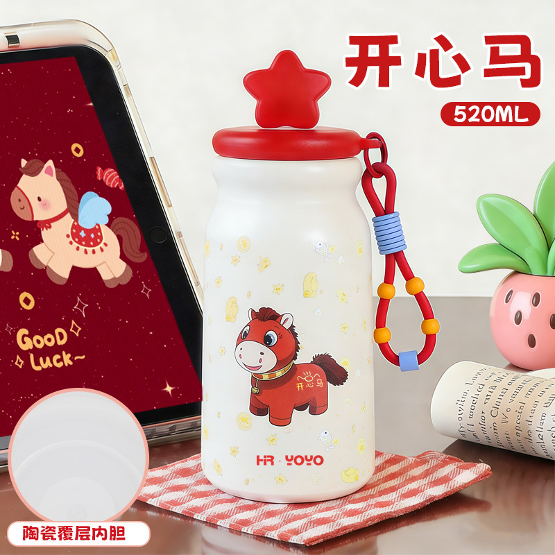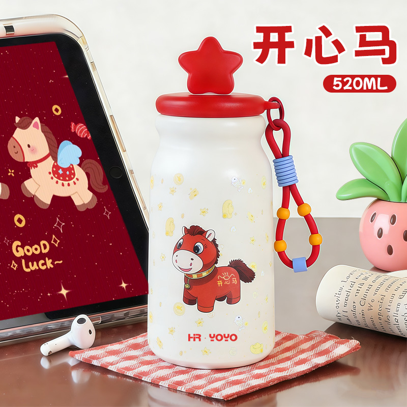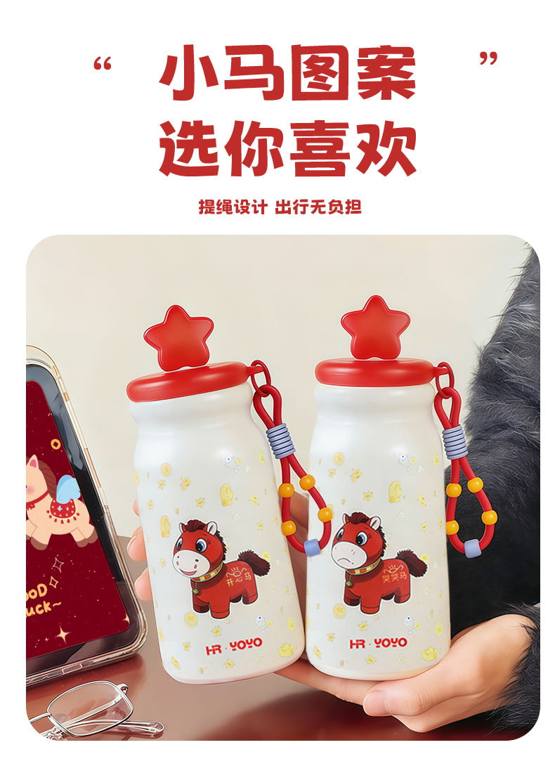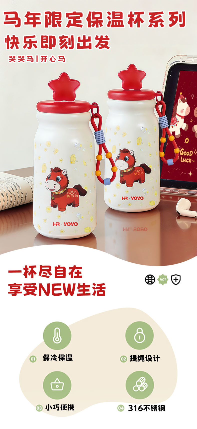 马年保温杯女高颜值316不锈钢大容量水杯子星星便携提绳新年礼物