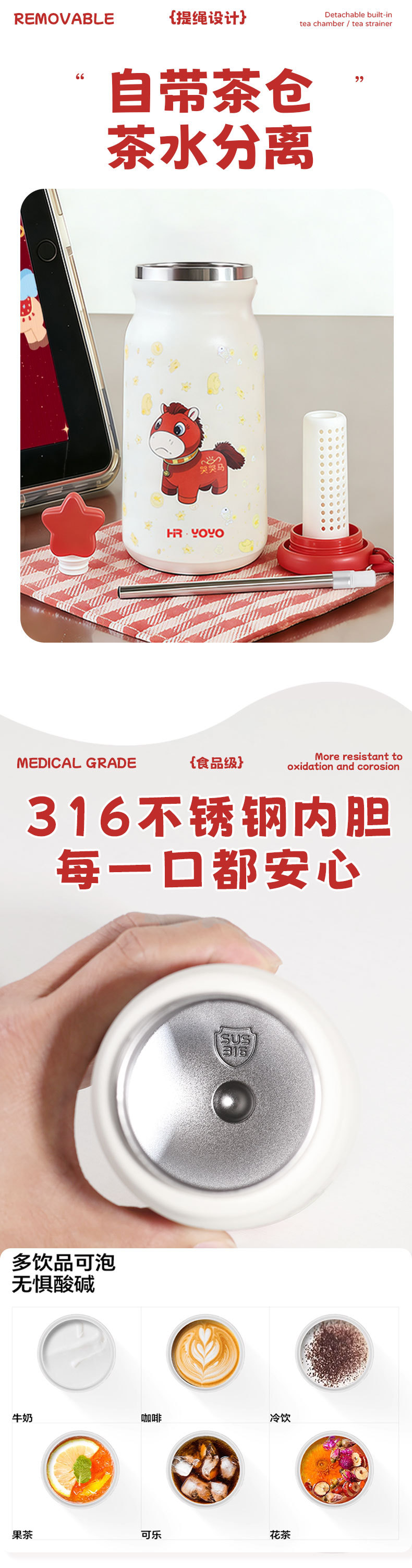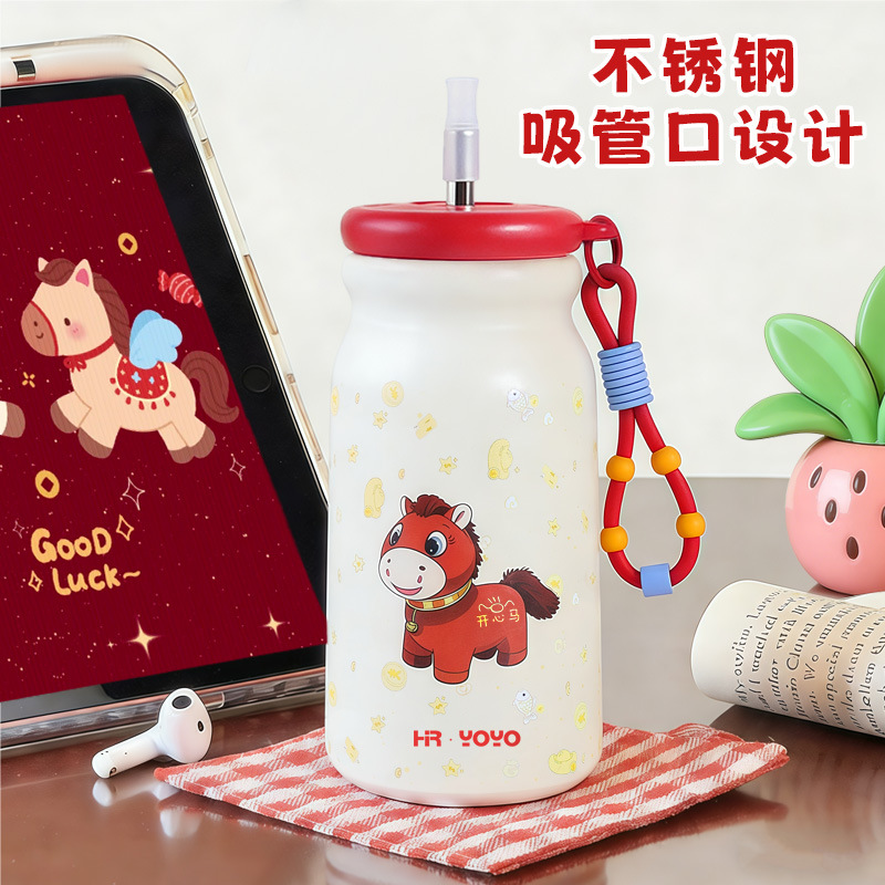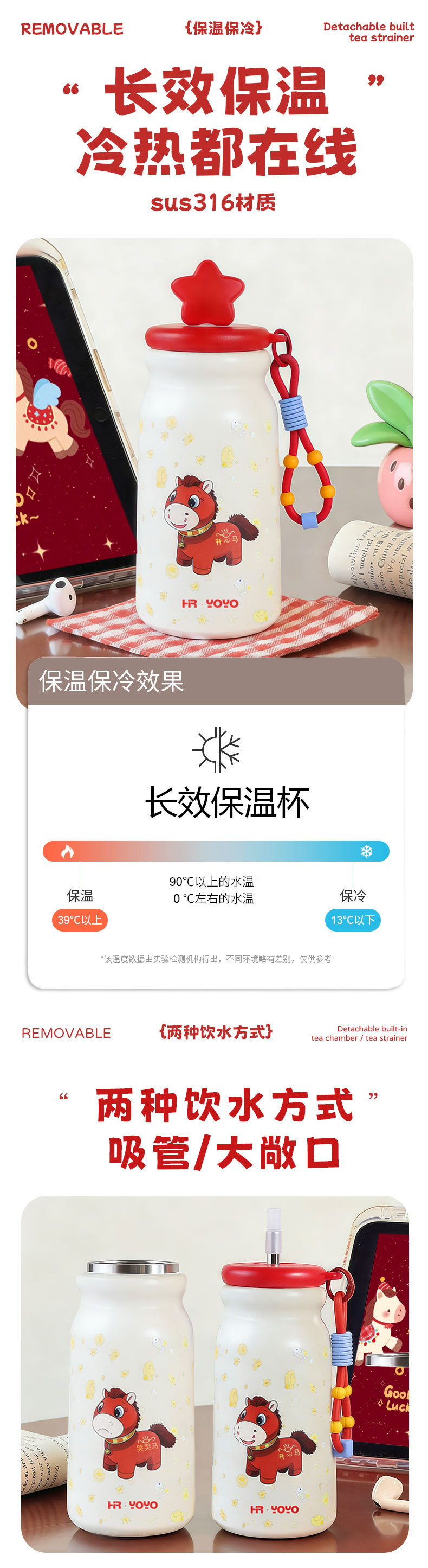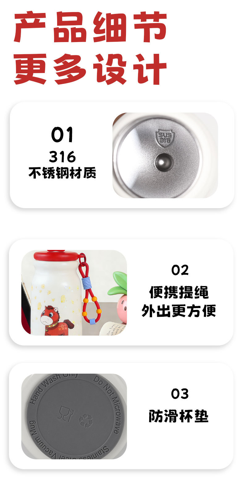 马年保温杯女高颜值316不锈钢大容量水杯子星星便携提绳新年礼物